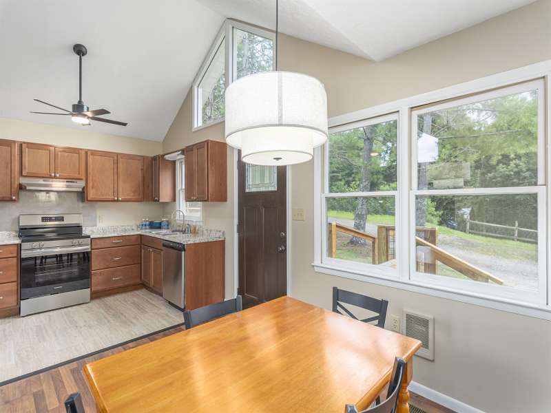 Improved driveway and parking area, and now year round long range views! Discover this charming 2BR/2BA single-family home in quiet Queen Town area in Canton. Built in 1991, this inviting residence features a cathedral ceiling and big windows in the great room and an open floor plan that enhances its spacious feel. Generously sized bedrooms offer comfortable and easy one level living, while the full unfinished basement provides ample potential for future expansion. Nestled in a peaceful setting, the home offers the possibility of year-round mountain and meadow views off the back deck with some clearing. Nicely updated with stainless steel appliances, tiled bathrooms, roof from 2013, HVAC installed in 2019, and septic pumped 2021, this home is move in ready. Affordable and full of potential, it's an excellent opportunity for first-time homebuyers or young families, or downsizers seeking space, serenity, and value. Come see it today and make it yours!
