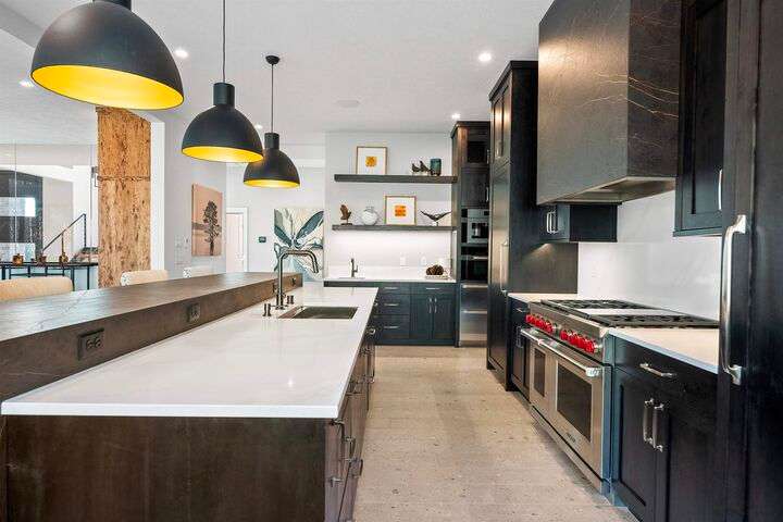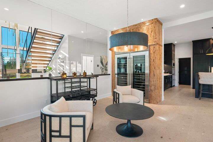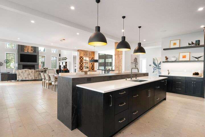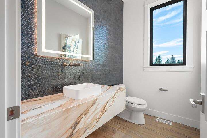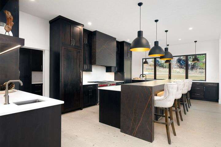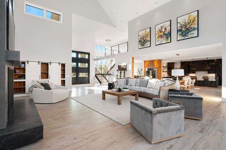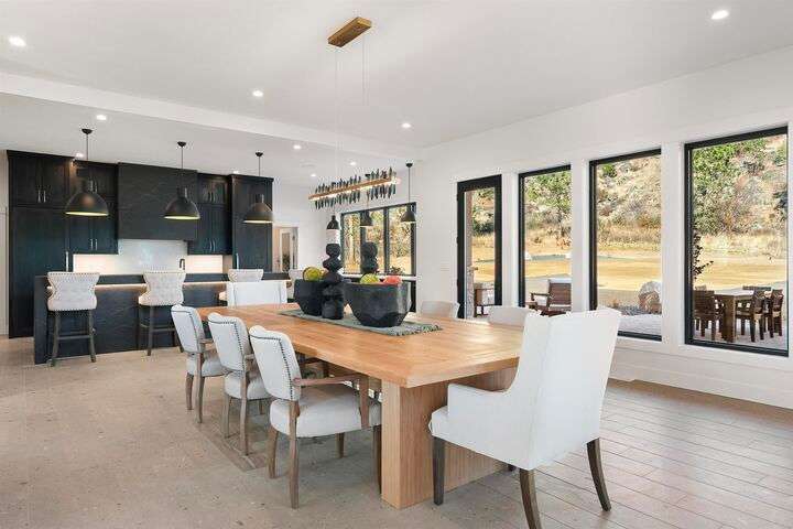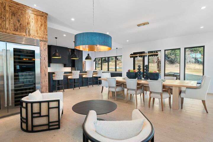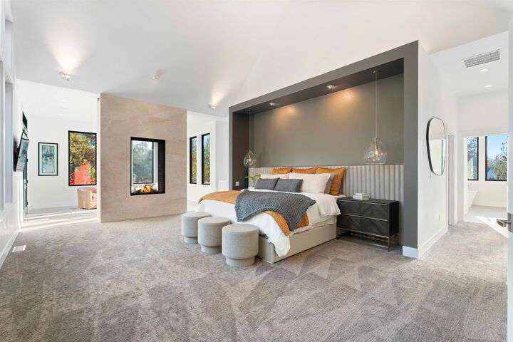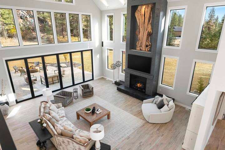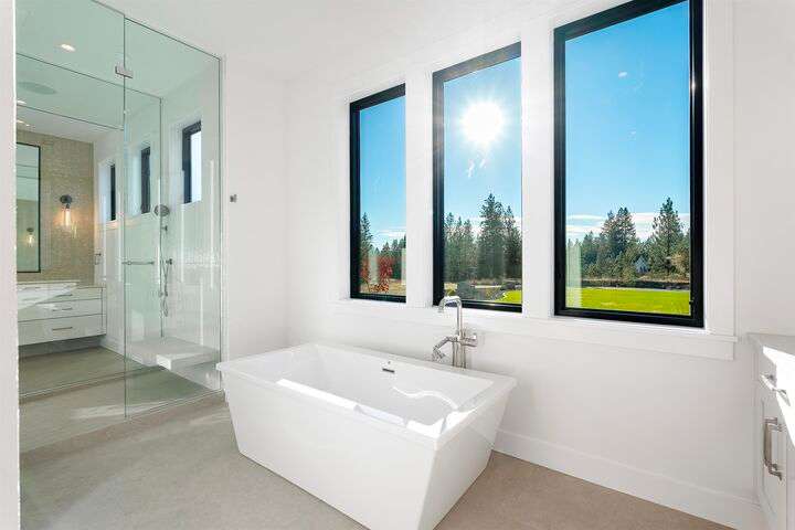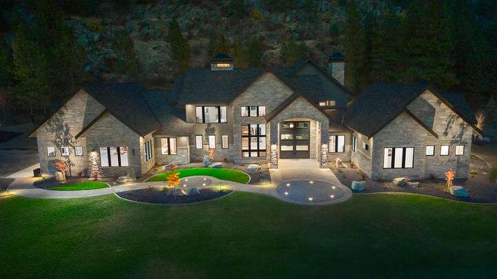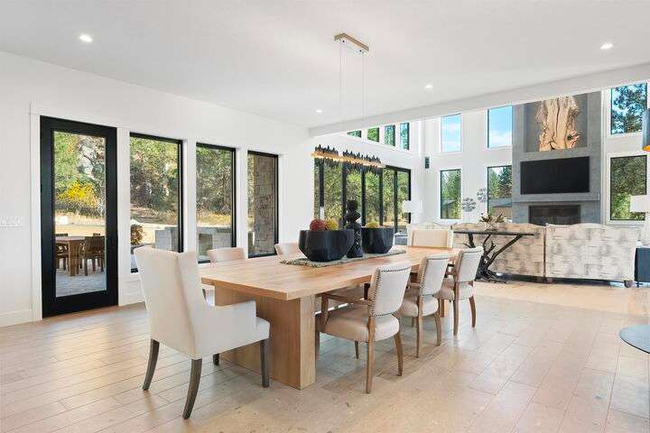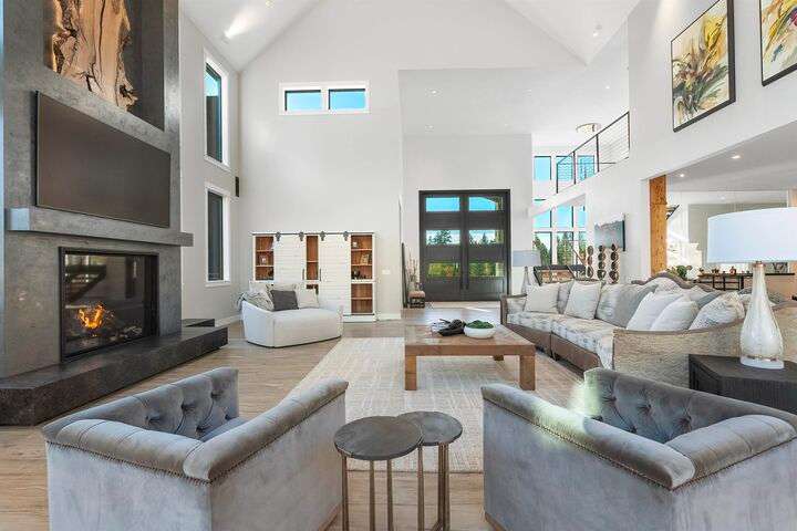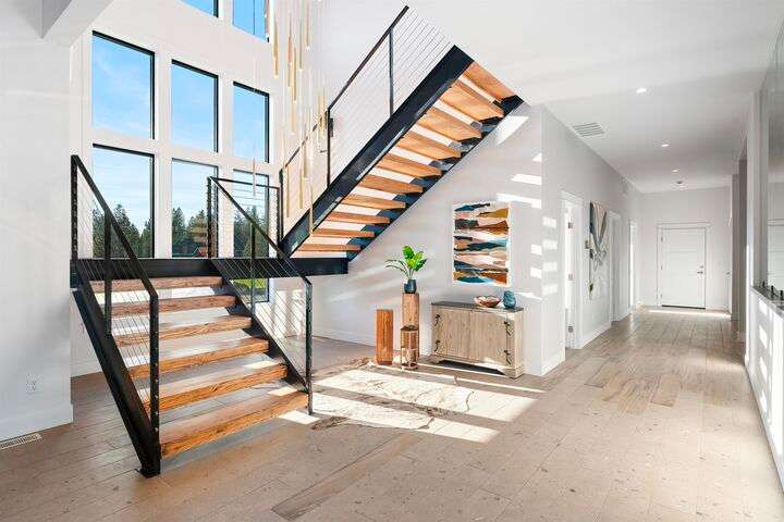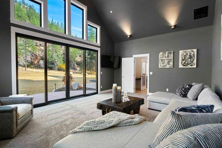No detail has been overlooked in this luxurious modern masterpiece designed to showcase the exceptional mountain backdrop. Located on 20 spectacular acres behind the gates in exclusive Riverbluff Estates, the location is private + serene, yet only minutes from shopping, restaurants, coveted St. George's School, Little Spokane River Natural Area + Kalispel Golf + Country Club. This executive custom home features soaring ceilings, expansive spaces, a jaw-dropping Pivot entry door, a culinary dream kitchen w/butler's pantry + an opulent primary suite guaranteed to make you feel as though you are waking up in a lavish private resort every day of your life. Features include top-of-the-line appliances, 14' kitchen island, cozy wine tasting lounge, bedrooms w/walk-in closets + ensuite baths, home office w/custom built-ins + a spacious family room. Outside, you'll love the extensive paver patio w/built-in BBQ, custom accent lighting + gas fire pit. Ask about seller financing!