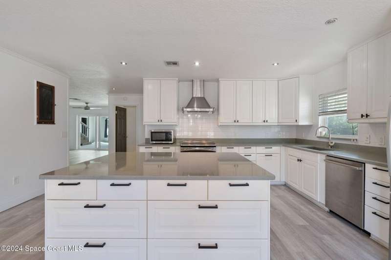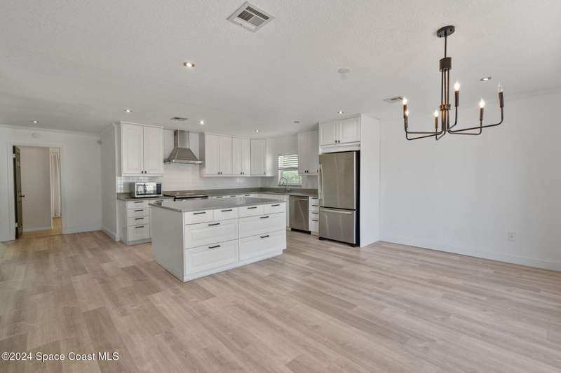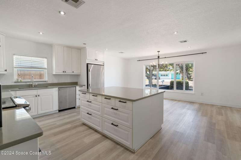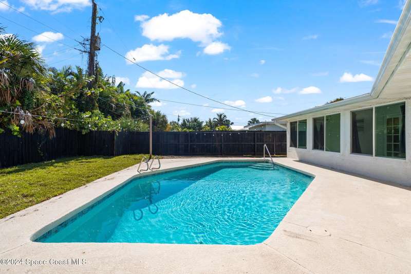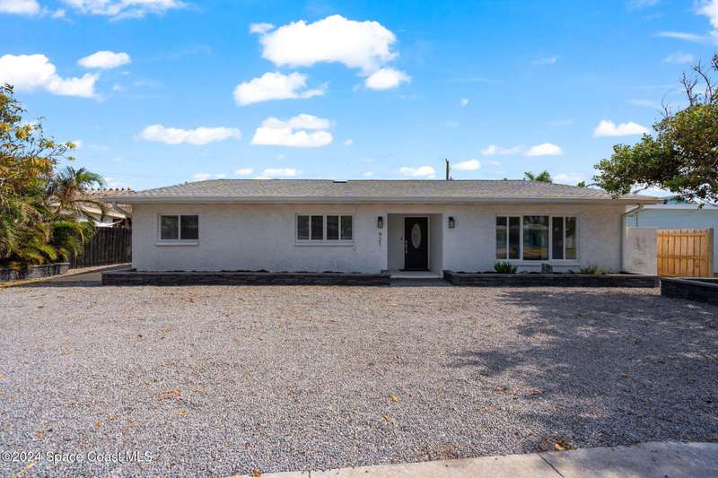 The perfect opportunity for beachside living less than 1 mile to Downtown Cocoa Beach and a short stroll to the ocean. This pool home features a 5 bedroom 2 bathroom main house with a 1 bedroom 1 bathroom, 700 sq ft guest apartment with full kitchen over the garage. The spaces are licensed Short Term Rentals and provides fantastic monthly income. Recent updates and standout finishes include a newer roof, HVAC, stone counters, new flooring throughout, stainless appliances, huge kitchen island, a shiplap accent wall, crown molding, a resurfaced pool, fencing, the list goes on. In addition to the driveway up to the garage there is ample graveled parking in front of the home. Minutes to area shops and restaurants, Cocoa Beach is a dream destination and perfect town for investment. Currently a top 10 rated surf town in the world, you'll never want to leave.