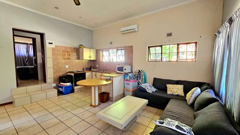 Situated in the suburb of Umtentweni, this lovely and spacious family home has lots to offer. Driving up one is greeted with the pool and expansive patio area. A great space for the summer nights and entertaining. The kitchen opens up to a huge dining area which flows through to the living or family room. There are 4 bedrooms and 2 bathrooms, the main bedroom has a modern en-suite bathroom and great finishes. A well-equipped office space separates work from play. Comfortable space with the feeling of home. The property has back up water, extra storage space and a 1 bedroom flat, with its own entrance. Location is perfect. Only 5 km schools, shops, hospitals and the beach. Call me for an exclusive viewing.
