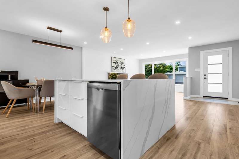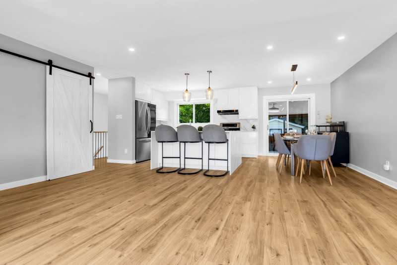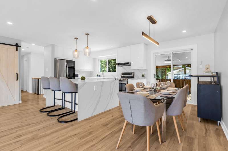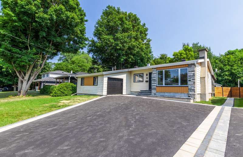 Freshly renovated and open-concept, this cozy home has six bedrooms (3 up, 3 down), two brand-new bathrooms, a quartz-finished kitchen, modern lighting, and a new furnace and heat pump. The backyard is a real highlight--with a firepit, pavers, and a jacuzzi--and everything's included: appliances, fixtures, basement fireplace, and the jacuzzi. Bonus perks include a convenient boat drop-off area nearby and there was never flooding in the basement when there's heavy rainfall. Located in a peaceful, commuter-friendly community just west of Montreal--move-in ready and waiting for you!