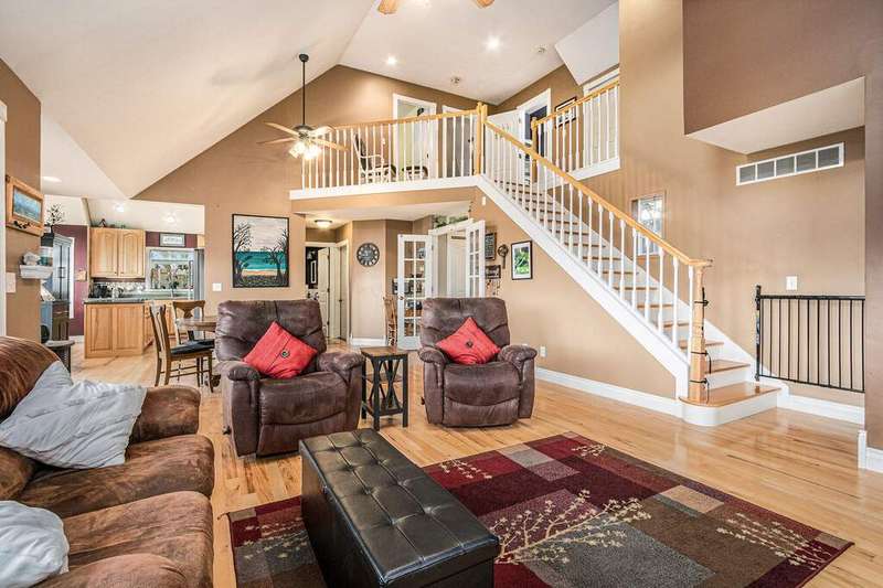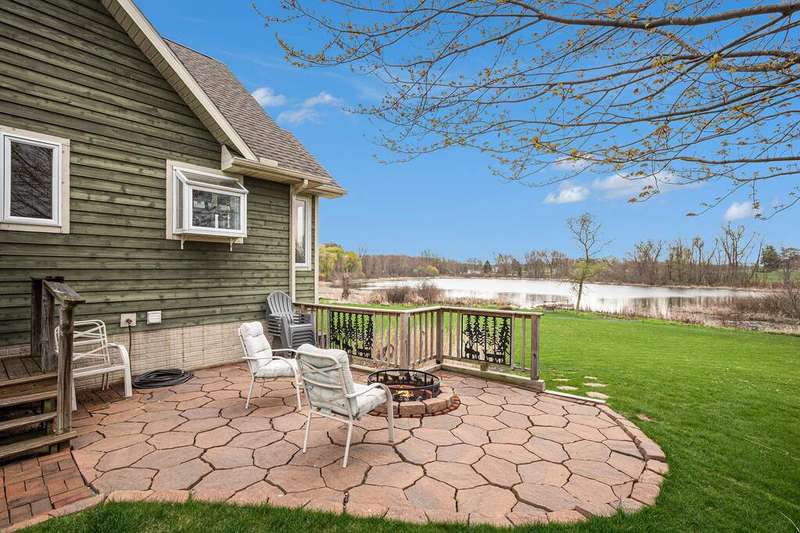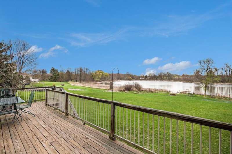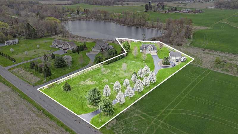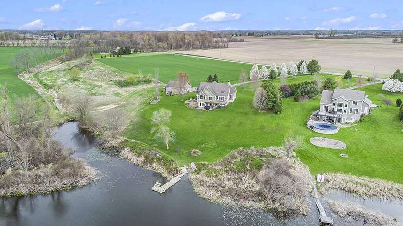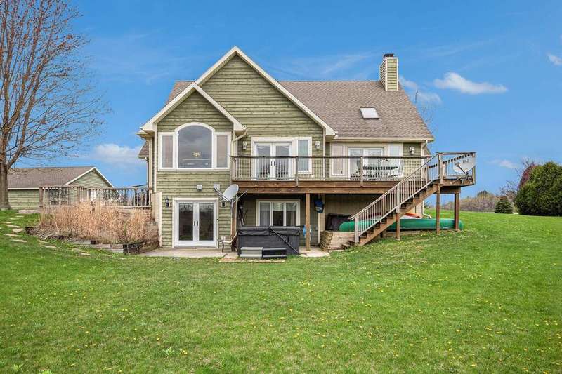 Looking for a serene country lifestyle with breathtaking sunrise & sunset views over rolling hills? Look no further. This 5 bed, 3 1/2 bath custom built home is situated on 2.5 acres & comes with 150' of frontage on Hagley Lake. With over 2,500 sq ft of finished living space, you will have plenty of room to host family and friends anytime of year. Upon entry you will be greeted by a marble entryway that transitions into hardwood floors throughout the main level. Vaulted ceilings with skylights and oversized windows make it easy for natural light to overtake the area. Conveniently enjoy views of the plush grounds and Hagley Lake while you relax in the living room, prepare food in the kitchen or recline for a meal in the dining room. A stylish stone fireplace makes for an aesthetic focal point & heats the main level nicely in cold weather months. The home has a practical layout with 3 bedrooms & a full bathroom on the upper level, primary suite, laundry & a 1/2 bath on the main level, guest bedroom, a full bathroom & oversized den area with a walk-out on the lower level. The grounds offer a stone patio, beautiful flowering trees, additional concrete patio & 30 x 30 pole barn for ample storage. Come see what this property and lifestyle have to offer you!