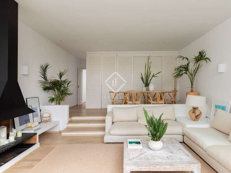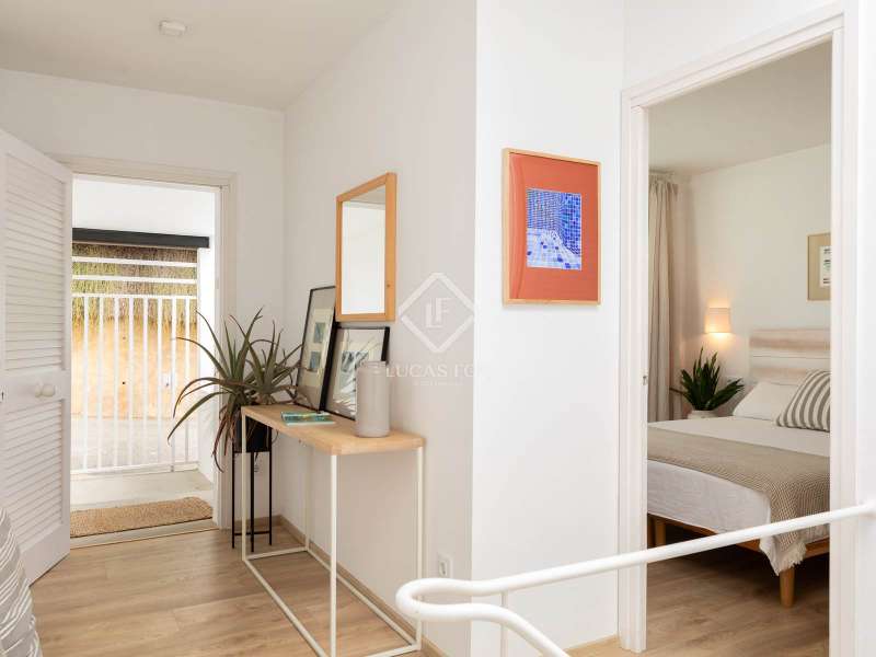 Semi-detached house in excellent condition and located just 100 metres from the beautiful beach of Platja Fonda, in Aiguablava. The house is part of an exclusive community of only five neighbours that offers a garden, communal pool and dining area, as well as great tranquility in a unique location in the area. The house is arranged over two levels. On the main floor and through the entrance hall we access a wonderful living-dining room and living room with fireplace and access to a fantastic terrace that offers a lot of privacy and beautiful views of the sea. The property is very sunny thanks to its fantastic southern aspect and the terrace is ideal for having lunch and dinner outdoors with friends in summer. On this same floor we also have a fully equipped kitchen, an ensuite bedroom with a bathtub and a guest toilet. On the lower floor, which we access through an internal staircase, we find an ensuite bedroom with a bathtub and a double bedroom. Both bedrooms share a small interior terrace conceived to allow in more natural light. This floor also has access to the community garage, which includes two parking spaces and a large storage room. The house is equipped with an awning, electric radiators and parquet floors that give it greater warmth. An excellent opportunity that rarely appears on the market, as well as a good investment possibility with a great return as a summer rental. Contact us to receive more information about this unique property in the area.