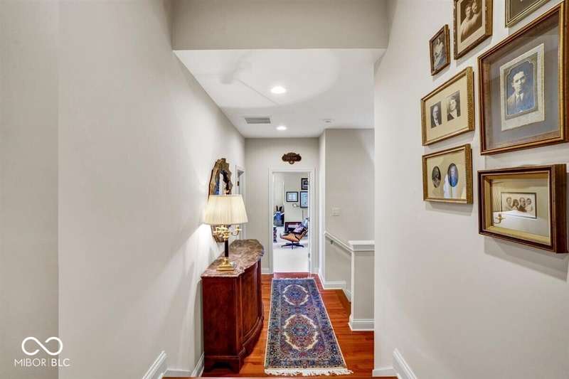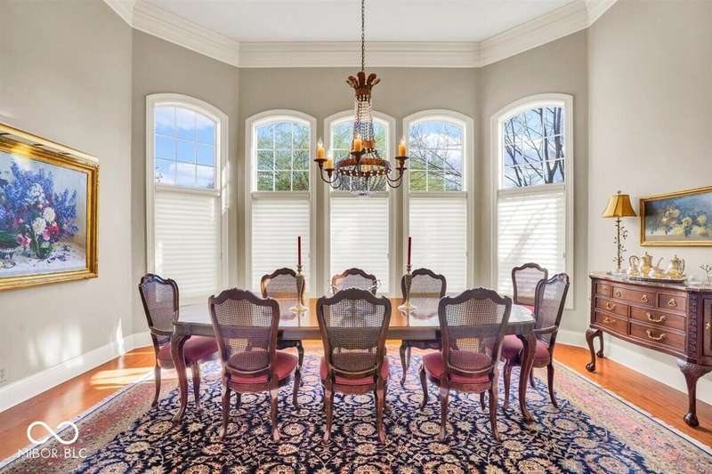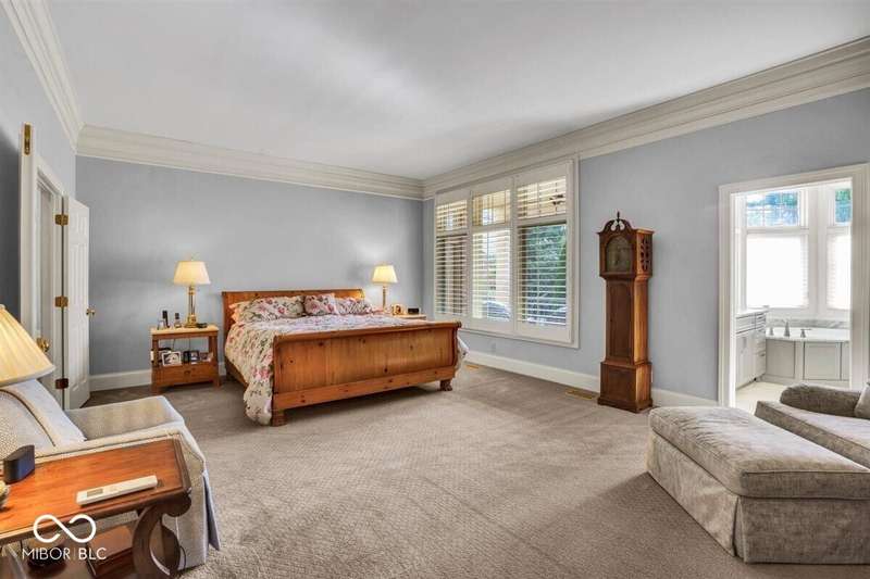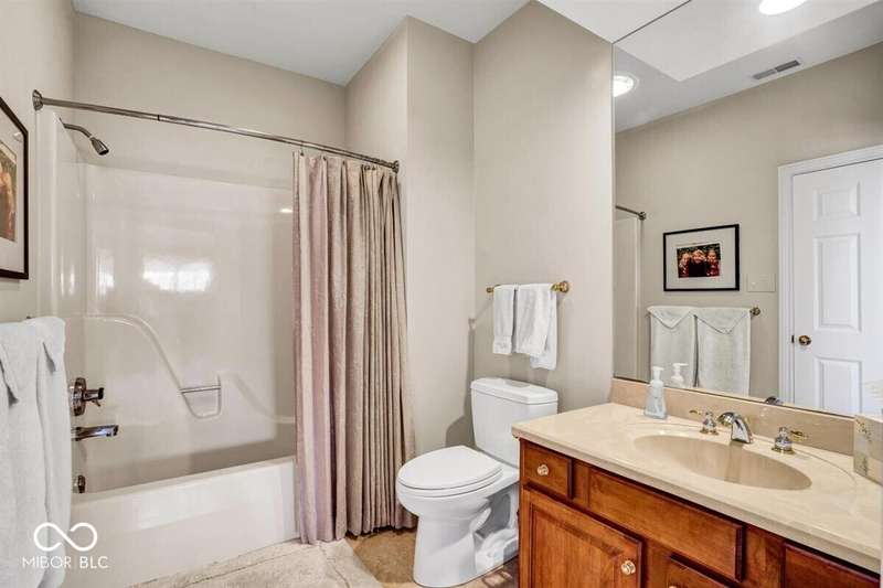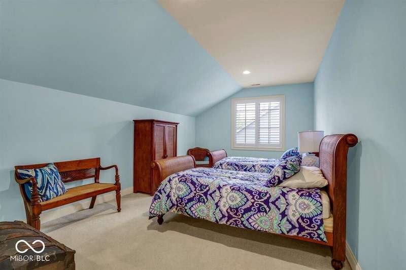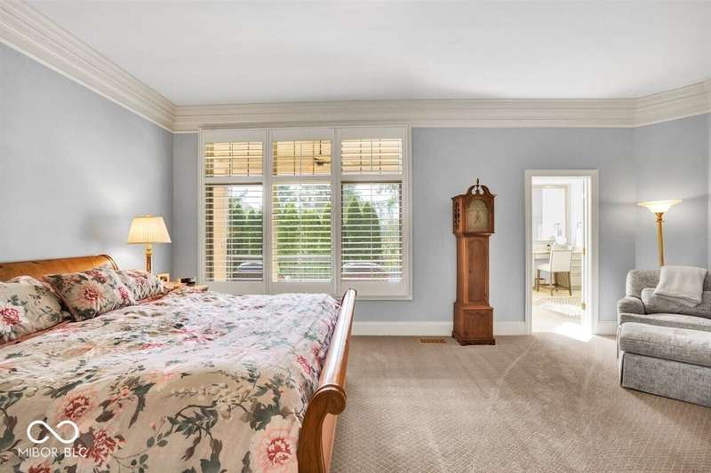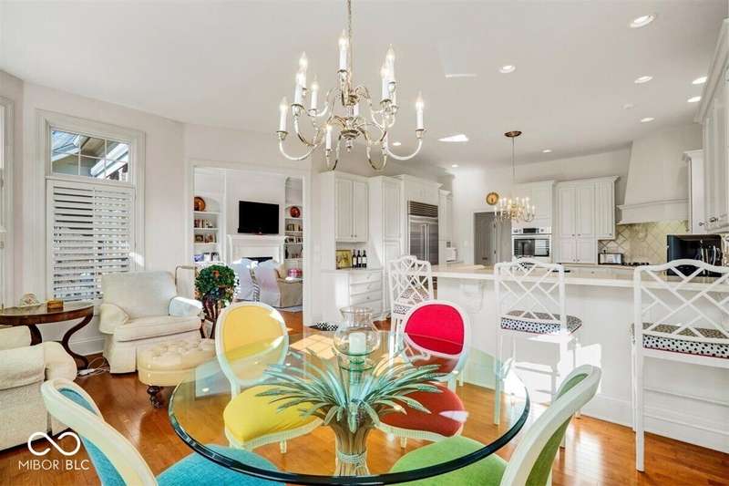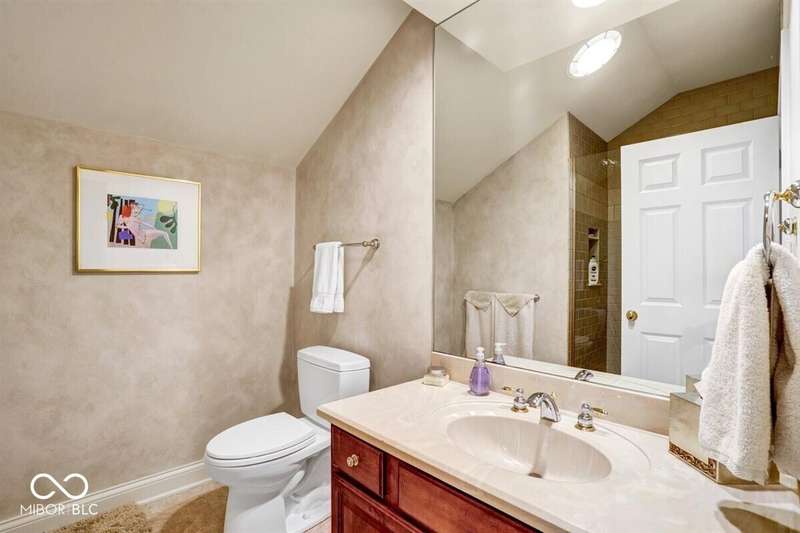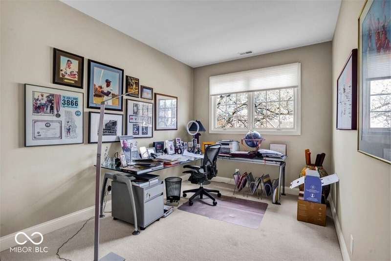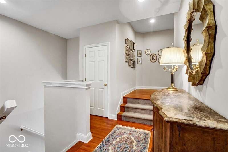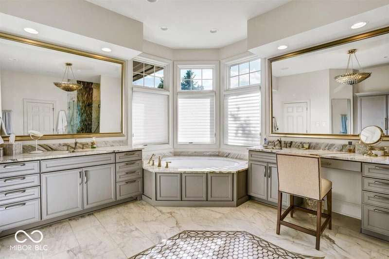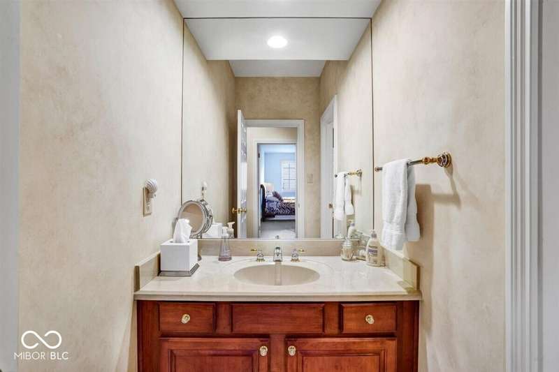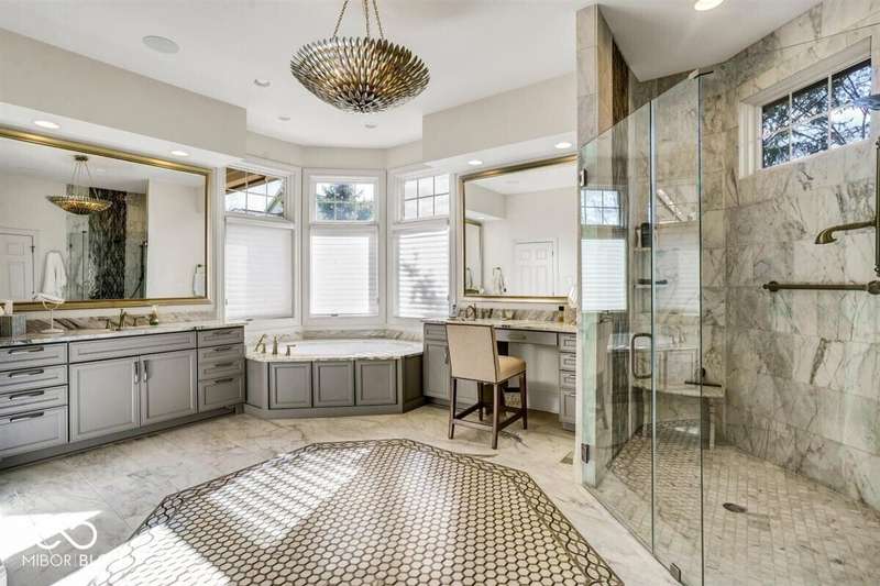 Updated and immaculate home in popular Reserve at Spring Mill! Main floor primary suite with completely updated bathroom including heated bathroom floors, zero threshold shower, separate tub and HUGE closet with many built ins. Primary bedroom has split cooling system to keep bedroom cool at night for sleeping. Main floor features spacious entry, living room with fireplace, large den, great room with fireplace and completely updated mantel and bookcases , kitchen with cream colored cabinetry, quartz countertops, Subzero refrigerator, Bosch double ovens, gas range, center island and breakfast bar plus breakfast room and large, private dining room! Upstairs features three more bedrooms ... one being used as a secondary office. The lower level has one finished room for exercise as well as TONS of extra storage space. Large covered porch as well as open patio in back yard with beautiful landscaping. Low maintenance living with all lawn care and snow removal included.