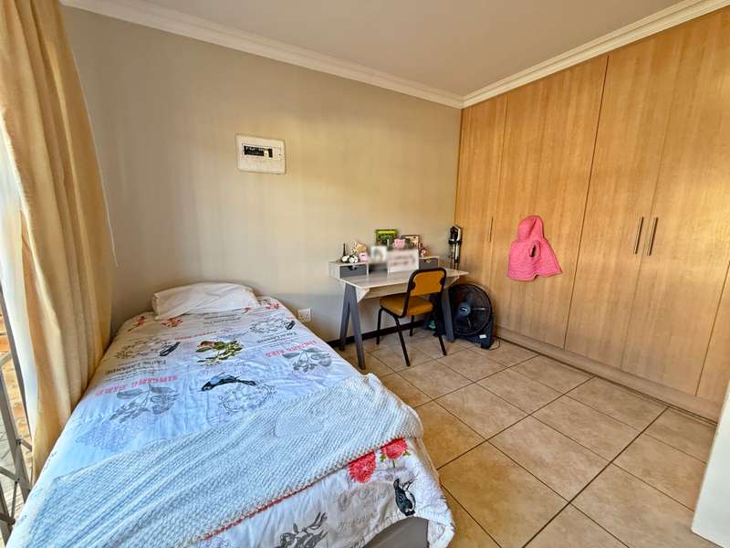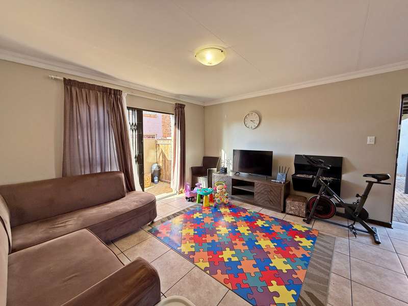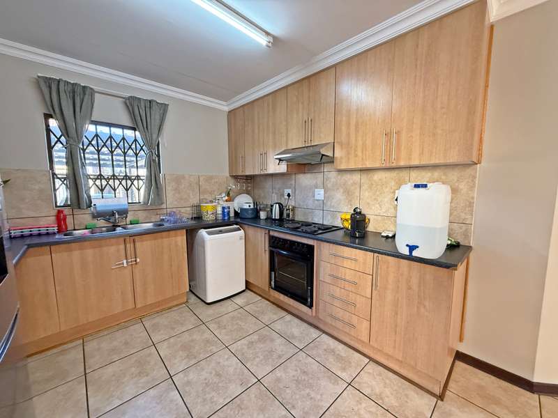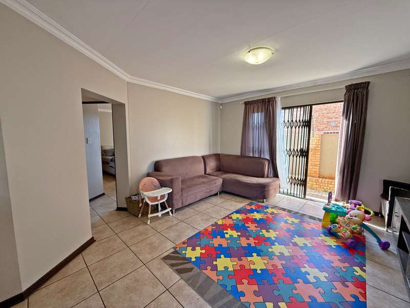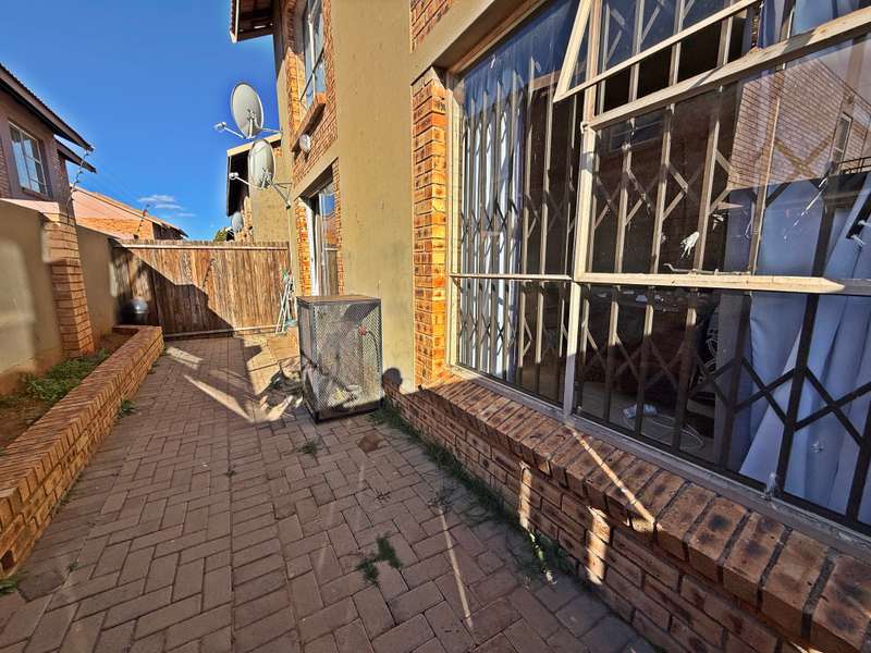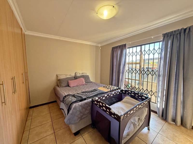 ** Exclusively Listed** This bottom duplex is an ideal choice for first-time homebuyers or investors. Situated in a peaceful complex in Pellissier, this unit guarantees secure living with trelly doors protecting each window. The interior boasts an open-plan living area complete with a built-in gas fireplace and sliding doors that lead to an outdoor patio. The kitchen features sleek dark melamine countertops, an undercounter oven and hob, an extractor fan, as well as connections for a dishwasher or washing machine. There are two generously sized bedrooms with built-in cupboards, and a full bathroom completes the unit. The complex is secured with an electric gate entrance and electric fencing, ensuring your peace of mind. Water and electricity are prepaid for your convenience. Don't hesitate to contact me for a viewing appointment.