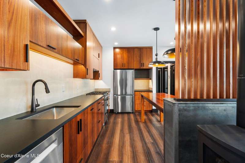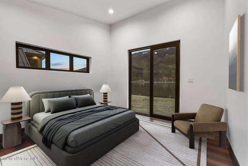 Contemporary NEW construction waterfront home located in beautiful Garfield Bay on North Idaho's famous Lake Pend Oreille! Incredible .45 acre lot with 240' of level low bank, private shoreline with mesmerizing panoramic mountain views and a private swimming cove! Enjoy the simplicity of owning a brand new, high quality, ultra efficient, low maintenance luxury home. This home was designed to create comfort within 1900 sqft of conditioned living space, 400 sqft of garage space and 360 sqft of covered outdoor space. Designed with entertaining and family gatherings in mind, the home offers: 3 ensuite bedrooms, 3.5 bathrooms, a family/game room, living room with a gas fireplace, artisan kitchen with professional gas range and custom built Sapele hardwood cabinets, covered outdoor spaces and a flex space off the primary suite that can be used as an office, bunk room or storage room.