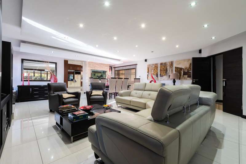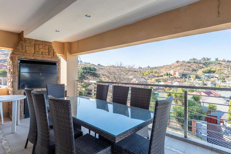 Welcome to your dream home nestled in the picturesque Oakdene mountains, offering unparalleled views that stretch as far as the eye can see. This modern triple storey masterpiece is the epitome of luxury, boasting high-end finishes throughout. Featuring five spacious bedrooms and four exquisite bathrooms, including three en-suite, this home effortlessly combines style and functionality. The open plan living areas exude an air of grandeur, with a family lounge complete with a built-in wood burning fireplace, a formal dining room, and an entertainment area equipped with a separate lounge and a built-in bar area. Step outside onto the covered patio, complete with a built-in braai, where you can entertain guests or simply enjoy the breathtaking panorama. Step into the sizeable garden area, a sanctuary of tranquility that leads up to your own private, elevated thatch lapa. Picture yourself sipping on sunset drinks and hosting cocktail parties in this idyllic setting. The heart of this home lies in its top-of-the-line kitchen, boasting two-tone cabinetry and Caesarstone tops. Whether you're preparing a casual meal or hosting a formal dinner, the ample space and informal dining area make it the perfect setting for culinary delights. The offset scullery ensures that your living space remains clutter-free. In addition to its impeccable design and breathtaking views, this property offers practical amenities such as four garages and three covered bays, ensuring ample space for your vehicles. Your search for the ultimate luxury home ends here. Don't miss the opportunity to create a lifetime of cherished memories in this magnificent property. It's time to bring your family home, where style, comfort, and tranquility converge in perfect harmony. Call me for an exclusive viewing. *Extreme care has been taken to ensure that all representations contained in this advertisement are accurate and is provided on an ?Ç£as is?Ç¥ basis with no guarantees whatsoever. The representations herein has not been compiled to meet a Purchaser?ÇÖs individual requirements and it remains the Purchaser?ÇÖs sole responsibility to inspect the property duly prior to entering into any purchase agreement. The representations herein does not constitute the terms of sale as the images and descriptions are merely indicative. Chas Everitt assumes no responsibility for any errors and we reserve the right to correct/change/update the advert at any time without prior notice.*