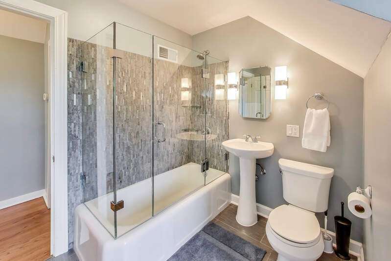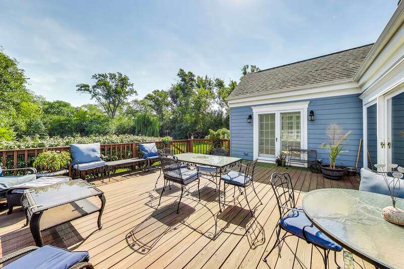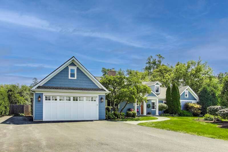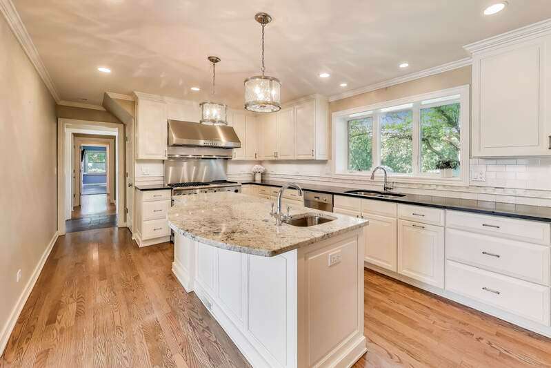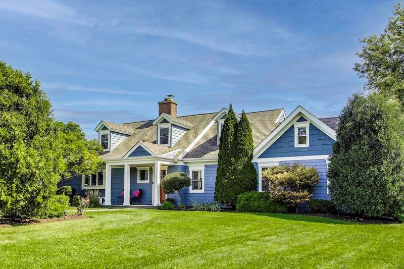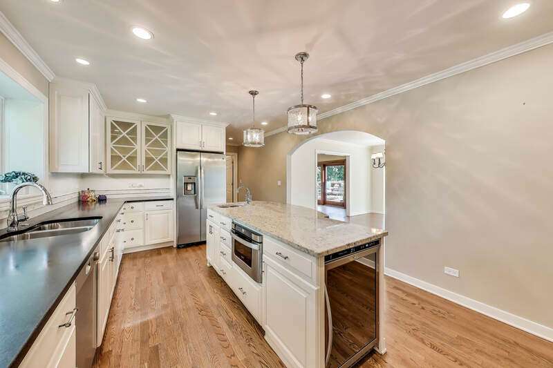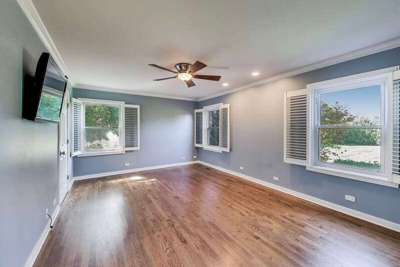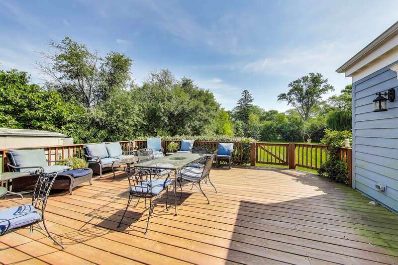 Welcome to 455 Sunset Ridge - a rare 4-bed/3-full-bath North Shore home that offers ranch-like living. Extensive renovation in 2014 included new tear off roof, new Hardie exterior, updated kitchen and baths, new front porch, and more. The home offers a rare, coveted primary suite on the main level with updated bath, TWO walk-in closets, plantation shutters, and laundry. The updated kitchen offers stainless-steel appliances, stone countertops, a large island, and an XL walk-in pantry. The main floor is sprawling with multiple spaces overlooking the large private backyard: living, dining, and family rooms, bedroom #2, an updated hallway full bath, and a convenient mudroom off the 2.5+car heated garage. Upstairs you'll find two additional bedrooms with an updated hallway full bath. Hardwood flooring throughout, plantation shutters, stone front porch, large back deck, and set back on an acre with significant privacy landscaping.