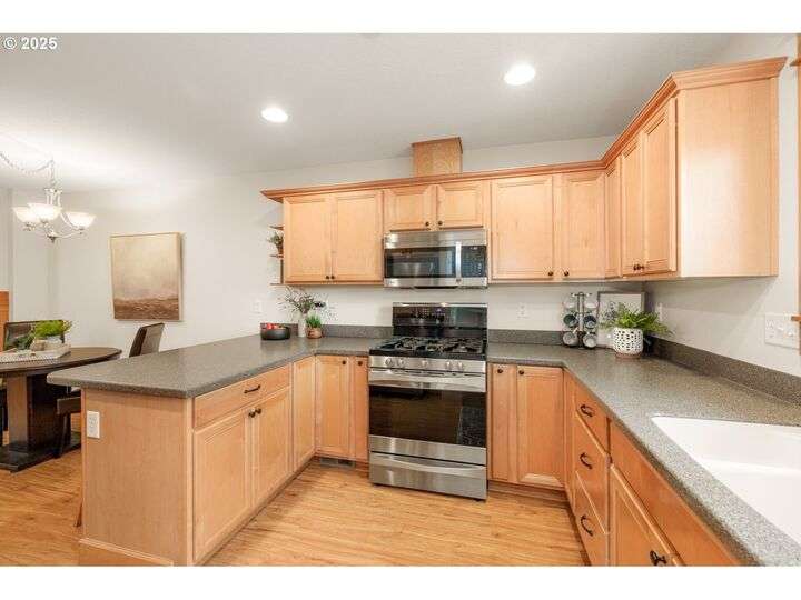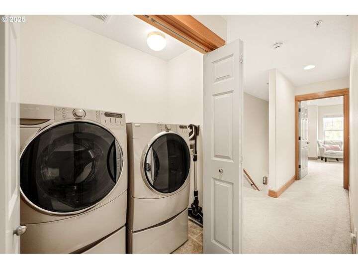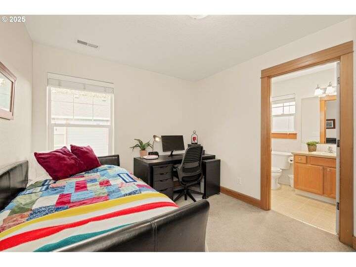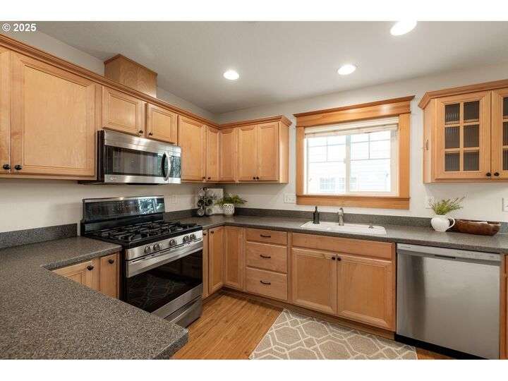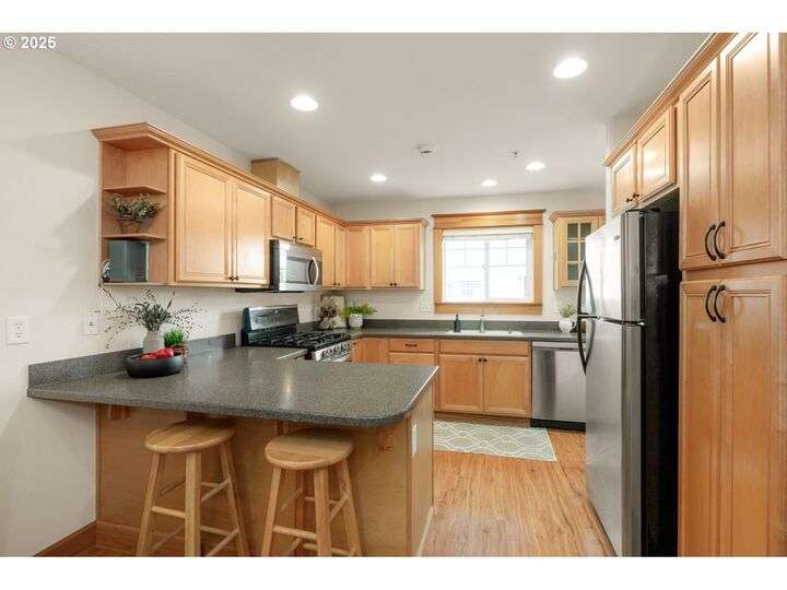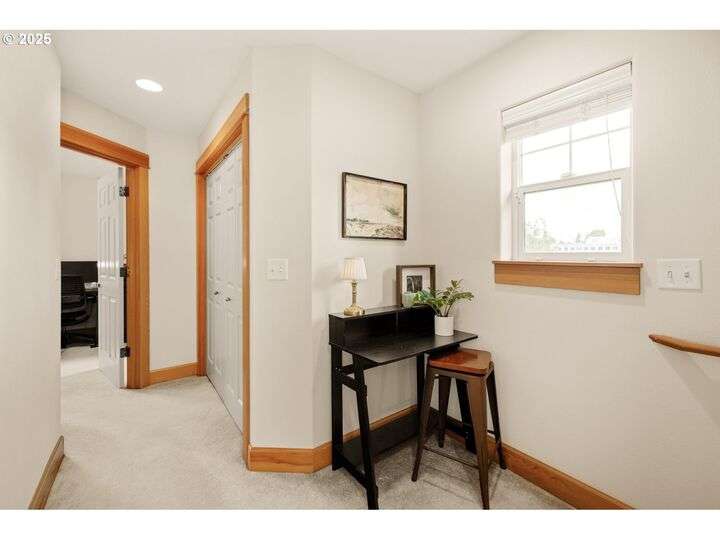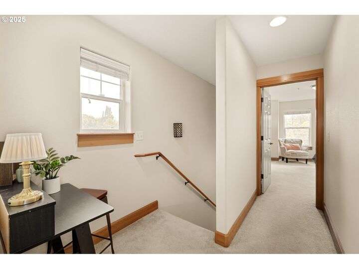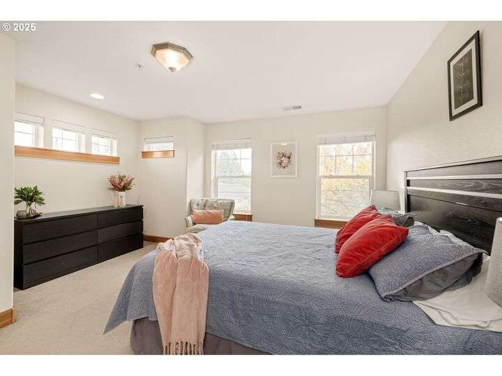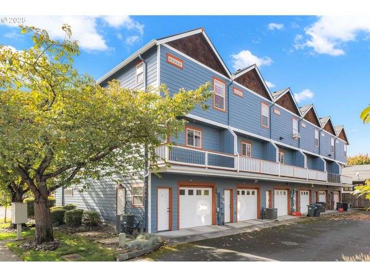 Welcome to this beautifully maintained 3-bedroom, 3.5-bath end unit townhome with attached garage in the heart of Hillsboro! Spread across three levels, this inviting residence blends modern comfort with classic charm—just blocks from historic downtown. Each bedroom features its own private bathroom, offering plenty of comfort and privacy for everyone. The main level includes a convenient half bath, a bright and spacious living room, and a well-appointed kitchen with gas range, stainless steel appliances, eating bar, generous counter space, and plenty of storage. Enjoy morning coffee on the covered deck or relax next to the fire in the open living room.Easy access to the MAX plus all the vibrant Hillsboro happenings -farmer’s market, shops, restaurants & more! This home offers the perfect combination of style, space, and location—don’t miss it! [Home Energy Score = 6. HES Report at https://rpt.greenbuildingregistry.com/hes/OR10225174]