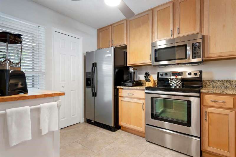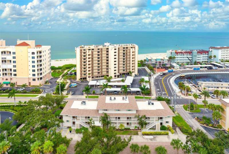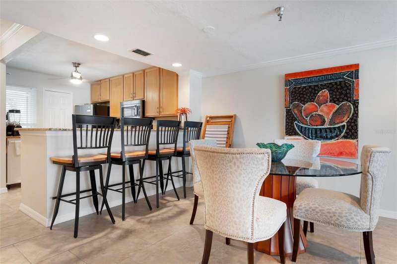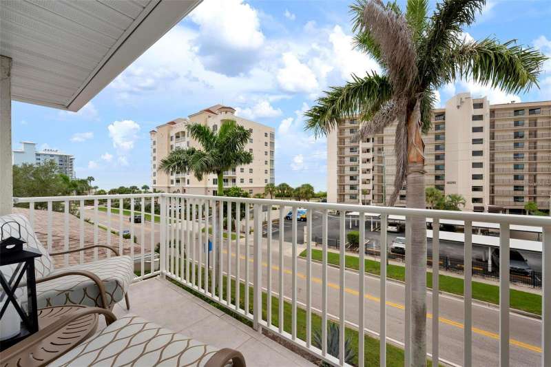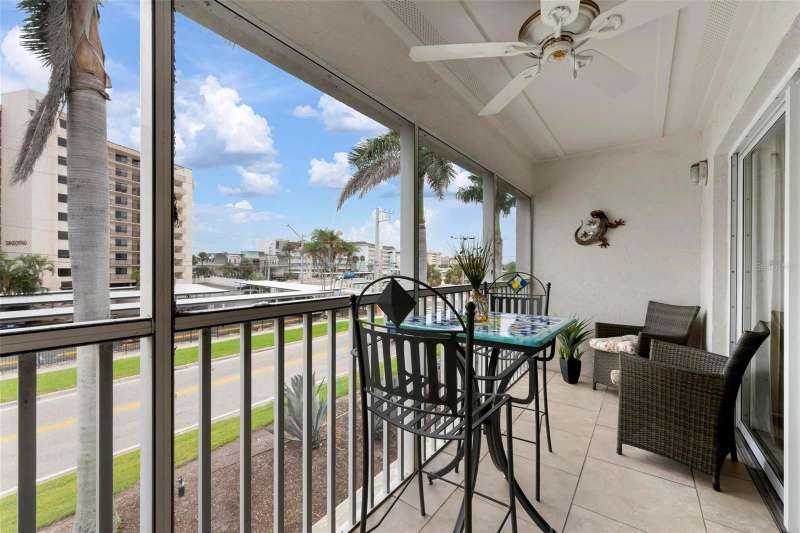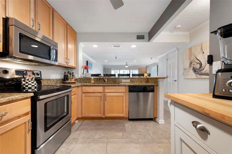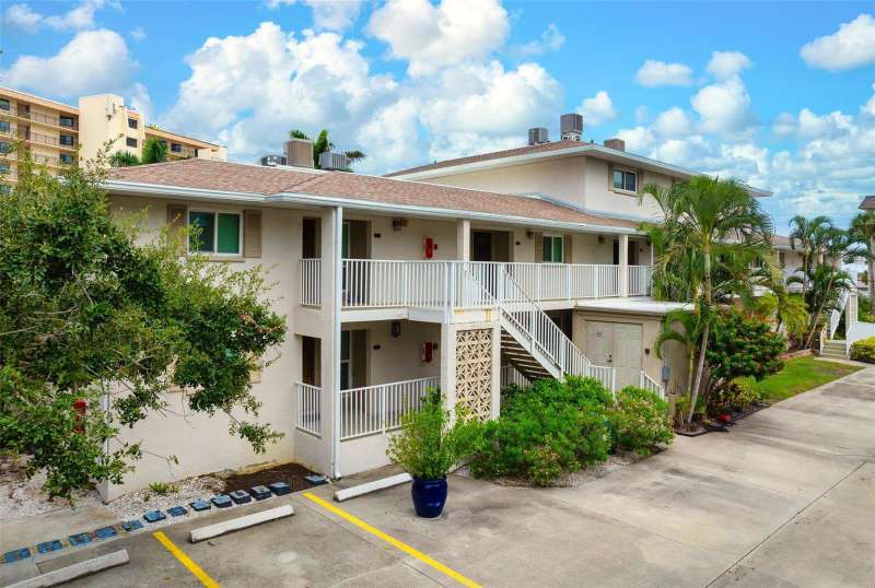 Just steps from the sand, this 2-bedroom, 2.5-bath condo blends coastal charm with a true walkable lifestyle. Less than 500 feet from the Gulf of Mexico, you can start your day with yoga on the beach, then ride your bike into Historic Downtown Venice to browse the farmers market or enjoy boutique shopping and sidewalk cafés. Freedom Boat Club, the Venice Yacht Club, the Venice Jetty, and the Crow's Nest Restaurant are also an easy waterfront stroll away—putting some of the best of Venice right at your doorstep. Inside, the open kitchen features wood cabinetry, stainless steel appliances, and granite counters, seamlessly flowing into a spacious, sunlit great room with a wall of sliders leading to the main balcony. Both bedrooms are designed for privacy and comfort with California closets and ensuite baths, while the primary suite boasts its own private balcony for soaking in Gulf breezes morning and night. The recently renovated primary bath offers a brand-new walk-in shower and all-new fixtures and finishes. With impact-resistant windows and sliders throughout, you’ll have peace of mind along with low-maintenance living. Even better, the association is completing a series of exterior upgrades—including new staircases, gutters, carport roofs, fresh exterior paint, and landscape renovations—with all costs covered by the seller. This is a highly desirable property in excellent condition that is rarely available, offering the perfect opportunity to enjoy a coastal lifestyle where the beach, dining, shopping, and recreation are just a walk or bike ride away.