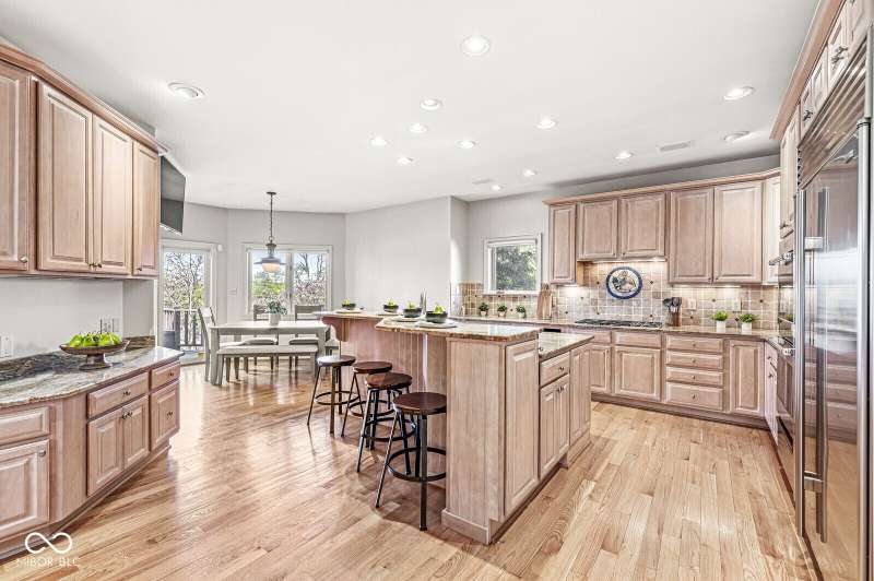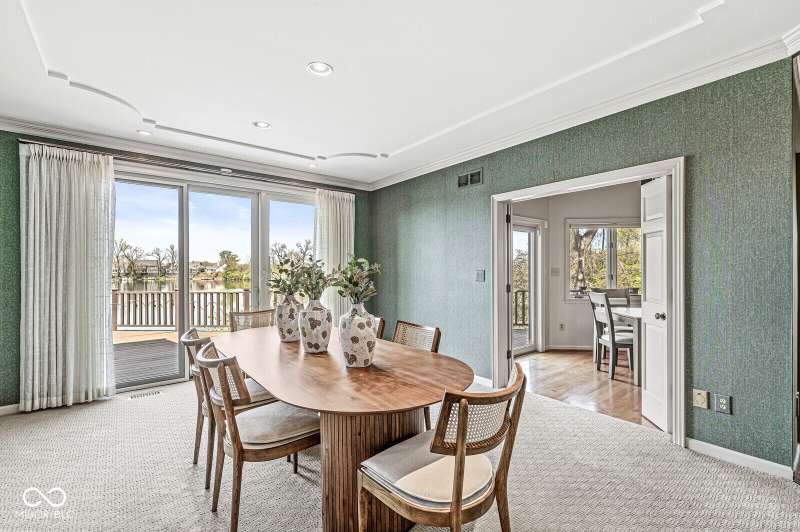 Once in a lifetime, Nantucket Bay Masterpiece with Breathtaking Water Views. Exquisite custom home stands as a testament to luxury living. Charm is enhanced by multiple decks and private boat dock, providing the perfect vantage point to soak in the beauty of the surrounding landscape. Step inside to discover a Chef's kitchen equipped with Subzero and Wolf appliances, custom cabinetry and large center island. Seamless flow between the formal dining room and family room, adorned with a coffered ceiling, creates an inviting atmosphere for gatherings both large and small. Main level primary suite with a dream closet. Upstairs features a loft that overlooks the water, second ensuite bedroom, wrapping room and storage galore above the 3 car garage. Walkout lower level has two additional bedrooms ensuite, cozy family room with included pool table, wet bar and a climate-controlled wine room for the connoisseur. A dumbwaiter connects to the garage, ensuring effortless transportation of your prized collection. Embrace the low-maintenance lifestyle and immerse yourself in the tranquility of Nantucket Bay, where every day feels like a vacation.