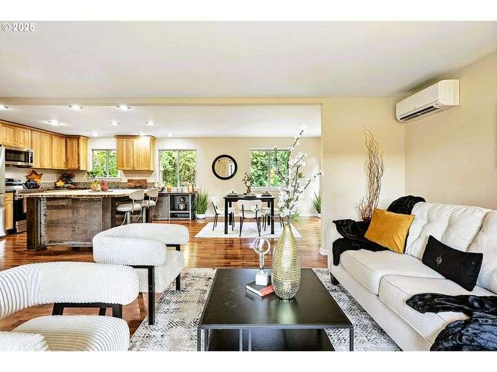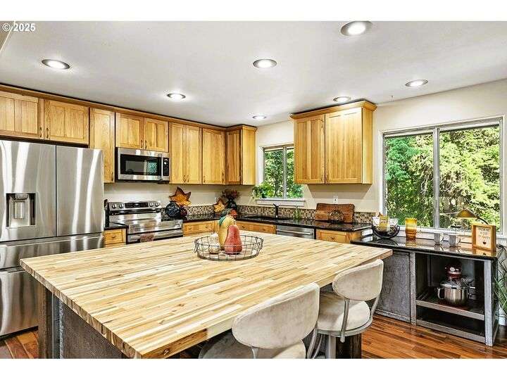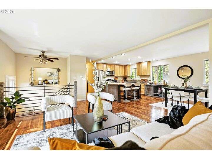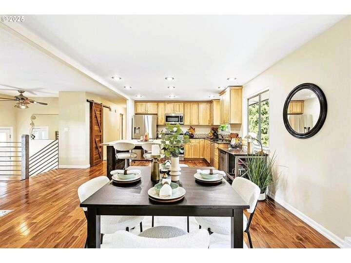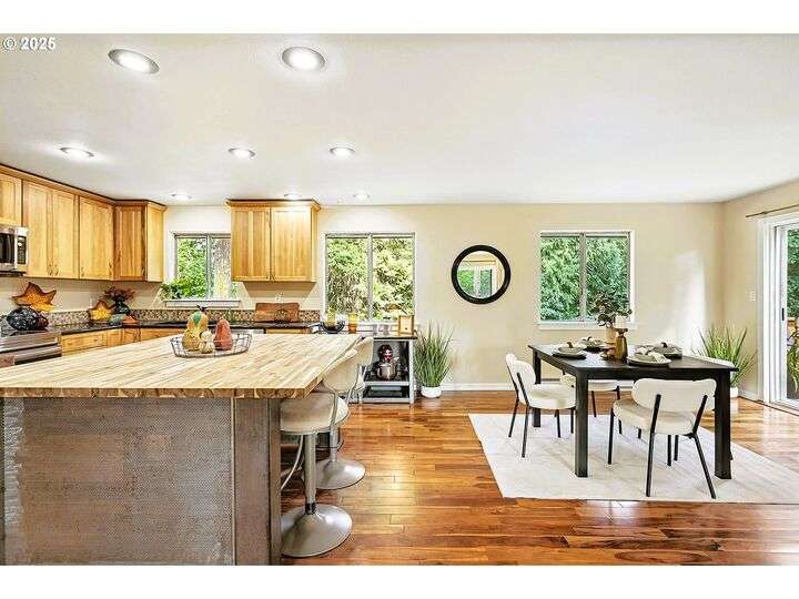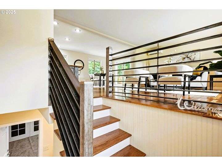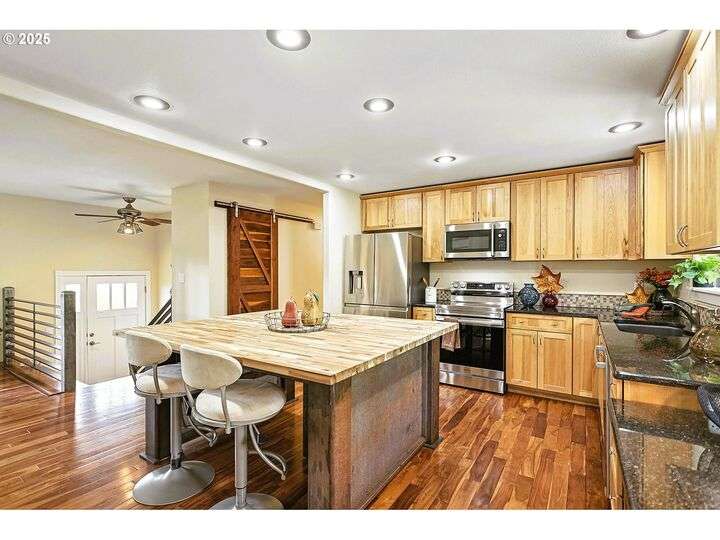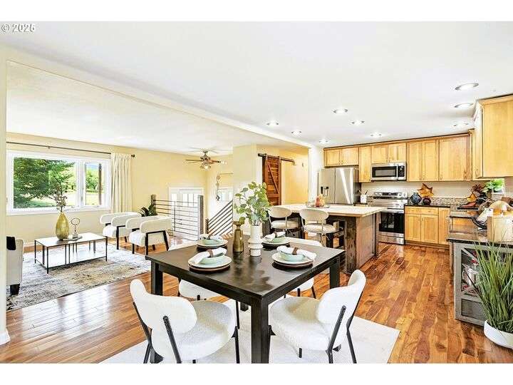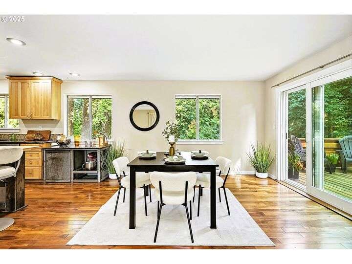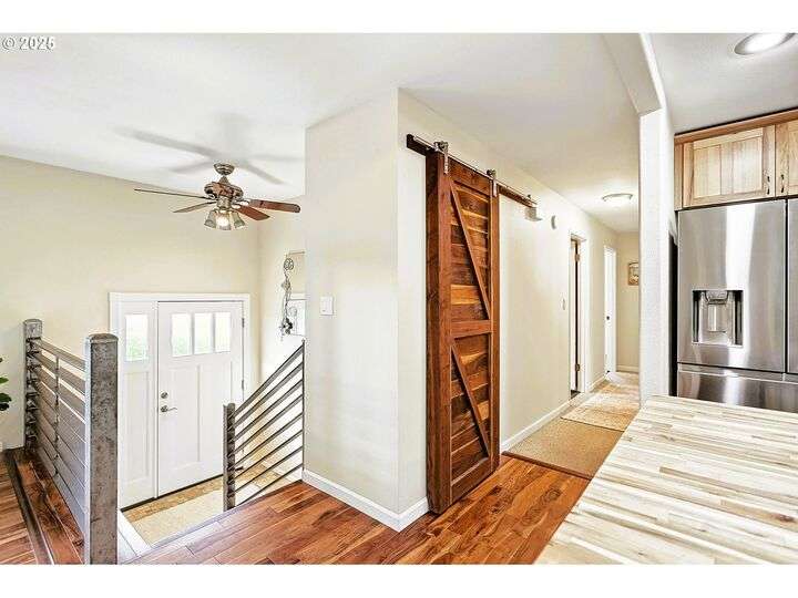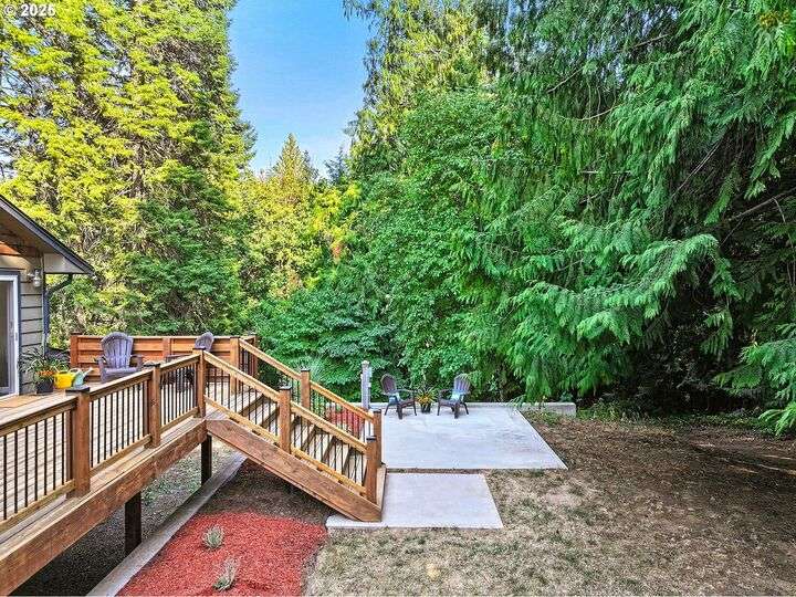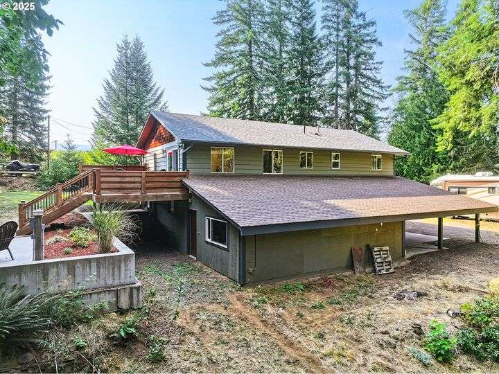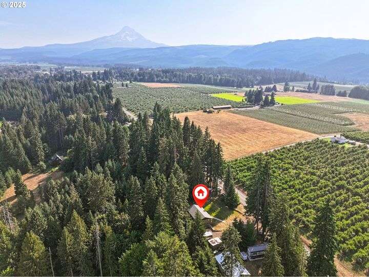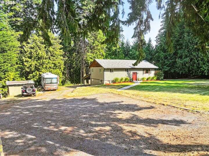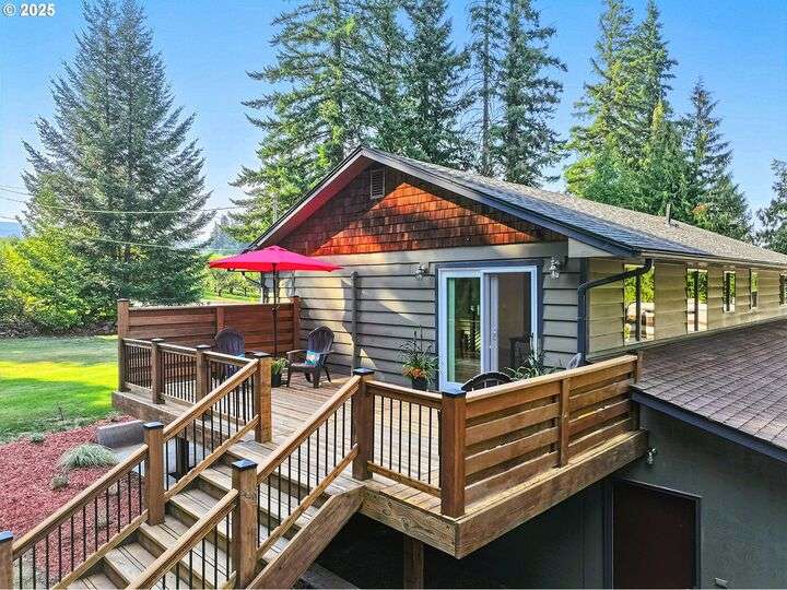 Wonderful Parkdale home set on a private, Sunny & peaceful .80-acre lot trimmed in old growth trees. The property offers abundant parking options with a huge driveway, tons of RV space, and additional-custom parking pad on the south side of the yard. You also have the benefit of having Irrigation rights! Enjoy easy access to Mt. Hood for year-round recreation along with all the activities the Gorge has to offer.This stylishly updated home is filled with natural light and showcases tree-filled views from nearly every window. Perfect for entertaining, the spacious cedar deck off the great room flows to a lower patio and the expansive yard.Inside, a custom iron railing leads upstairs to the stunning great room with Asian Walnut floors. The gourmet kitchen features granite counters, stainless steel appliances, a pantry with Black Walnut barn door accent, a striking Arcadia wood and metal island with seating, and a custom granite-and-metal coffee/appliance bar with built-in trash and recycling. There are three upper bedrooms with vinyl plank flooring and a beautifully remodeled bathroom with tile floors, a modern vanity, window, and heated toilet seat for cozy winter mornings.The lower level offers a brand-new entertaining family/bonus room ideal for movie nights or gatherings, plus a utility room with 1/2 bath and access to a spacious canning room. Additional storage rooms provide plenty of space for gear or seasonal items. French doors from the family room open to an oversized one-car garage & O-Sized carport.New/Newer Updates include: Roof in 2020/2021, Hot H20 Heater, Bathroom & Family Room, 200 Amp Service for Home & 30 Amp Panel in Garage, Stained Deck & Interior/Exterior Paint, Vinyl Window in Great Room & Sliding door & Much More!This inviting property is truly a happy place, is move-in ready and is waiting for you! By appointment only. Buyer to verify all information for their intended use. A Feature Sheet is available upon request. Don't Miss this One!