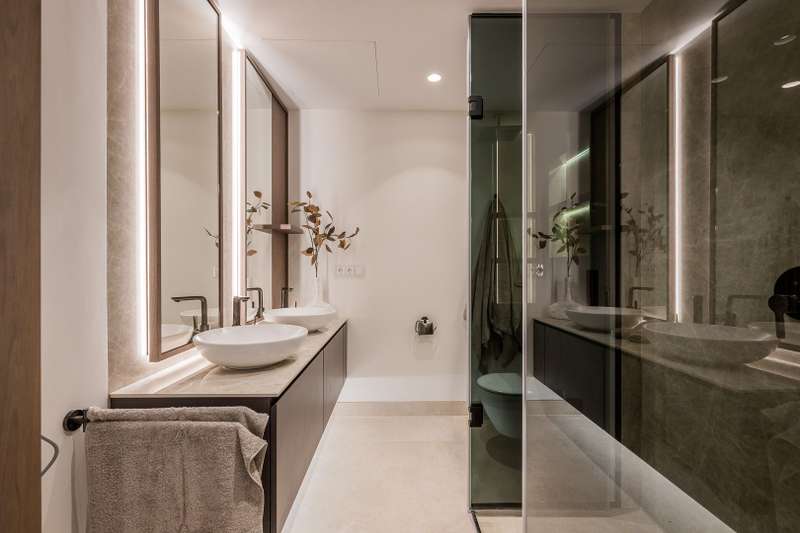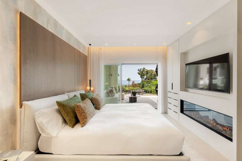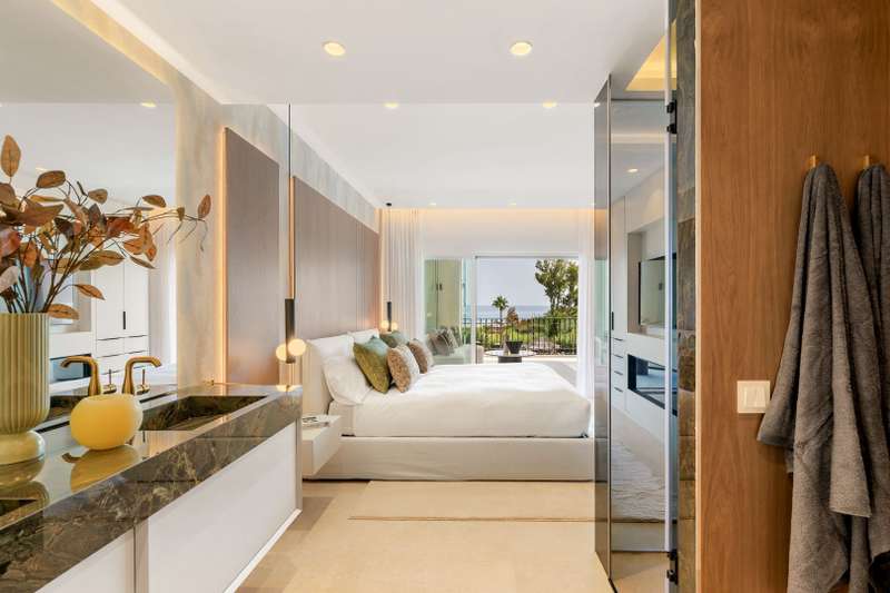 Fully renovated luxury apartment offering stunning views of the surrounding landscape and the Mediterranean Sea. The 120 m² interior features three bedrooms, two bathrooms, and a 38 m² terrace where a glass curtain seamlessly extends the lounge area, creating a spacious and comfortable living environment. Designed with modern elegance and high-end finishes, the apartment includes a designer open-plan kitchen with premium German appliances, a Thermomix, wine fridge, invisible hob, and sleek contemporary furniture. Additional luxurious touches include an electric fireplace, Bang & Olufsen sound system, custom-made wardrobes, high-quality flooring, a hidden laundry, a separate laundry room, and a conservatory. Located in the prestigious Bahía del Velerín community between Marbella and Estepona, residents enjoy lush tropical gardens, a beautiful pool area with snack bar, 24/7 security, and direct access to one of the region’s finest beaches. The property comes with one parking space and a