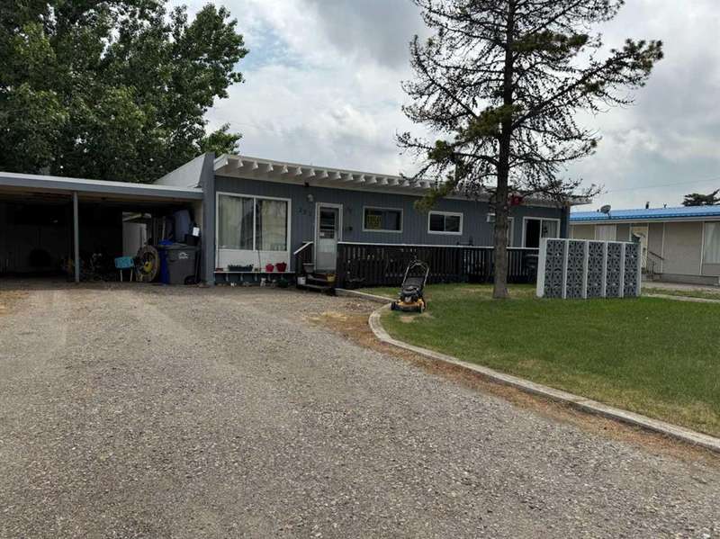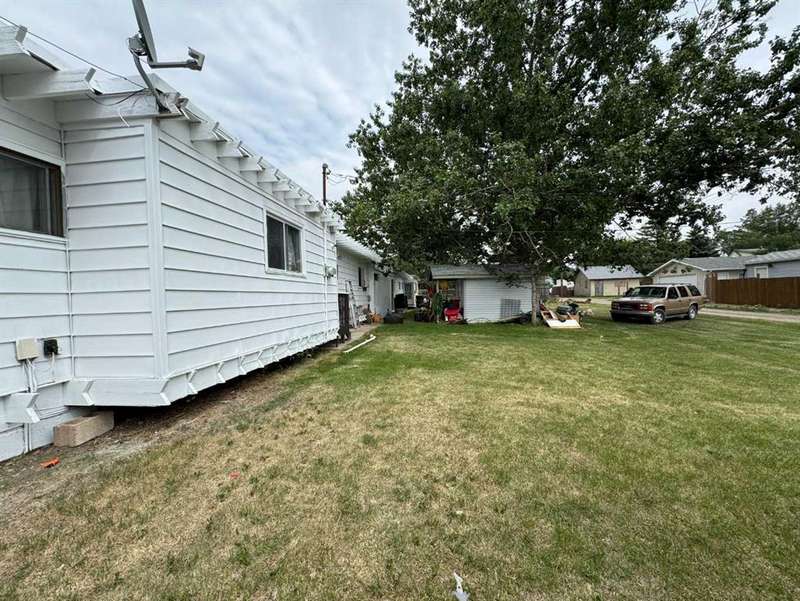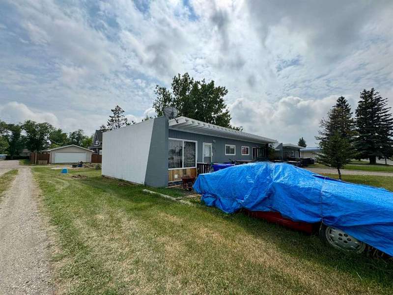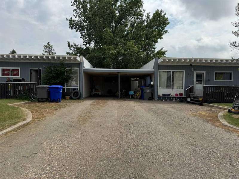 GREAT investment opportunity in the thriving community of Claresholm! This suited duplex features TWO 2-bedroom, 1-bathroom units and TWO 1-bedroom, 1-bathroom units, PLUS a double carport joining each side of this duplex, all wrapped up in sweet 1960s charm. Buy it and keep it as is, or switch things up and renovate it into two larger units with a single carport or garage each side. Or start with a clean slate and build a fresh new complex on this massive 132 x 125 foot fully serviced lot in an excellent location. Loads of possibilities here! All units are currently rented, with room for rental increases on all units.