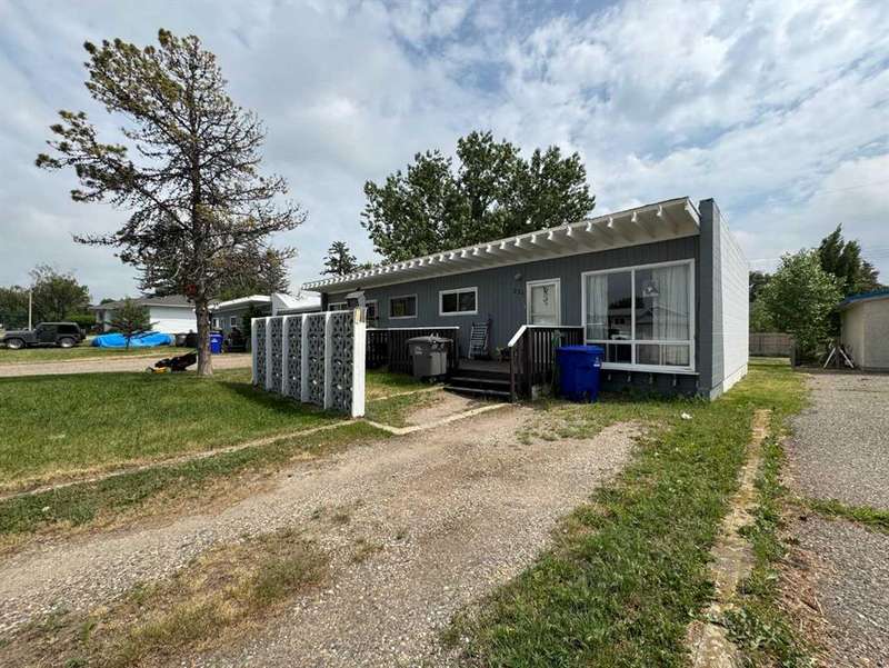GREAT investment opportunity in the thriving community of Claresholm! This suited duplex features TWO 2-bedroom, 1-bathroom units and TWO 1-bedroom, 1-bathroom units, PLUS a double carport joining each side of this duplex, all wrapped up in sweet 1960s charm. Buy it and keep it as is, or switch things up and renovate it into two larger units with a single carport or garage each side. Or start with a clean slate and build a fresh new complex on this massive 132 x 125 foot fully serviced lot in an excellent location. Loads of possibilities here! All units are currently rented, with room for rental increases on all units.