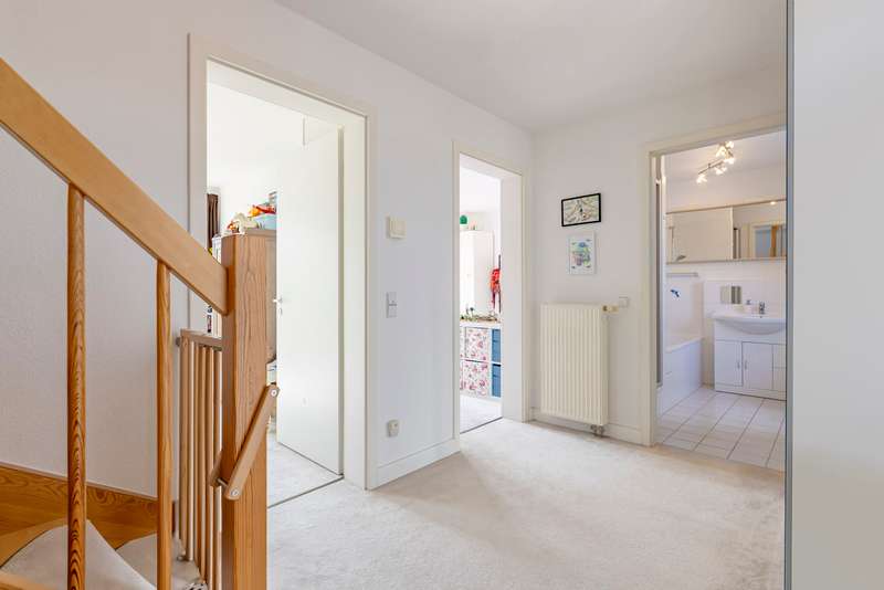 This well-kept terraced corner house, built in 1999, offers a comfortable living solution for families or couples looking for a well-structured, spacious home. With a living space of approx. 130 m², the house extends over three floors and offers a total of 5 rooms, including 3 bedrooms, which offer plenty of space for individual design options. This room layout is complemented by a spacious bathroom equipped with all the necessary facilities. The generously proportioned living space allows for flexible use, providing the perfect conditions for both family life and working from home. The heart of the house is the spacious living room, which is fitted with high-quality parquet flooring. The floor-to-ceiling windows provide plenty of light and a pleasant living ambience. There is a lovingly landscaped garden on a plot of approx. 200 m², which offers plenty of space for leisure activities and relaxation. A special feature of this house is the roof terrace, which offers additional outdoor space and opens up a wide range of possible uses. The property is also equipped with a practical basement storage room on the first floor. An outdoor parking space with wallbox is available for electric vehicles and underlines the modern orientation of this property. The central heating supply is ensured by a district heating connection, which was newly installed in 2024 and guarantees energy-efficient heating. With its well thought-out room layout, this house offers attractive options for anyone looking for a ready-to-move-in home in well-kept condition. A viewing can be arranged individually and offers the opportunity to gain a personal impression of the benefits of this property. Please contact us for further information or to arrange a viewing.