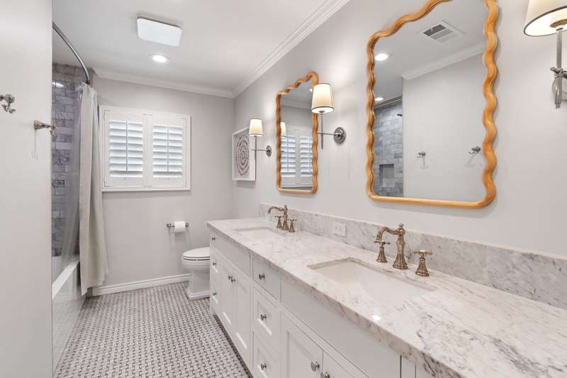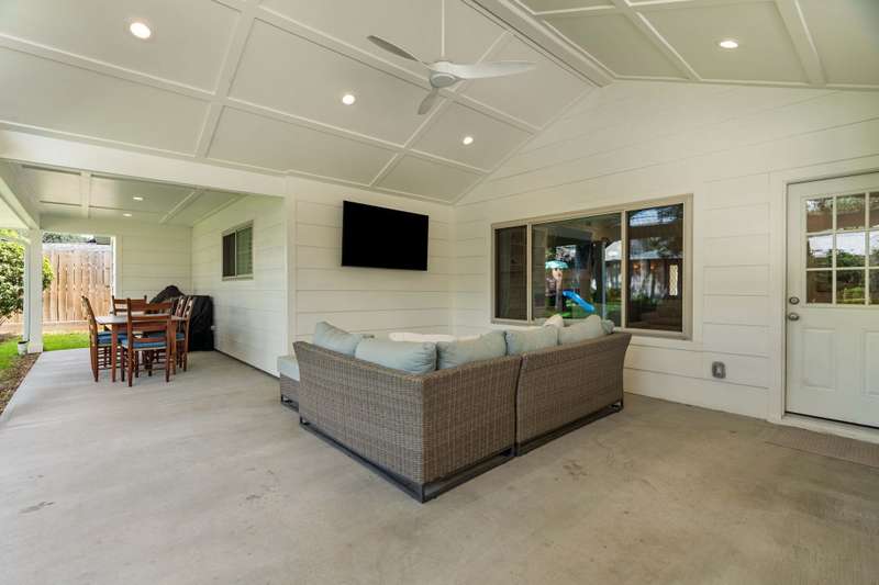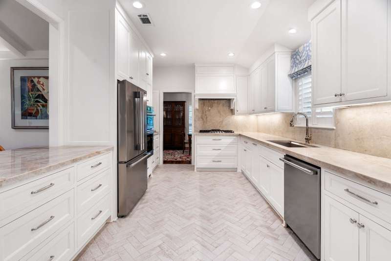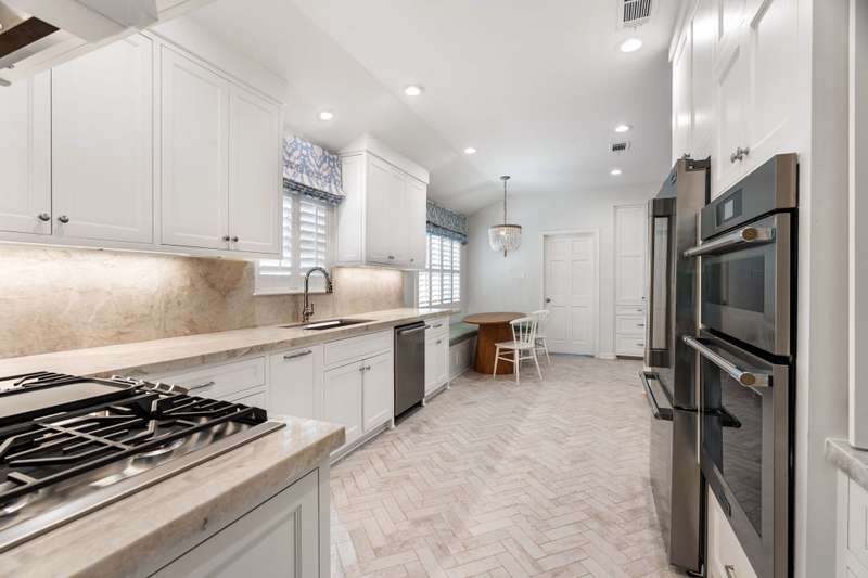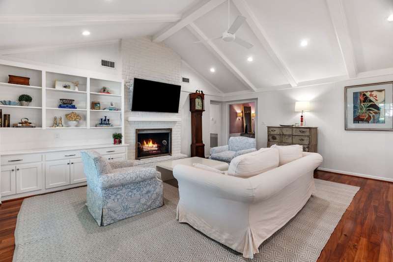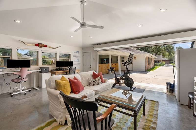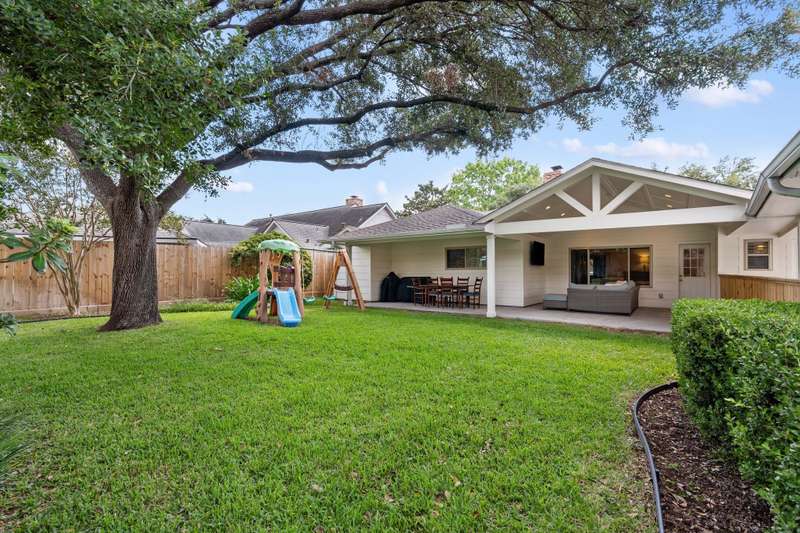 Classic Briarmeadow residence thoughtfully reimagined. 7710 Pagewood Lane is a 4bed/2.5 bath home sitting on a 9,500 (HCAD) sqft lot. The home features a lovely porch with gas lanterns, formal entry with grass cloth, dedicated dining & living rooms, plus a large family room with vaulted ceilings. The open kitchen has a raised ceiling with custom cabinetry, quartzite countertops, and stainless steel appliances. Sit comfortably at the barstool seating or built-in breakfast banquette. Head outside through the renovated mud/laundry room and you’ll find an expanded covered patio overlooking the large back yard. The garage has been converted for usable square footage with AC, but may be used as a traditional garage if desired. All bedrooms located on right wing of the home. Both full bathrooms feature marble countertops, primary bath has separate tub and shower! Full home generator. Schedule your showing today! Per Seller