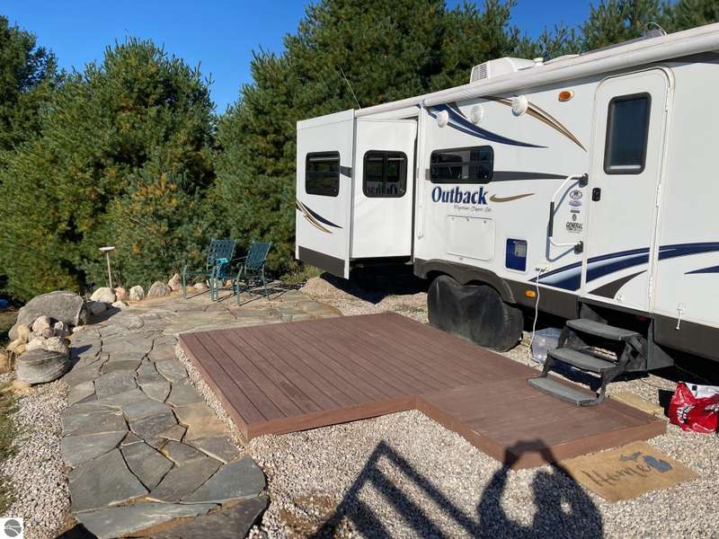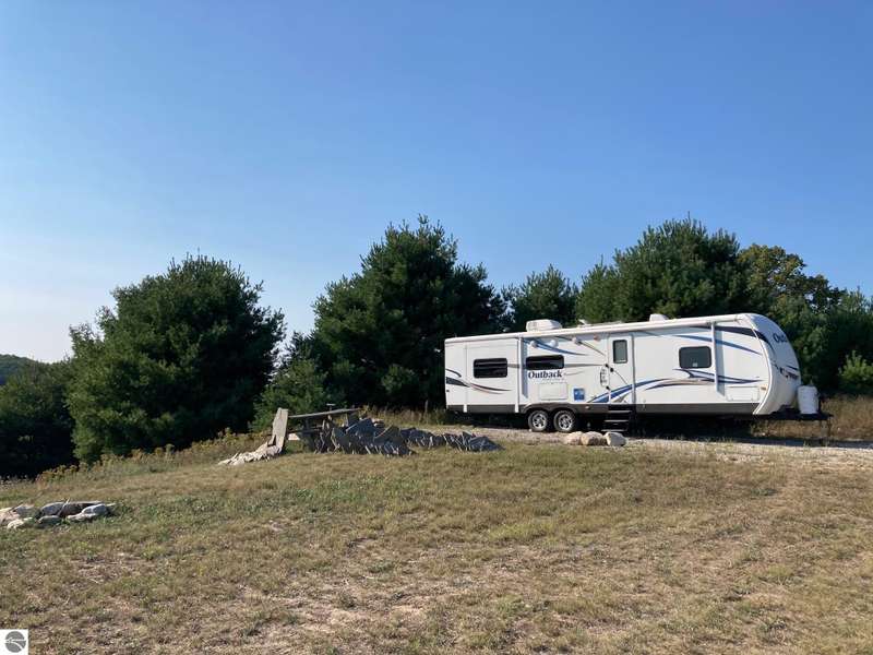 Amazing 4 plus acre parcel with breathtaking views of popular all sports Wilson Lake. Includes 30 ft private frontage for boat docking. Giving access to whole Upper Chain of Lakes. Located in popular Iron Horse Farms development between Villages of Central Lake and Ellsworth. Also includes 70 acre common wooded area with walking trails throughout. This parcel contains amazing building locations and is preset for temporary RV use as well as future construction. Sale includes top line 35 ft RV on site with 3 slides and decking in place. New septic already installed for RV use and sized for future 3 bedroom home. 30 amp electric service on site. Property contains a section of massive white pines that have been cleared below to create a unique shady rest area that stays cool and breezy year round. Wild life, flowers and berry bushes are plentiful. A trout stream runs through Iron Horse and is near the property. Fishing on Wilson lake has always been considered a favorite by locals. This property has it all... acreage, views, private waterfront, temporary camping abilities and future building site in great location and all at a value price.