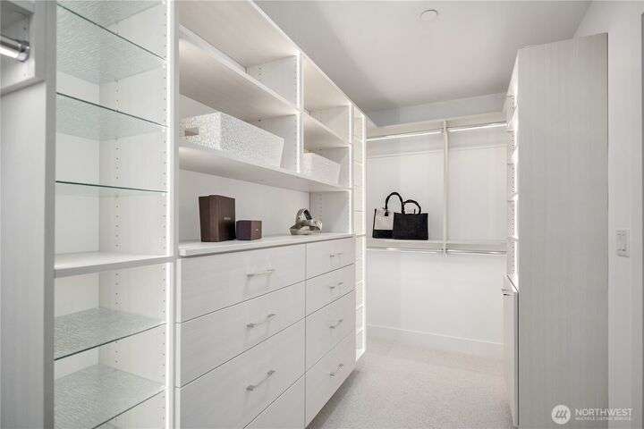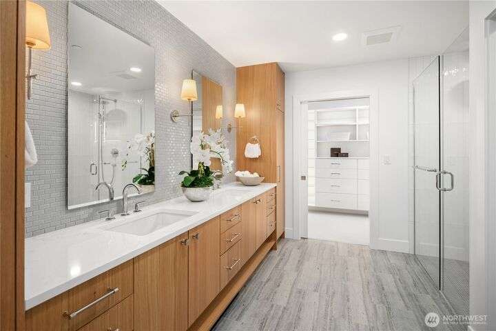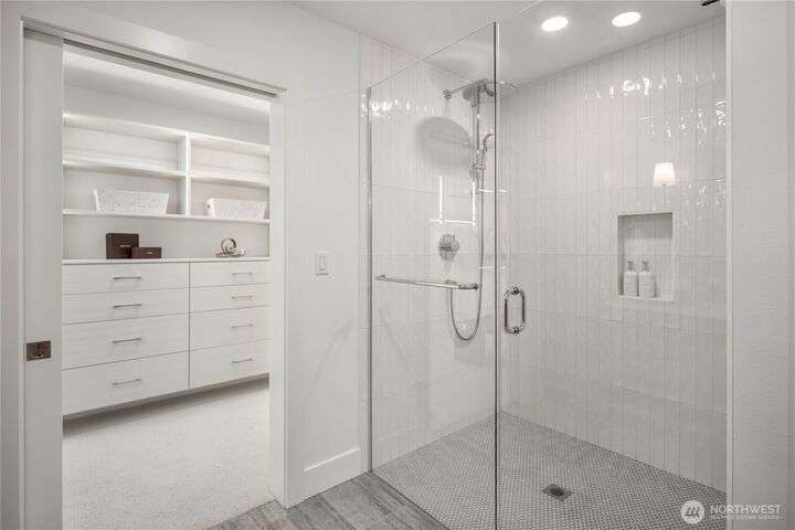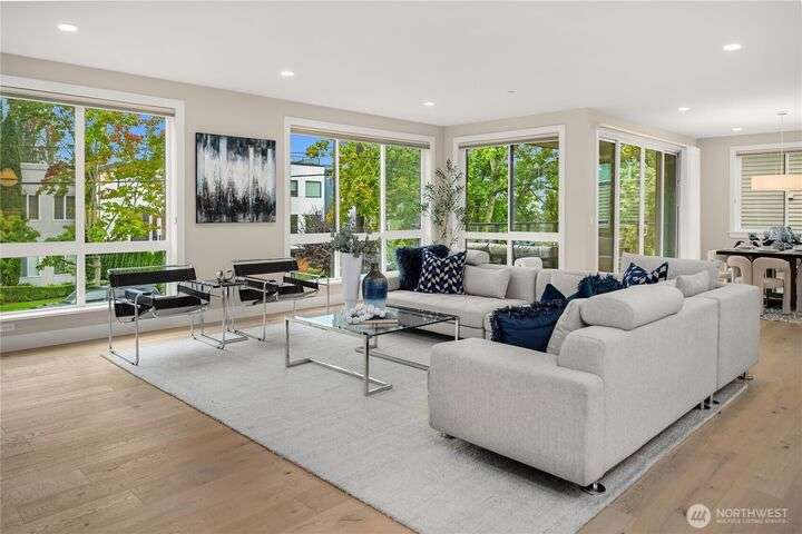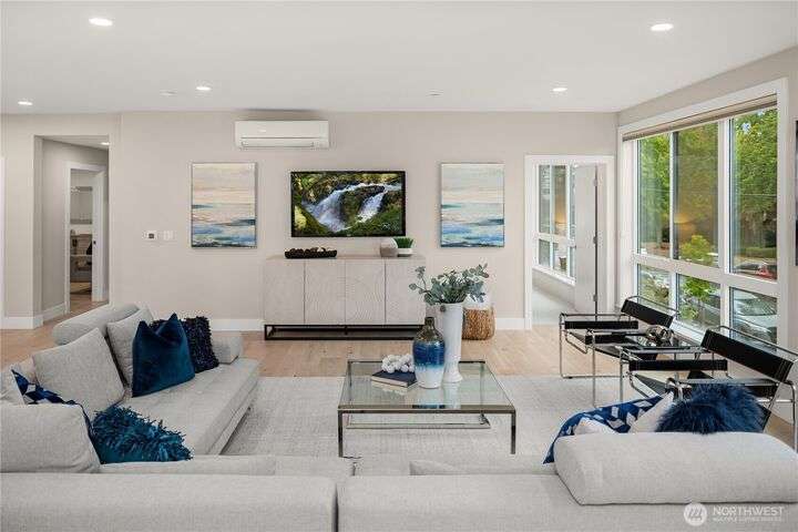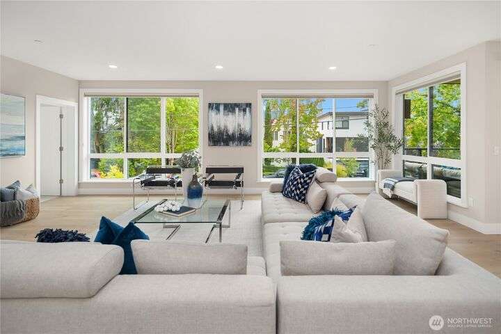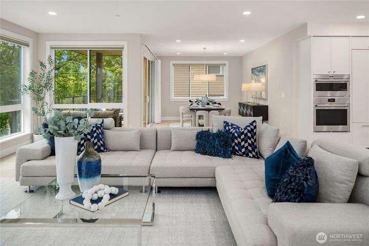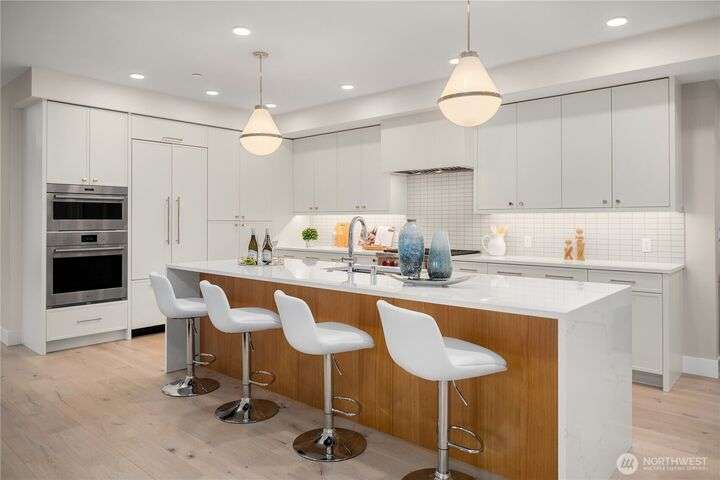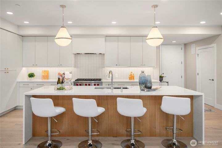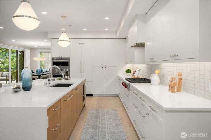 Unrivaled luxury at Steeple Rock! This exceptional 1,993 sqft residence blends modern sophistication with timeless design. This 2-bdrm, den/flex, 2-bath masterpiece is bathed in southern light with Penthouse-inspired style and elegance. From flawless finishes to a serene sense of privacy, every detail reflects uncompromising quality. Chef's dream kitchen offers a 10.5' quartz slab island with waterfall accents & breakfast bar complimented with Wolf gas range, Sub-Zero & Jenn Air appliances. Walls of glass define the amazing great room. Primary suite offers spa-inspired bath & designer walk-in closet. Exclusive & secure building w/ luxurious lobby, elevator, reserved parking & storage. Steps to downtown Kirkland. True lock & leave lifestyle!