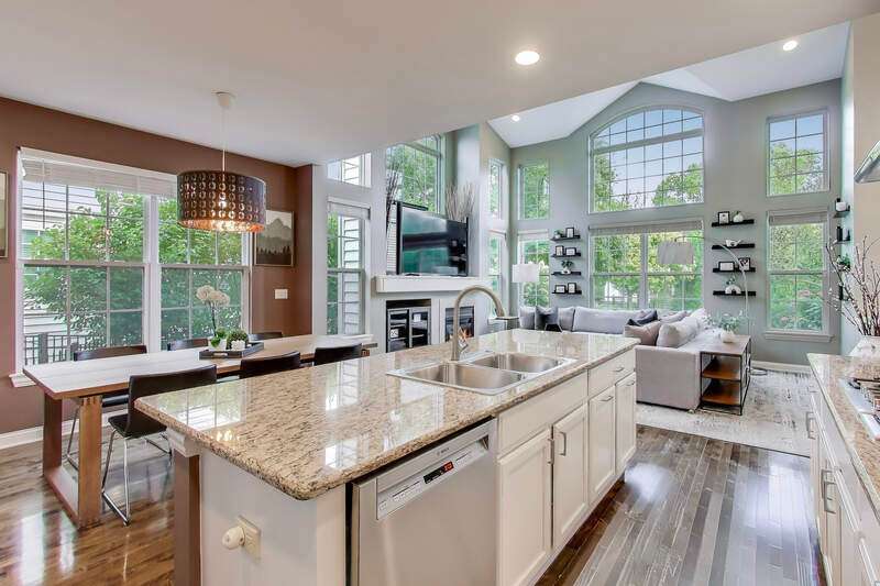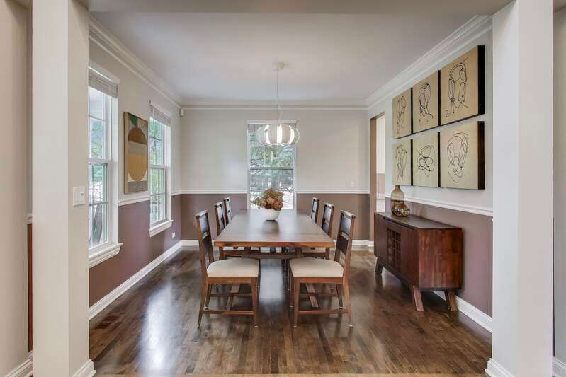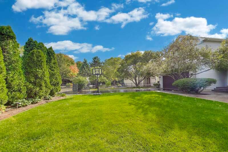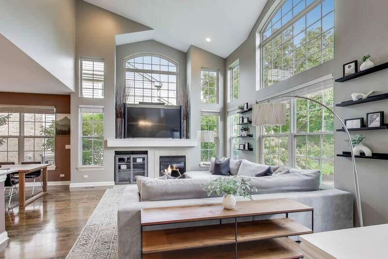 Perfectly positioned in the heart of The Glen, this residence opens with a welcoming front porch and a dramatic two-story foyer with soaring ceilings, setting the stage for elegance throughout. Expansive living and dining rooms provide the perfect backdrop for entertaining, while sleek hardwood floors and modern finishes enhance every space. The chef's kitchen features a large center island with seating, double ovens, high-end appliances, and a pantry, flowing seamlessly into the grand family room with cathedral ceilings, floor-to-ceiling windows, and a striking fireplace overlooking the backyard. A versatile main-level office, convenient laundry/mudroom, and an elegant powder room add comfort and functionality. The primary suite is a serene retreat with cathedral ceilings, an impressive walk-in closet, and a spa bath designed for relaxation, complete with a whirlpool tub, separate walk-in shower, and dual vanities. Three additional bedrooms and a full bath complete the second level. The finished lower level offers over 1,500 square feet of recreation space with a large entertainment area, 5th bedroom currently being used as gym, full bath, and generous storage. Outdoors, a landscaped yard and paver patio provide space for entertaining, complemented by a two-car attached garage. This home blends luxury, comfort, and convenience. This home blends luxury, comfort, and convenience, situated in The Glen's premier community just moments from parks, shopping, dining, and the Metra. It is also located within highly sought-after Districts 34 and 225, serving Westbrook and Glen Grove Elementary, Attea Middle School, and the award-winning Glenbrook South High School. Additional highlights include a new roof installed in 2021 with DaVinci Bellaforte Shake composite materials, offering timeless curb appeal and a 50-year life expectancy.