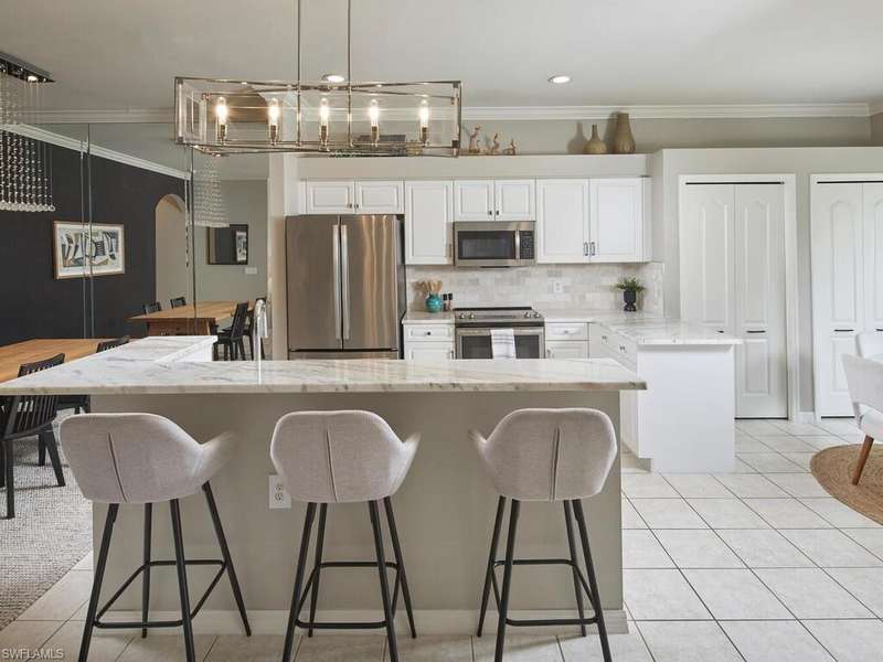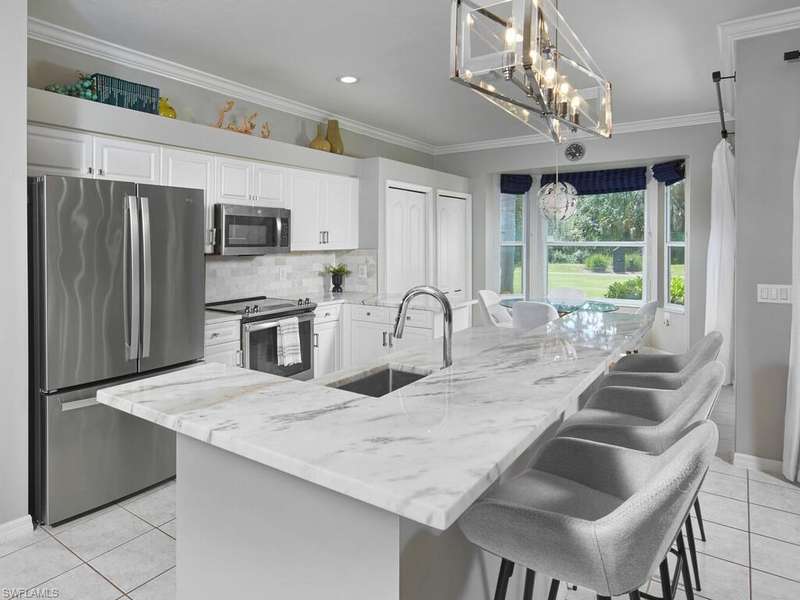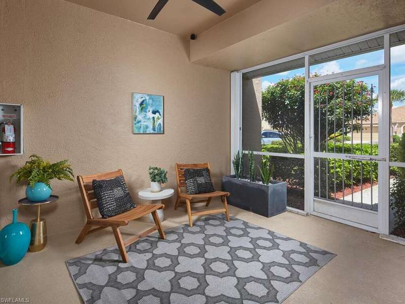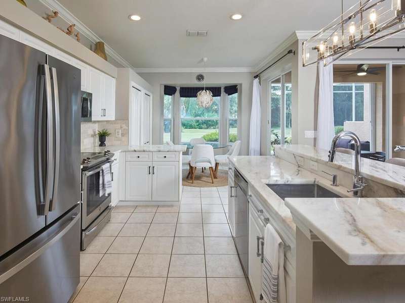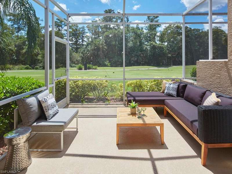 Updated price improvement! Welcome to your own slice of North Naples! This 2-bed, 2-bath villa in Heritage Greens is move-in ready! As you walk into the open concept living space, you'll get your full dose of sunshine with all that southern exposure. The living room corner sliders bring the outdoors in as it they open to the 3rd tee on Arrowhead Golf Course an 18-hole, par 72 course designed by Gordon G. Lewis rated one of the best public courses around! The screened-in back lanai offers extended living space for patio dining, lounging or enjoying your morning coffee as the sun rises over palm trees and rolling greens of your forever well-maintained back yard. Say goodbye to that vitamin D deficiency! The peaceful setting backs up to a natural preserve no construction or road noise ever. Modern updates include quartz counters, stainless steel appliances, a large single bowl stainless sink/faucet, ceiling fans, updated guest bath and wood-look vinyl flooring in the bedrooms. Stora