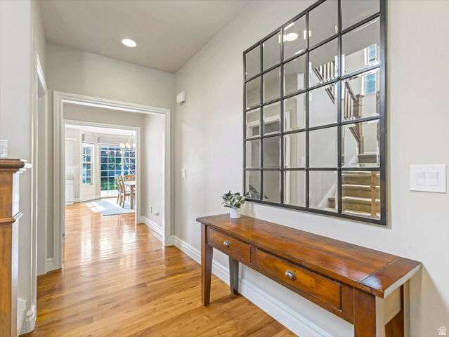 Exquisite 5 bedroom, 3.5 bath residence in one of Holladay's most sought-after neighborhoods, offering luxury and freedom with no HOA. Ideally situated near top-rated schools, the Cottonwood Country Club, parks, shopping, dining and it is just a short drive to world-class ski resorts in the Cottonwood Canyons. This home combines elegance, convenience, and lifestyle. From the moment you arrive, the home's charming stone accents, arched dormer windows, and elegant front entry make a striking first impression. Step into the grand entryway and take in the open staircase with a custom milled railing and a view towards the home office or formal living room. Next the welcoming great room is the heart of the home, featuring a cozy gas fireplace with a craftsman made wood mantel and tile hearth. Prepare delicious meals and gather in the open-concept gourmet kitchen that boasts white hand-crafted cabinetry, granite countertops, a sleek tile backsplash, a center island, stainless steel appliances, and a wood-clad range hood over a gas stove. The adjacent dining area is lined with sunny windows and opens up to the covered patio, perfect for effortless indoor/outdoor entertaining. Upstairs, you'll find a luxurious primary suite, plus three additional bedrooms, an additional full bath and a conveniently located laundry room. The spacious primary suite features vaulted ceilings, large windows and a walk-in closet. The spa inspired primary bathroom boasts a soaking tub, a large walk-in shower, and a double vanity with a rich quartz countertop. The well finished basement adds versatility with a spacious rec room, a full bathroom, and an additional bedroom - ideal for guests or a home gym. Set on a beautifully landscaped 0.17-acre lot, the private backyard offers a lush lawn, mature trees, and ample space for play, relaxation or entertaining. With its timeless design, luxurious finishes, and prime Holladay location, this remarkable home is truly one-of-a-kind.