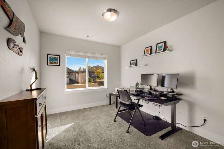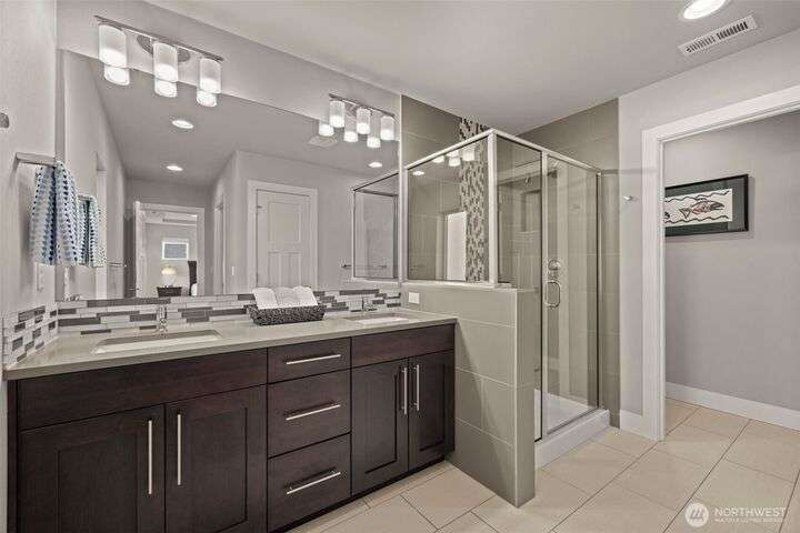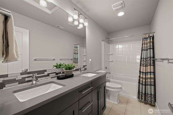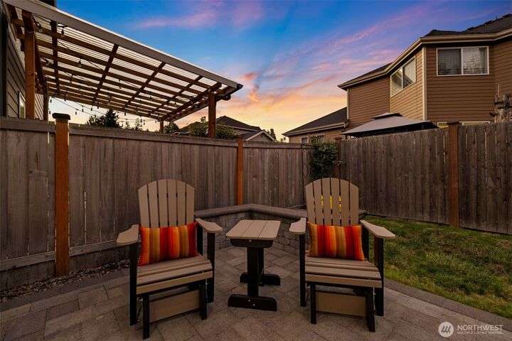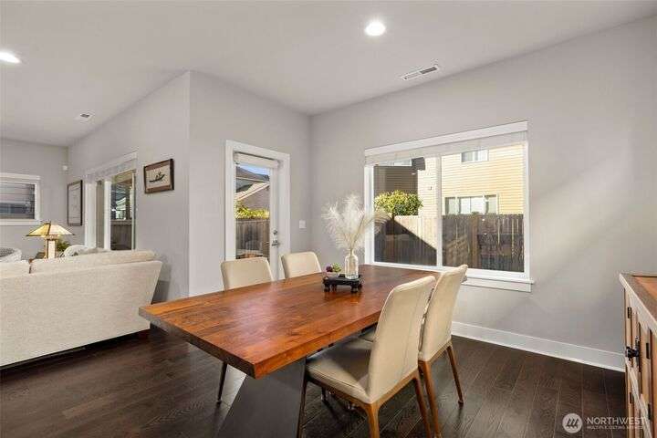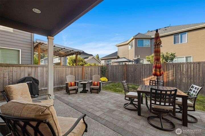Built in 2018, this contemporary Ryan Park home welcomes you with radiant natural light and rich espresso-toned hardwoods that sweep across the open main floor. A sleek kitchen with quartz countertops, full-height tile backsplash, and pantry flows effortlessly into the dining area and fenced backyard—an inviting setting for al fresco entertaining. The living room’s stacked-stone fireplace forms a warm centerpiece, while upstairs, a spacious bonus room and tranquil primary suite offer everyday retreat. With over $65K in upgrades, the home showcases expanded hardwoods, backyard hardscaping, and an upgraded garage with epoxy floors and custom storage. Just steps from a community park and within the sought-after Northshore School District.