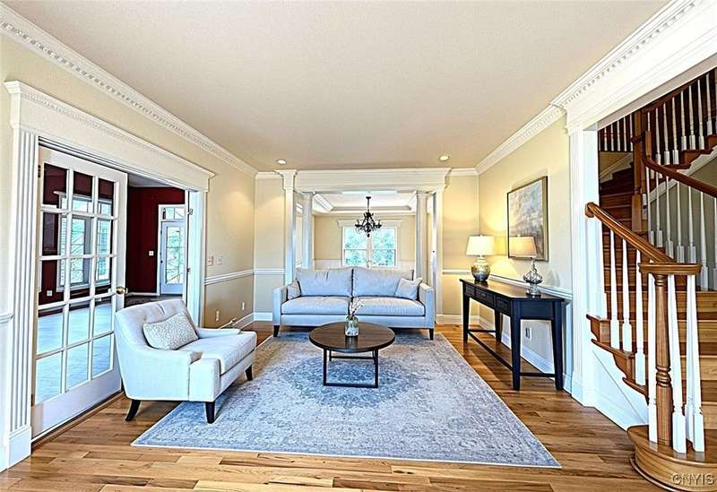 Welcome to this stunning 5,544 sq ft residence nestled in one of Baldwinsville's most desirable neighborhoods.This expansive 5-bdrm,4.5-bath home offers the perfect blend of luxury,comfort,and functionality?ideal for both grand entertaining and everyday living.Professional landscape and hardscape front yard leads you into 2-story foyer and lounge area.Beautifully designed living space,soaring ceilings and abundant natural light.Large office with custom cabinets,bookshelf, granite top.Chef's kitchen with stainless steel appliances,lots cabinetry,pantry,island,perfect for gatherings and entertaining,adjacent morning rm overlooking the multi level decks and pool.Sizable formal dining rm with architectural details to elevate guests experiences.The bonus rm could be a bar room/game/media room,library,yoga space that suits your lifestyle.Spacious with rooms to cozy up in the elegant living room or unwind in the family rm with a fireplace for added warmth and charm. Enclosed sunroom overlooking the pool/backyard.Custom designed stairway takes you to 2nd level, a luxurious primary bedr00m with spa-inspired ensuite bath and 2 walk-in closets. Another bedroom suite with full bath, Jack and Jill rooms with joined bath & 5th bed. Professionally landscaped backyard with patio space for relaxing/entertaining. The full finished walkout basement features a home gym, large bar w/ kitchen, huge living area with a fireplace and a full bath that can become a living quarter for guests and in-laws. Greeneries all around the property,Built-in shed under the deck for storage,1st floor laundry room,2-car garage.Central vac,home theater system ready to hook up. 2025 update list includes NEW ROOF, NEW INTERIOR+EXTERIOR PAINTINGS,NEW PATIO PAVERS,NEW LANDSCPES AND PLANTS,NEW GARAGE DOOR SPRING AND CHAINS,NEW DECK SEALANT/STAIN,NEW A/C COMPONENT REBUILDS,NEW WASHER AND DRYER.Located just minutes from village shops,top-rated schools,and scenic parks,this home offers the tranquility of suburban living with easy access to Syracuse and surrounding areas.Total square footage of 5,543.75 is with additional full finished walkout basement.Don't miss your chance to own this exceptional property.
