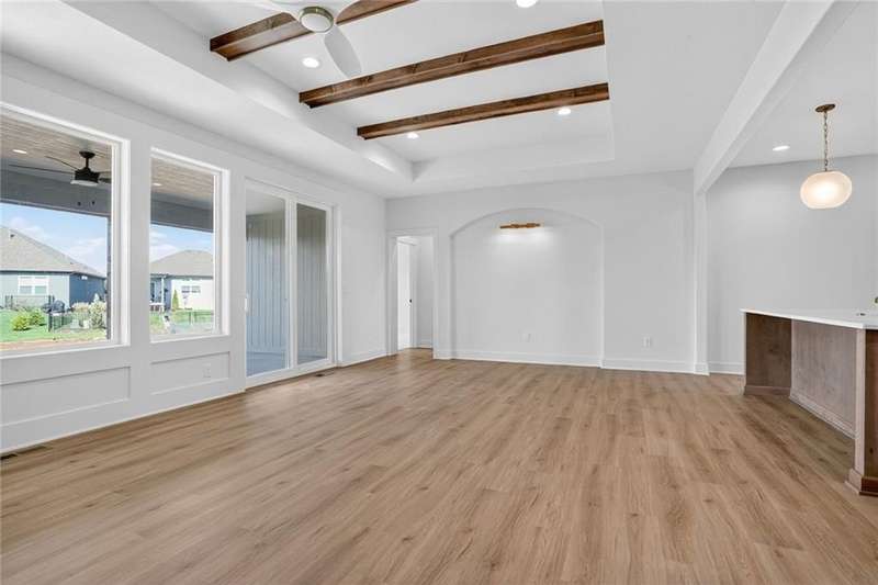 The Homestead Ranch by Blue Dot Design | Lot 72 | Enclave at Boulder Hills 1,770 Sq Ft | 3 Bed | 2 Bath | READY NOW! Introducing the Homestead — a beautifully designed, actual ranch plan by Blue Dot Design + Build, offering main-level living at its finest! Situated on Lot 72 in the sought-after Boulder Hills community, this home features three bedrooms, two full baths, and 1,770 sq ft of thoughtfully crafted space — ready for move-in. The spacious front bedroom is filled with natural light and shares a full bath with a secondary bedroom, which is ideal for guests or a home office. The custom kitchen showcases upgraded quartz countertops and backsplash, a plaster hood, a gas cooktop, an oversized island, and abundant cabinet storage. A full walk-in pantry and nearby boot bench add both style and function. The great room is a showstopper with four ceiling beams, a wall of windows, and a gas fireplace flanked by floating shelves, gorgeous lighting, and sconces — the perfect place to relax or entertain. The primary suite features a striking accent wall, Persian white quartz dual vanities, and a walk-in closet that conveniently connects to the laundry room. Enjoy outdoor living on one of the most enormous covered patios. The spacious unfinished basement is stubbed for a bath and ready for future customization. Community Amenities: Maintenance-provided lifestyle – $198/month for lawn care, irrigation service, and snow removal $900/year HOA includes a resort-style pool, outdoor kitchen, playground, pickleball court, walking trails, and a beautiful community center. Discover the comfort and convenience of main-level living in Boulder Hills — schedule your tour today!