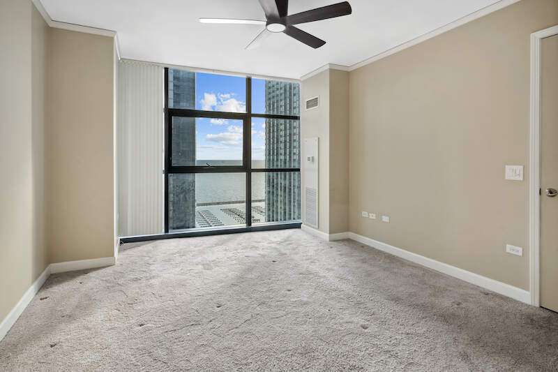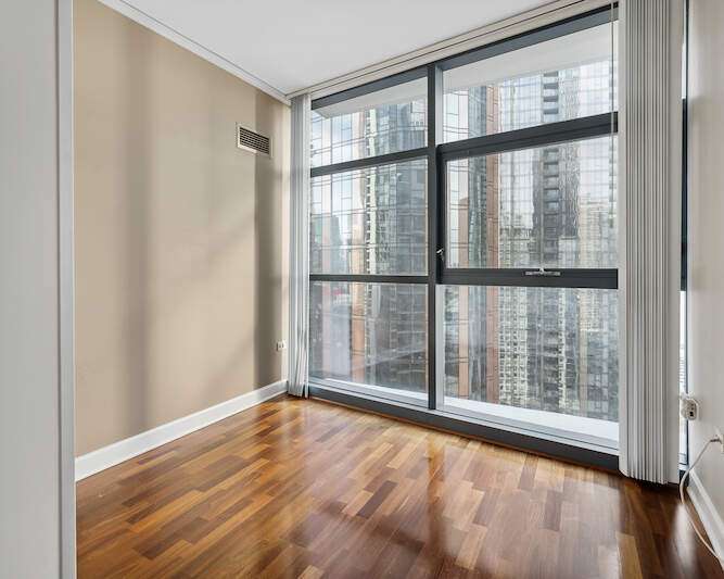 This highly sought after 2 Bed/1.5 baths layout features in-unit washer/dryer with sound proof padding in the laundry closet, floor to ceiling windows throughout, wood flooring in the living areas, upgraded kitchen with granite countertops & stainless steel appliances, upgraded lighting, and a private balcony. The building boasts a state of the art fitness center, 24 hour door staff, party room, & one of the best rooftop decks in the city! The Lancaster features direct access to the Park at Lakeshore East & just within steps from dog parks, Mariano's, GEMS World Academy, Maggie Daley & Millennium Park, lakefront, river walk, Navy Pier, Michigan Ave, shopping/restaurants, Pedway, transportation, and much more! Brand new urban botanic park and waterfall across from the building.Additional storage built-in included in second bedroom. One months security deposit. Parking space #225 available for $200