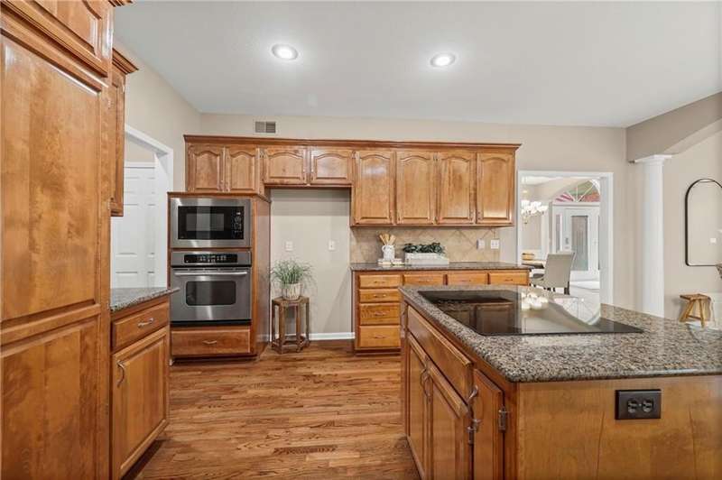 Multiple offers…Well cared for ONE OWNER HOME with new carpet, newer roof, updated HVAC and sellers added an oversized deck, vinyl fence, heated and cooled sunroom and mature landscaping. New full bath in the lower level, expand your square footage by finishing the full basement. South facing garage features a 4th car tandem garage perfect for all sorts of extra hobby's boat, motorcycles, shop, etc. Open concept great room and island kitchen with a very spacious walk-in pantry. Primary suite features two walk in closets, separate corner tub and shower, spacious laundry room on the bedroom level. Neighborhood features mature trees, highly rated Blue Springs Schools, lower Independence taxes and utilities, gated swimming pool. Move in ready home with so many extras!! Priced to sell...