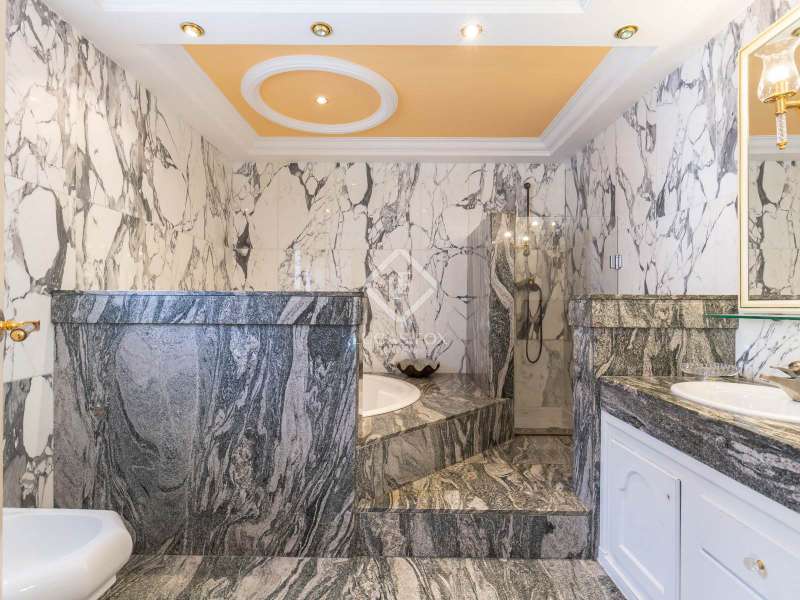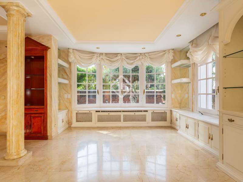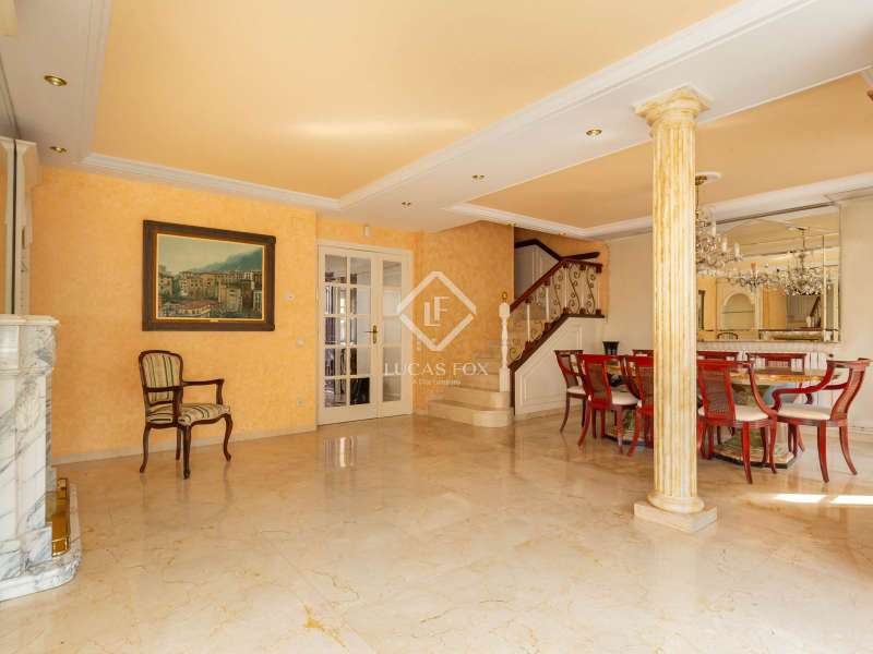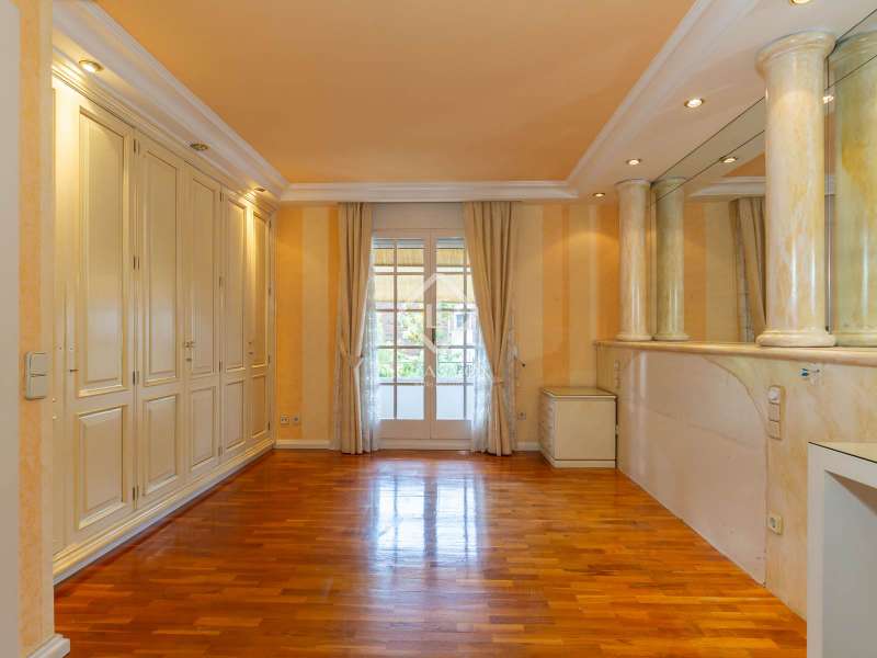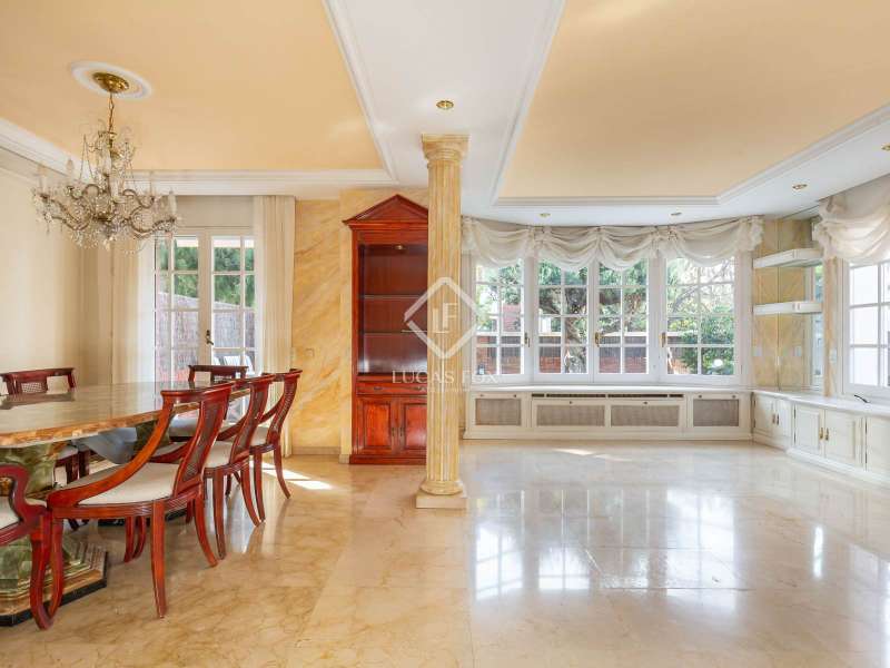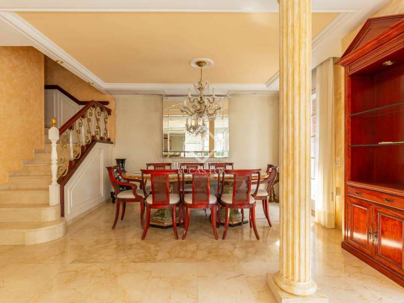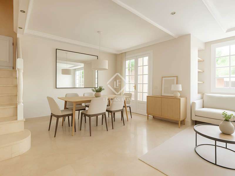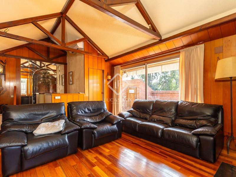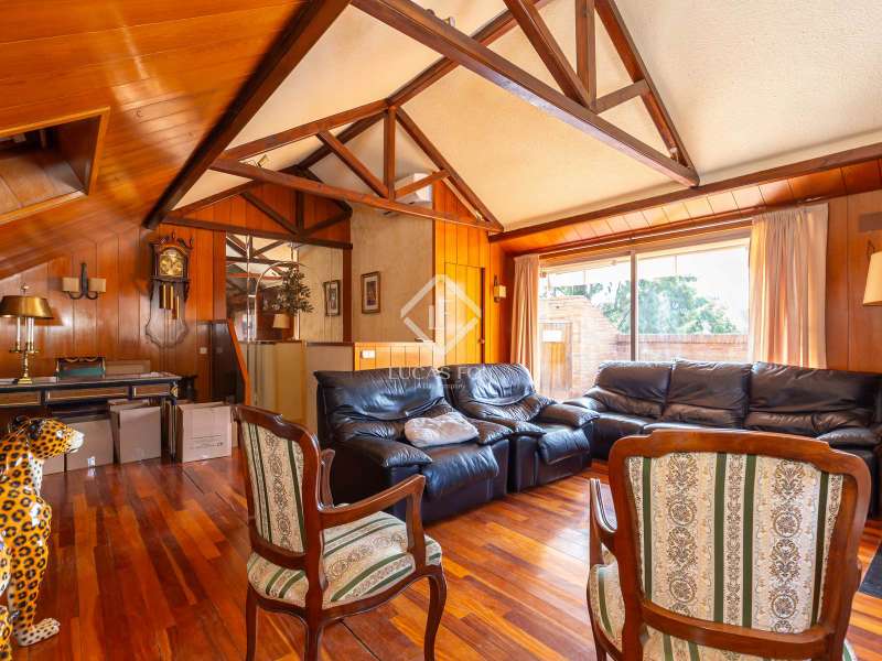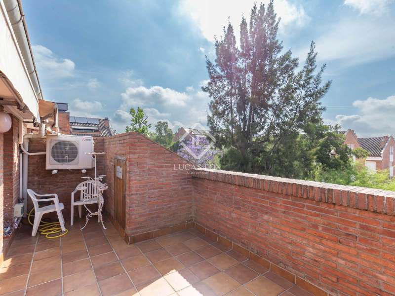 Exceptional semi-detached brick corner house in a development built in 1987 with 24-hour security throughout the year. The bright and peaceful rooms are all exterior and offer excellent orientation. It also offers exclusive amenities such as a private club with a communal garden , a pool, and a children's play area, a gym equipped with machines, changing rooms, restrooms, a service for classes and summer camps, a pelota court, and tennis and paddle tennis courts. The house is accessed on level ground through the rear paved garden , and the main door is under a small porch. The entrance hall , overlooking the living room, leads to a single bedroom , ideal for a guest bedroom or study. A guest toilet serves the day area. The square kitchen is very functional, with a breakfast area and floor-to- exterior windows. The spacious dining room living room with decorative columns has panoramic views over the garden to the south and west, as well as a level access to the south-facing garden with trees. The living room has a built-in wardrobe and a fireplace. On the first floor , we find the night area with a double bedroom en suite equipped with built-in wardrobes, access to a 1 m2 south-facing balcony, and a full bathroom with a round bathtub, shower, bidet, and double sinks. A south-facing double bedroom with a built-in wardrobe . A corridor with two closets. A full bathroom with a shower, bidet, and closets completes the floor. A third double bedroom with a built-in wardrobe and a 1 m2 northeast-facing balcony completes the floor . A fifth double bedroom could be located in the floor . This multipurpose space features wardrobes or mobile shelves, a living room with a fireplace , a storage room wardrobe , a laundry room (a bathroom could be added), and access to a 14m2 terrace with under-roof storage. The floor features a games room with a billiards table, a sofa area with a wet bar, and a potential home cinema. Adjacent to the room is a wine cellar with wine storage. In the hall, under the stairs, there is a large wardrobe and access to the private garage for 2-3 cars. The property has radiator heating, split air conditioning (cooling only) in the kitchen and hot-cold air conditioning in the attic. Aluminum windows with double-glazed windows. Motorized blinds on the French windows in the dining room living room . Marble floors in the day area and solid oak parquet in the bedrooms, and stoneware in the kitchen and bathrooms. There is also a marble en-suite bathroom . Alarm system. A house with spacious terraces and a garden, ideal for families, with a communal area with a garden and pool, and two parking spaces in one of the best neighborhoods in Esplugues de Llobregat. Contact us to visit this luxury property.