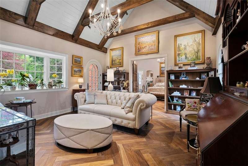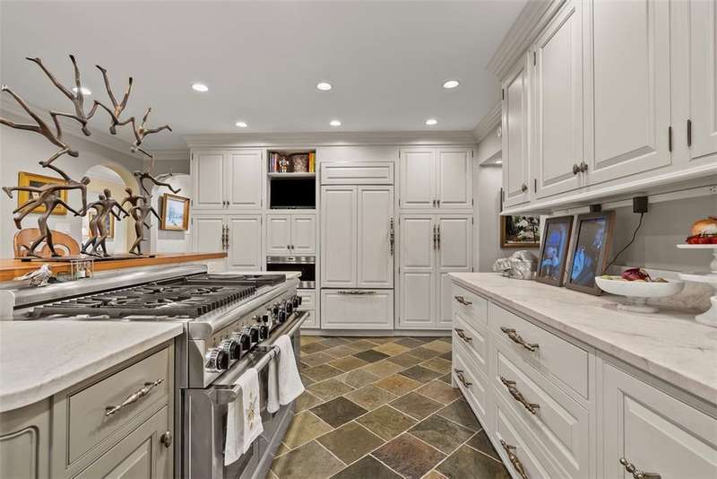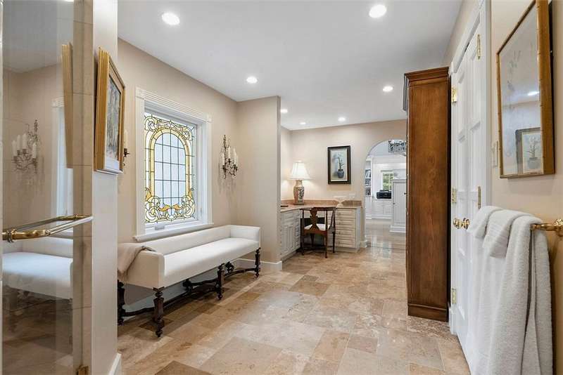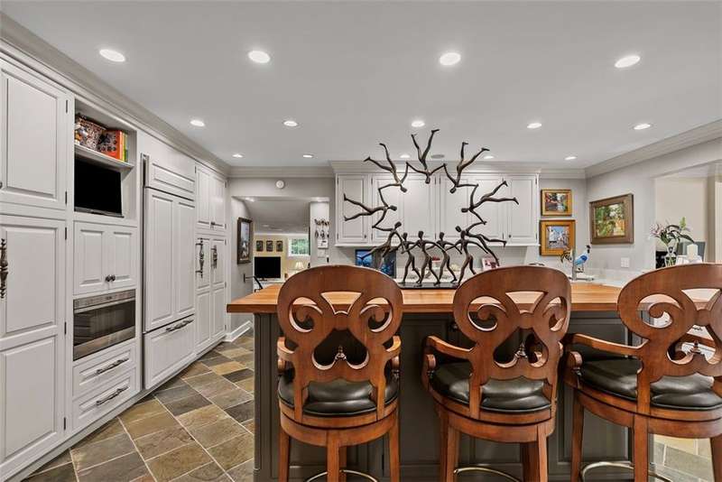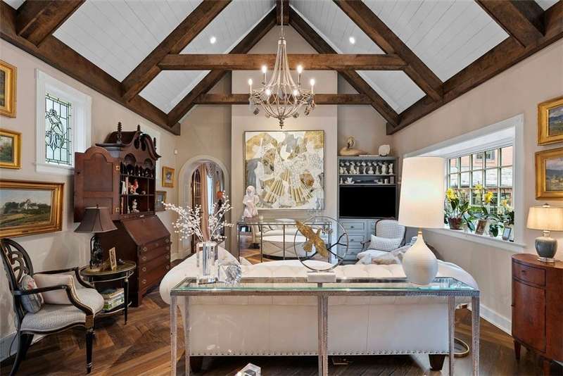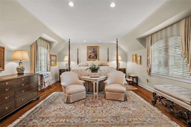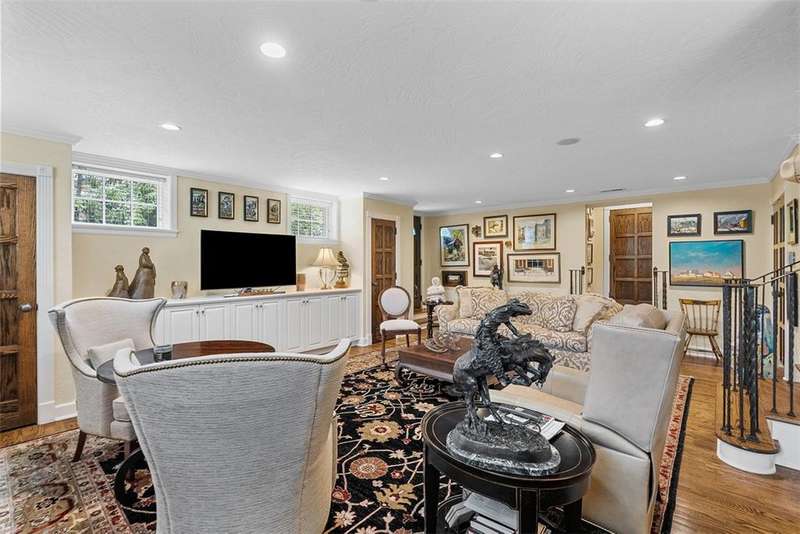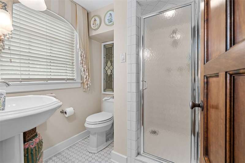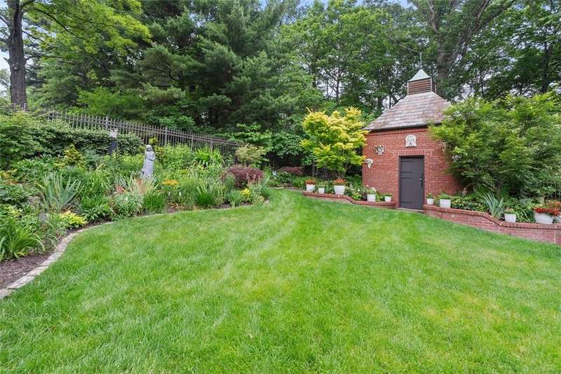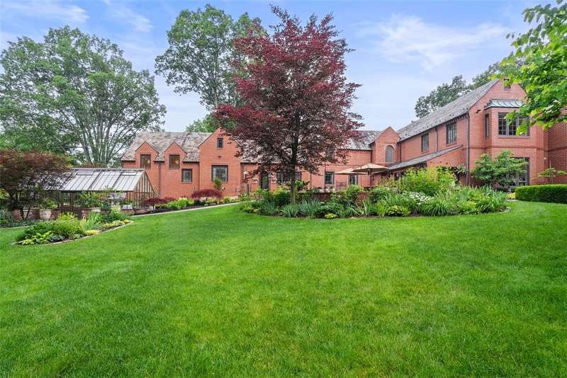 An extraordinary offering in Upper St. Clair, this English Manor Tudor estate pairs timeless architecture with refined modern living. Privately set on nearly an acre beside historic Gilfillan Farm, the 4+ bed, 3.5 bath home exudes quiet sophistication. Rich in character and craftsmanship, it features artisan millwork, stained glass windows, arched doorways, and a graceful layout ideal for both everyday living and elegant entertaining. A chef's kitchen with Subzero/Thermador appliances and walnut and quartzite counters, first-floor owner's suite with den and custom closets, and an elevator enhance comfort and convenience. Professionally designed gardens envelop the home with year-round beauty, offering serene outdoor spaces and a rare sense of privacy. Just minutes from schools, parks, and amenities, this is a rare opportunity to own a legacy property where heritage, design, and natural beauty converge in perfect harmony. A truly distinguished home for the discerning buyer.