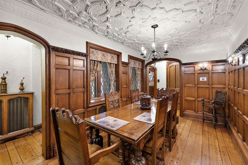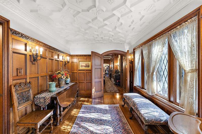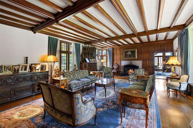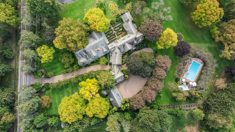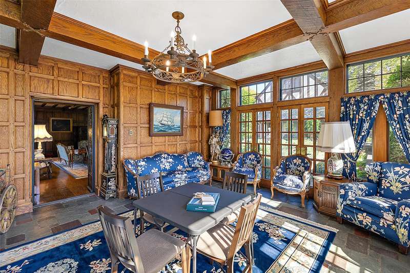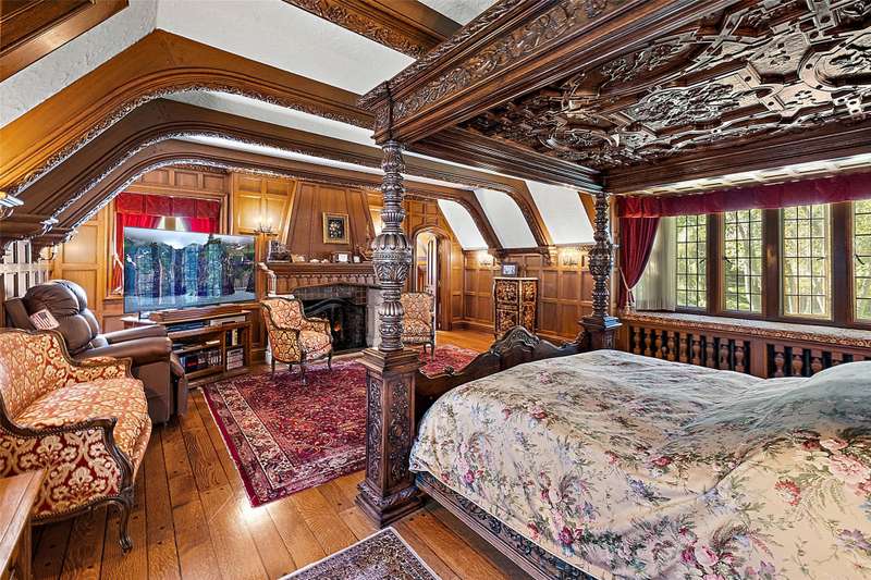 There are homes that impress, and then there are estates that transcend time. Inspired by the regal architecture of Europe’s grandest castles, this extraordinary Bloomfield Hills estate offers a rare fusion of history, artistry, and unmatched privacy on over eight breathtaking acres. This one-of-a-kind residence offers unrivaled seclusion, elegance, and architectural splendor. Surrounded by mature trees, manicured gardens, and expansive green lawns, the property evokes the tranquility of a private sanctuary. From the moment you arrive, the home’s old-world craftsmanship is on full display, featuring intricate millwork, hand-carved wood details, ornate plaster ceilings, and rich finishes that reflect a bygone era of artistry and refinement. A grand foyer welcomes you into expansive formal spaces designed for elegant entertaining, including a stately library, formal dining and living rooms, and a magnificent ballroom reminiscent of classic European estates. Among the estate’s most captivating features is the bar area, adorned with original tile imported from Napoleon Bonaparte’s carriage house in France, an extraordinary historical detail rarely found in private homes. Outdoors, the estate continues to impress. Rolling lawns, wooded enclaves, and a sparkling swimming pool provide an exceptional backdrop for outdoor living. A private tennis court and guest house is also located on the grounds. This is more than just a home. It's a legacy property of rare distinction. With timeless beauty, ultimate privacy, and proximity to the best of Bloomfield Hills, this estate offers a lifestyle reserved for the truly discerning.