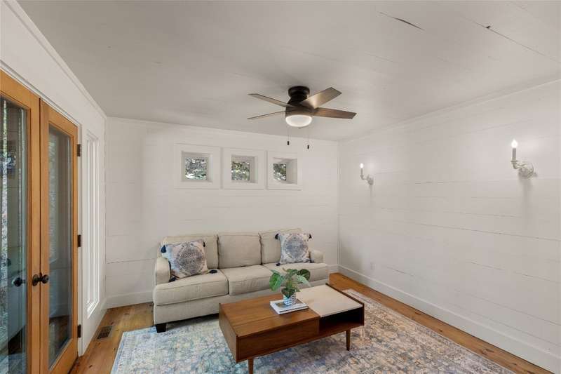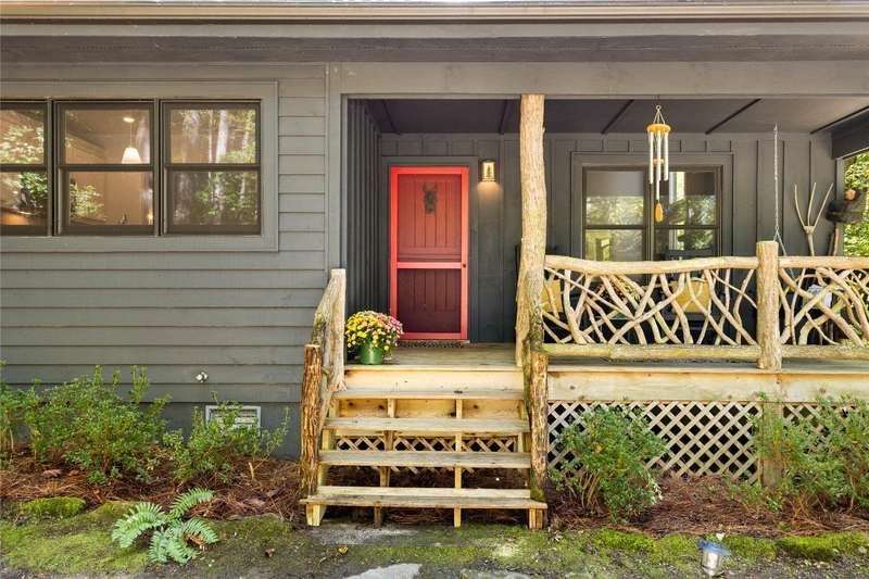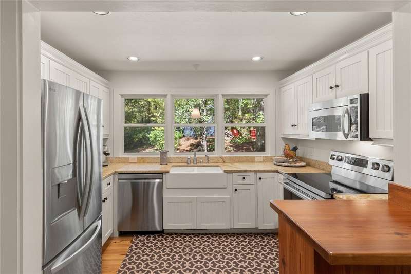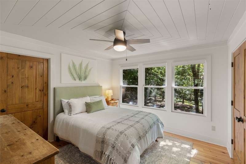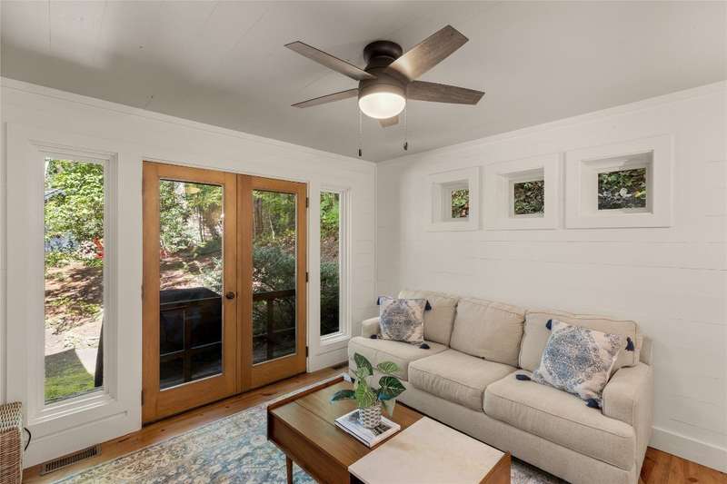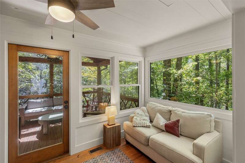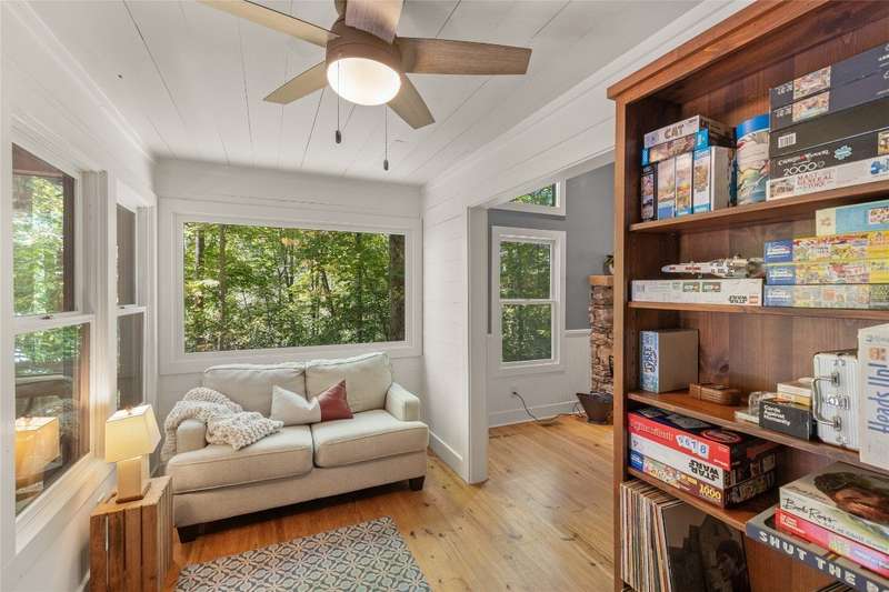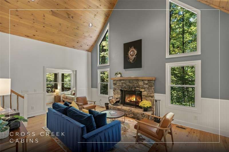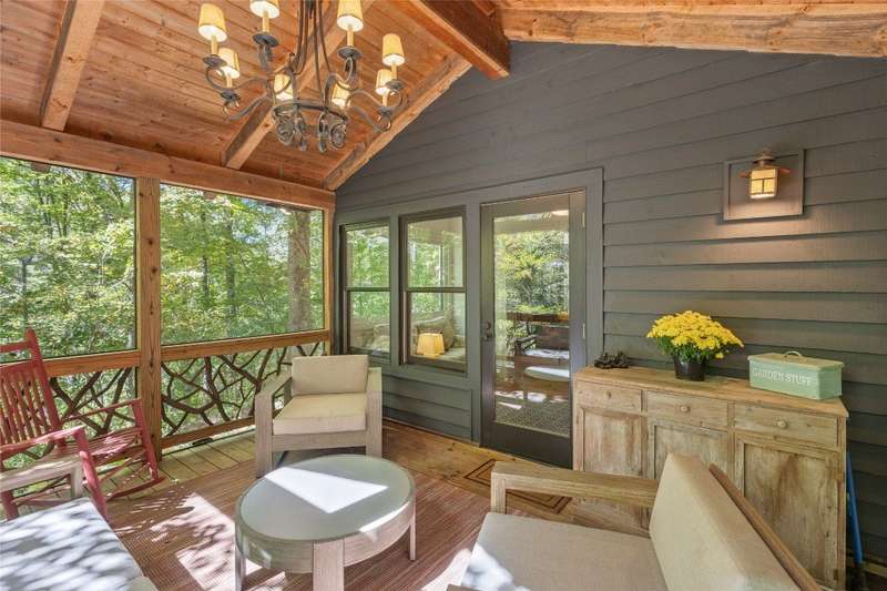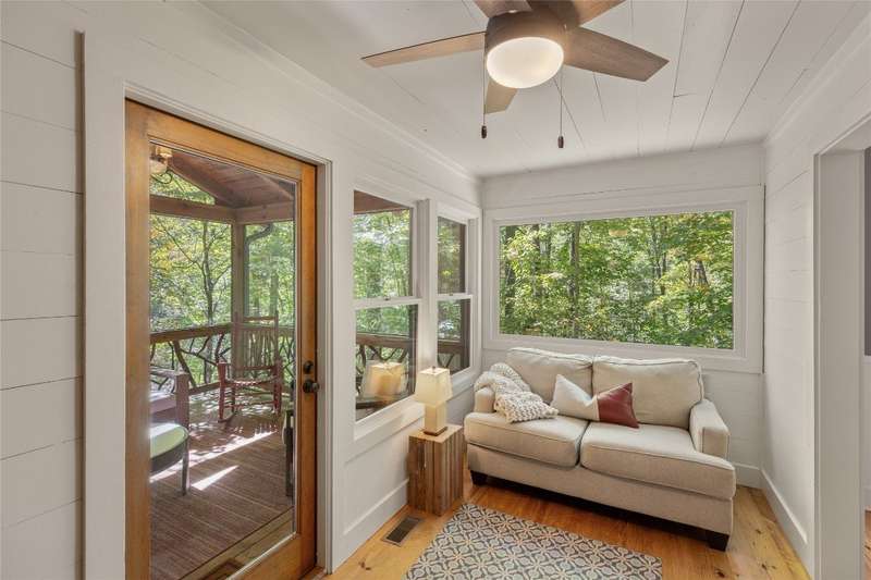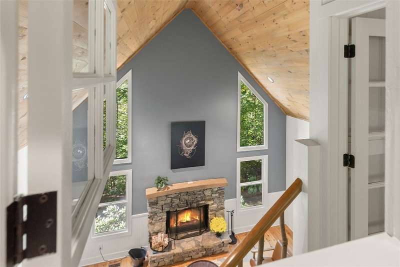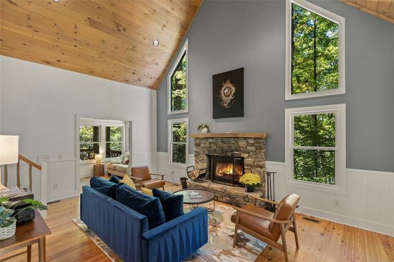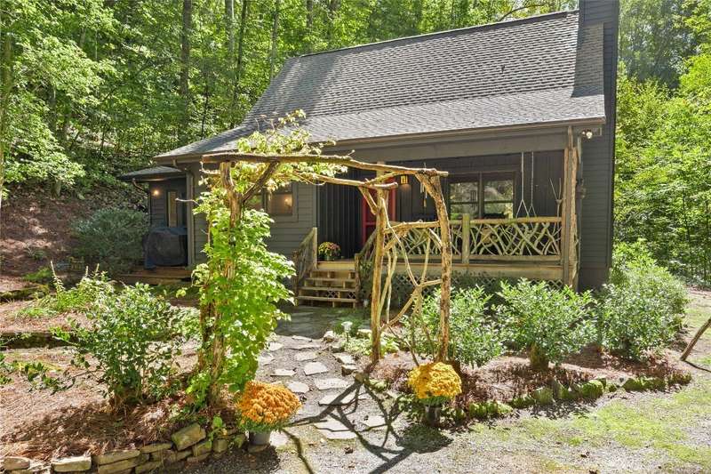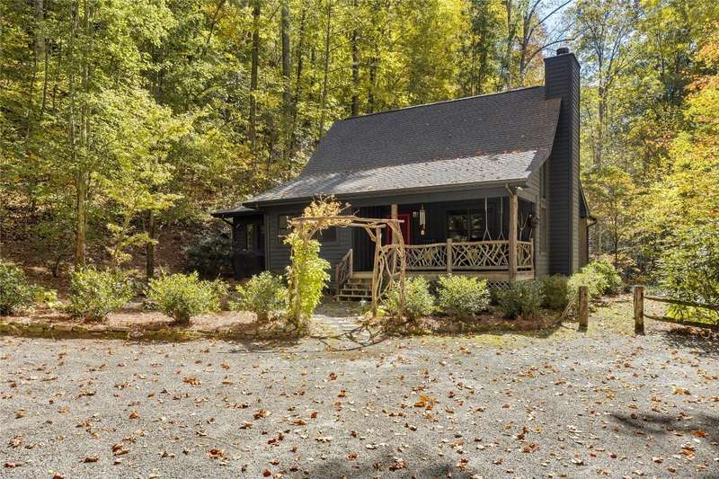 Welcome to Bluebird Cottage, an enchanting two-bedroom, two-bathroom designer's retreat. Discover timeless charm and the serenity of the mountains, ideally located just minutes from Lake Glenville and the vibrant village of Cashiers. Thoughtfully updated in 2024-2025, this move-in-ready, partially furnished haven features freshly painted interiors and exterior, new hardwood floors in the main-level bedrooms, two completely renovated bathrooms with spa-inspired finishes, a new stainless steel refrigerator, range, and dishwasher, Starlink internet, a radon removal system, new ceiling fans, and a chimney professionally serviced and maintained for optimal performance. Freshly updated landscaping enhances the lush, mature gardens and creates an idyllic backdrop for outdoor living. Step through a quaint trellis courtyard to the rustic front porch, then inside through a charming Dutch door into a light-filled interior with soaring cathedral ceilings, a striking stone fireplace, and abundant windows that showcase the natural beauty outside. The kitchen offers a farmhouse sink and stylish cabinetry, while the main-level primary suite, dining space, den, sitting, and bonus room ensure convenience, with the second bedroom and bath upstairs for added privacy. A screened porch, Adirondack-ringed firepit, terraced gardens, and a partially fenced yard offer endless opportunities for outdoor enjoyment. Just 15 minutes to the Cashiers Crossroads, and convenient to the town of Highlands, the Tuckasegee River, Franklin, Sylva, and beyond, Bluebird Cottage is meticulously maintained, beautifully furnished, and ready for immediate enjoyment. Embrace the magic of the season - whether it's the brilliant fall leaf colors or the festive spirit of Cashiers during the holidays. A truly rare offering, this serene and thoughtfully curated cottage invites you to slow down, savor the moment, and experience the simple joys of mountain living.