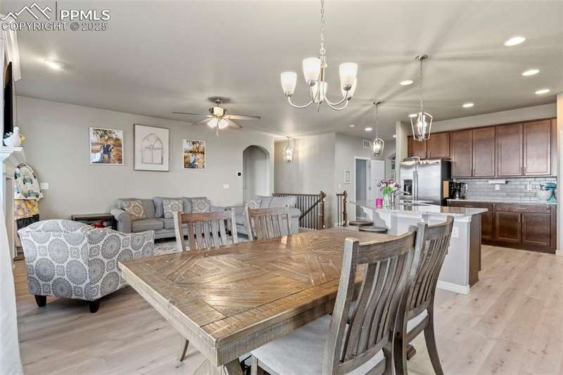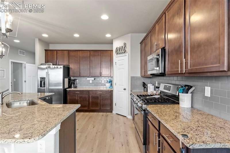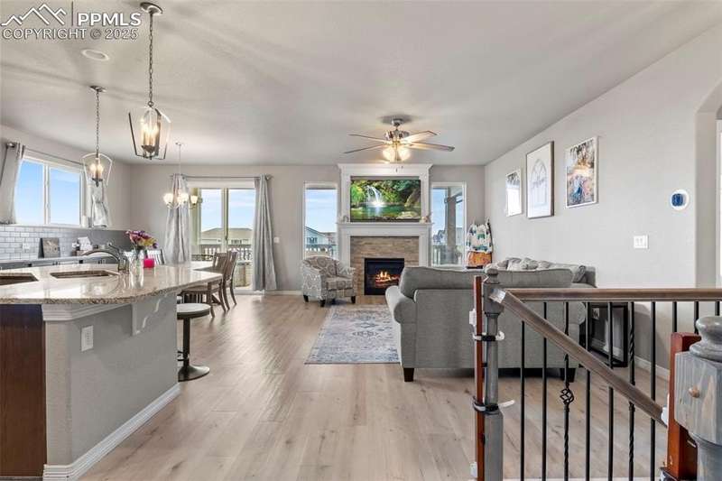 “Design is not just what it looks like and feels like. Design is how it works.” – Steve Jobs. This 5-bedroom, 3-bathroom ranch-style home offers 3,266 square feet of beautifully designed living space, crafted for the way people actually live. From the moment you step inside, there’s a sense of calm and clarity. Natural light pours through large south-facing windows, casting a warm glow across the open floorplan. The fireplace is perfectly framed by twin windows, creating a focal point that feels as intentional as it is inviting. The kitchen is designed to inspire. Custom cabinetry stretches wall-to-wall, offering not just storage but a sense of ease and flow. The primary suite is your personal sanctuary. With a spacious five-piece bath and designer upgrades throughout. Downstairs, the walkout basement offers three generously sized bedrooms and flexible space for entertaining, relaxing, or creating whatever kind of life you imagine here. Step outside, and it just gets better. The backyard is private, open, and beautifully functional. With no back neighbors, durable turf, and a fire pit ready for starlit conversations, it’s a space designed for both quiet moments and lively gatherings. This isn’t just a neighborhood, it’s a lifestyle. Here, you’ll have access to a 42,000-square-foot recreation center, complete with indoor and outdoor pools, fitness classes, and community events. The 24 miles of trails, multiple parks, and the award-winning Antler Creek Golf Course invite you to connect with nature and neighbors alike. Families benefit from top-rated schools in District 49, while nearby shops and restaurants make everyday errands feel effortless. It’s all right here—just minutes from your door, but miles from ordinary. This home is a masterclass in thoughtful living. One that blends beauty with function, design with purpose, and comfort with a quiet kind of luxury that stays with you long after you leave.