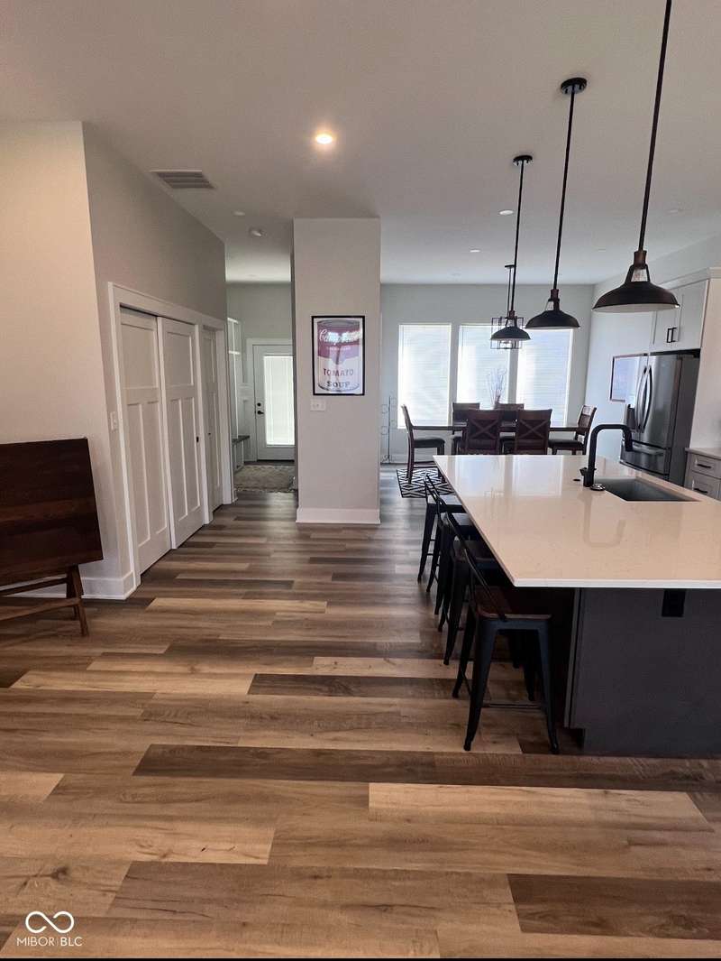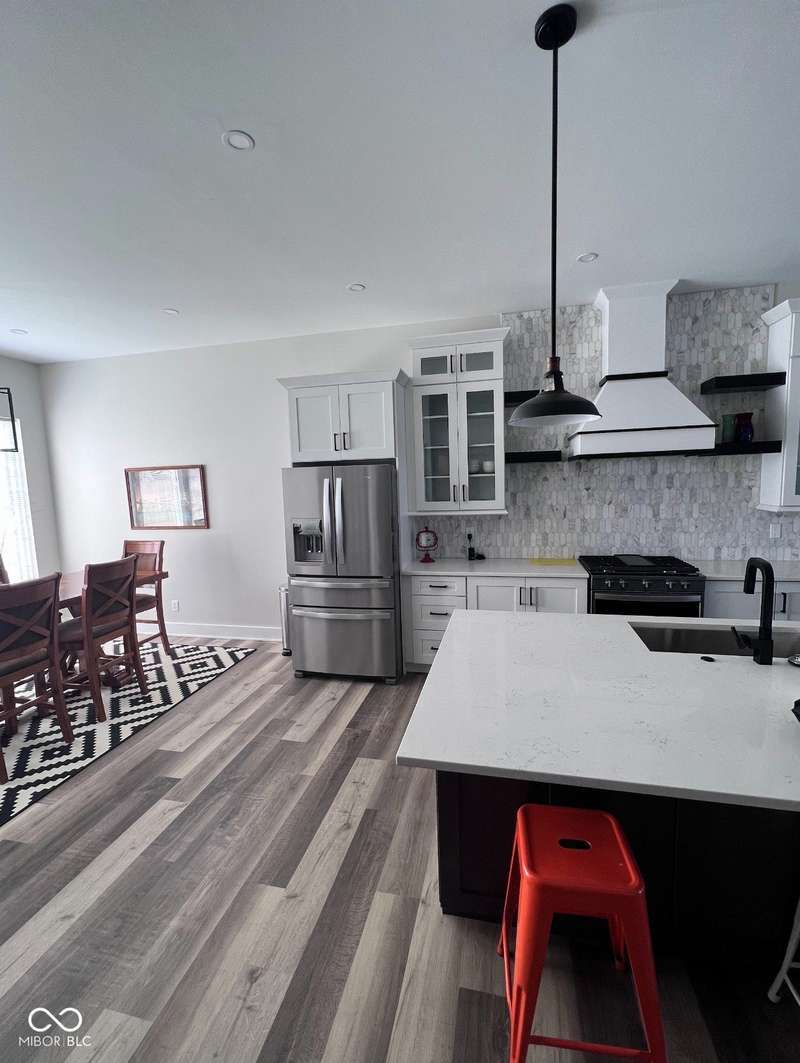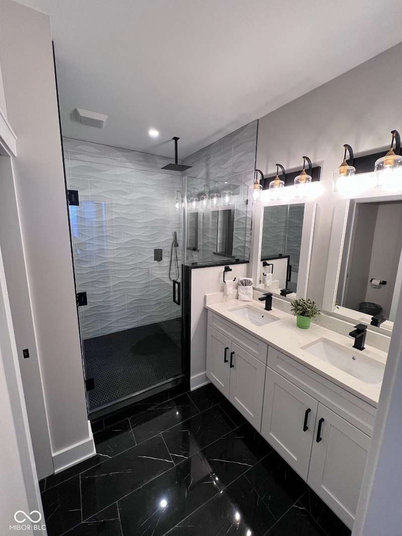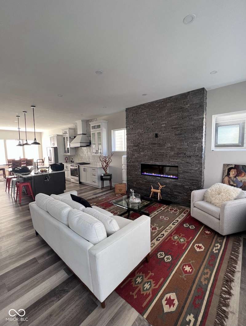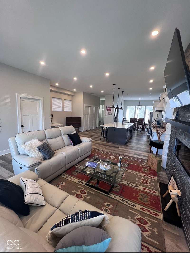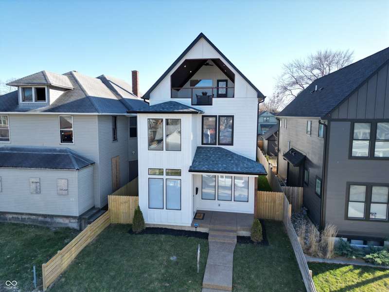This beautifully crafted 2.5-story home offers 4 spacious bedrooms, 3.5 bathrooms, and a 2-car garage with an unfinished upper level-ready for your personal touch. Step inside to an expansive open-concept living area that flows seamlessly into a chef's dream kitchen. Featuring a designer backsplash, premium gas range, and a large center island topped with quartz countertops, this kitchen is truly the heart of the home. The second floor includes a generous secondary living space and three well-appointed bedrooms. The primary suite is a true retreat, complete with a luxurious oversized shower, dual vanities, and a walk-in closet. Head up to the third level to discover a fourth bedroom, an additional living area with a wet bar, and a large covered balcony offering gorgeous views-perfect for entertaining or relaxing. Carriage house has all the studs up, has water and sewer hookups available, just needs finished how you want it ! This home is a must-see!