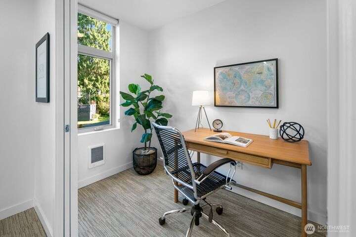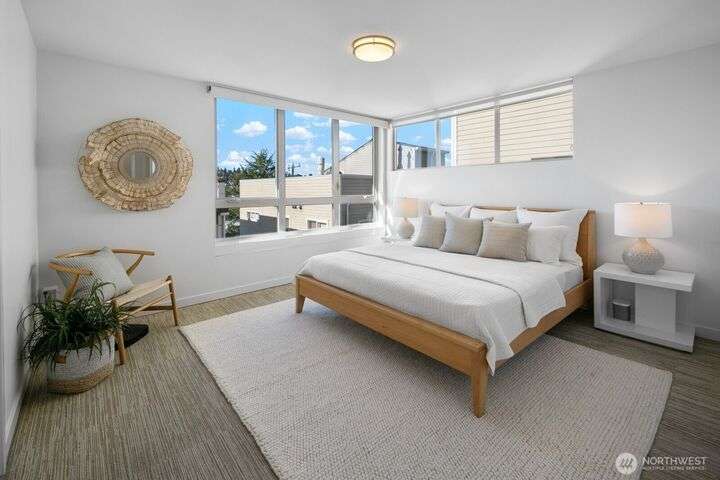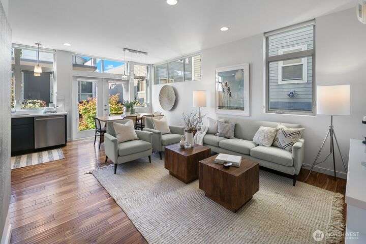 Tucked on a quiet, tree-lined street, this 3BD/2.5BA townhome offers sunny SW exposure with Sound, city, and mountain views. Enjoy watching cruise ships sail in from your bright, open kitchen with chef-inspired appliances, flowing seamlessly to the living room and patio for indoor–outdoor living. The rooftop deck is perfect for BBQs and sunsets. The window-wrapped primary suite with ensuite bath and den occupies the top floor, while two lower-level bedrooms provide flexibility for guests, office, or gym. Abundant street parking and quick access to Whole Foods, Interbay Golf, Queen Anne, Ballard, and downtown. A must see!