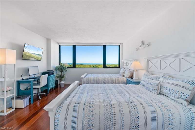 Discover refined coastal elegance at The Stratford in Pelican Bay, one of Naples most sought-after high-rise communities. This sophisticated 6th-floor residence offers over 2,000 square feet of meticulously designed space featuring an open, light-filled layout ideal for effortless entertaining and everyday comfort. From the back door of The Stratford, residents can directly access Pelican Bay s exclusive South Beach tram station, providing convenient transportation to the private beach and beachfront dining facilities. Expansive windows frame sweeping Gulf views and spectacular sunsets from the main living areas and both bedrooms, creating an atmosphere of serenity and natural warmth. The kitchen showcases custom cabinetry, luxurious countertops, and high-end appliances, perfect for casual dining or inspired culinary creations - while the primary suite offers a peaceful retreat with a large walk-in closet and a spa-like walk-in shower. The guest suite also features its own walk-in clo
