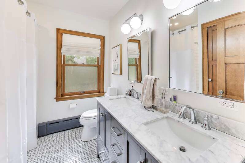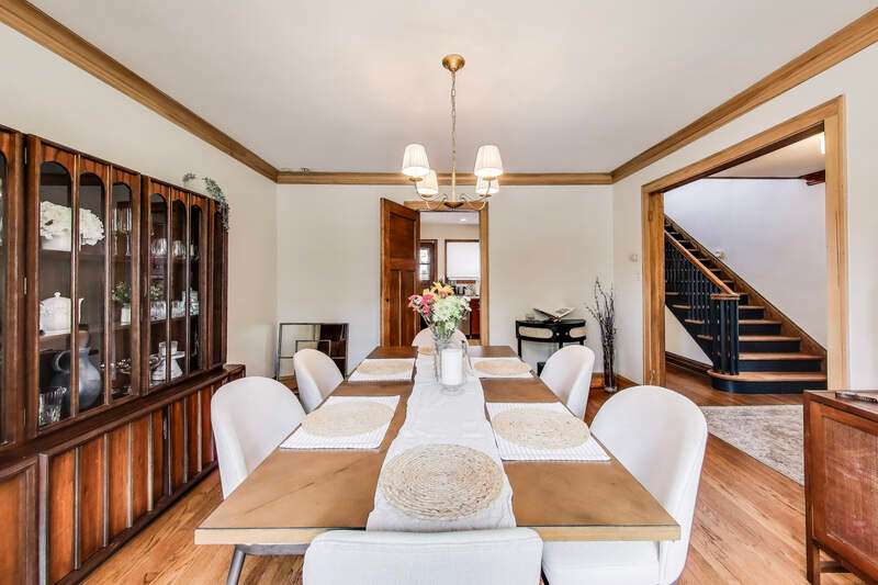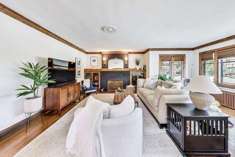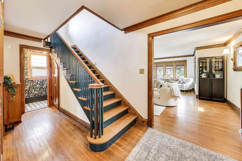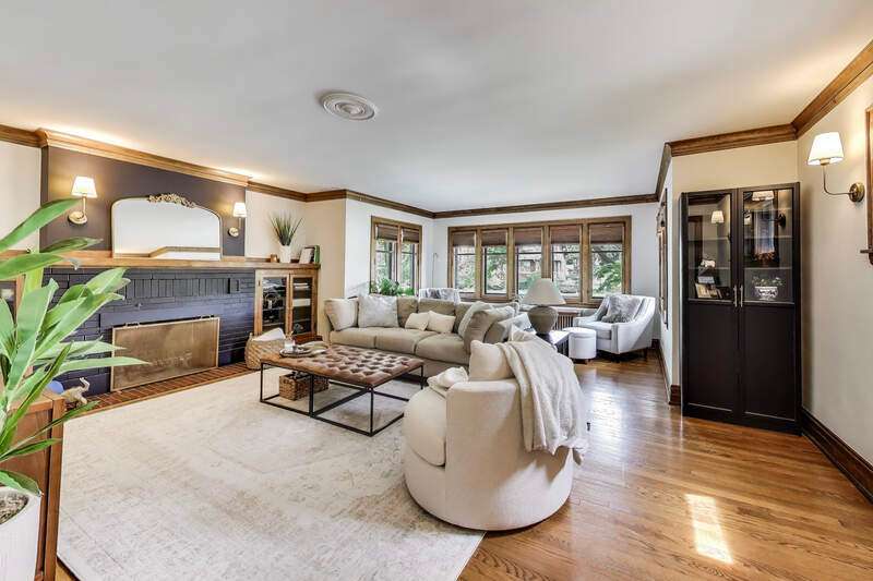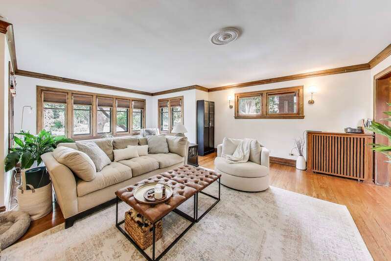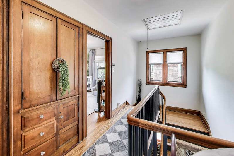 This charming brick home, influenced by Craftsman style, is nestled in the heart of NW Oak Park. Featuring pristine oak floors, exquisite custom corner banding, and modern amenities, this home combines timeless character with contemporary convenience. Upon entering through the double doors, you're welcomed into a grand central foyer that leads to a spacious living room with room for multiple seating areas. This inviting space also highlights the home's original custom trim carpentry and boasts a striking brick wood-burning fireplace, flanked by built-in book shelves. The formal dining room is perfect for hosting gatherings. The kitchen offers generous solid surface countertops, custom inset cabinetry w/ exposed hinges, and updated appliances. Be sure to check out the cozy breakfast room! Upstairs, you'll find all three bedrooms, including a generously sized primary suite with two expansive closets that span the entire width of the wall. This floor also features a beautifully renovated main bathroom with a marble double sink vanity. Looking for more space? The lower level offers a fantastic rec room, large storage rooms, a spacious laundry area, a dedicated home office, and a convenient bath. Step outside to the lush backyard, complete with a paver patio ideal for entertaining. Additionally, this home boasts a rare attached two-car garage. Located within walking distance to top-rated schools, Lindberg Park, public transportation, and more, this home is truly a must-see!