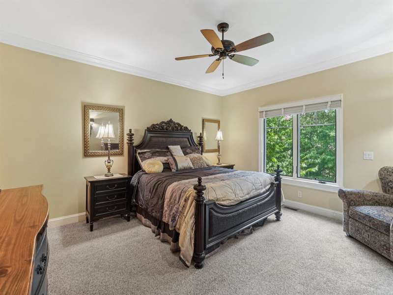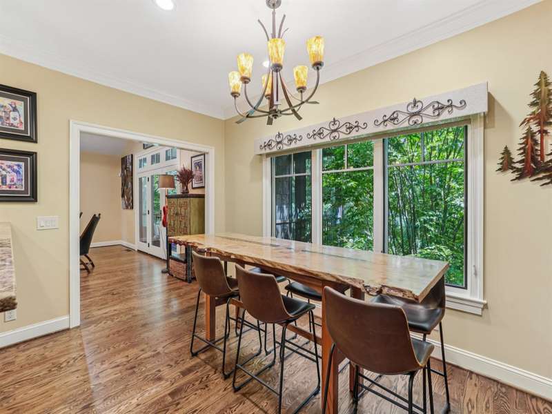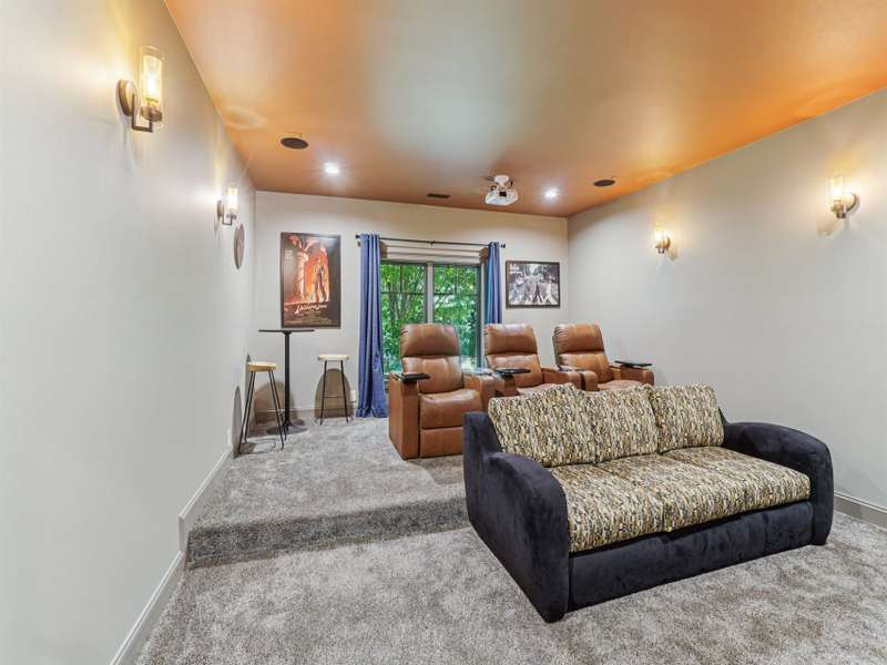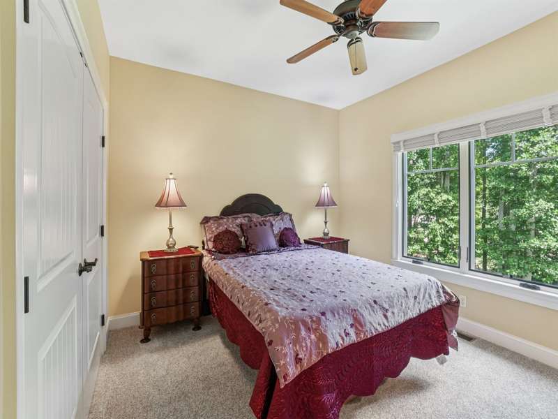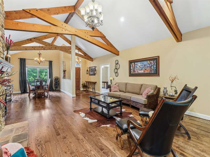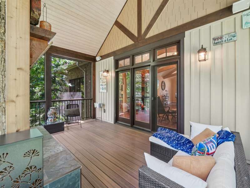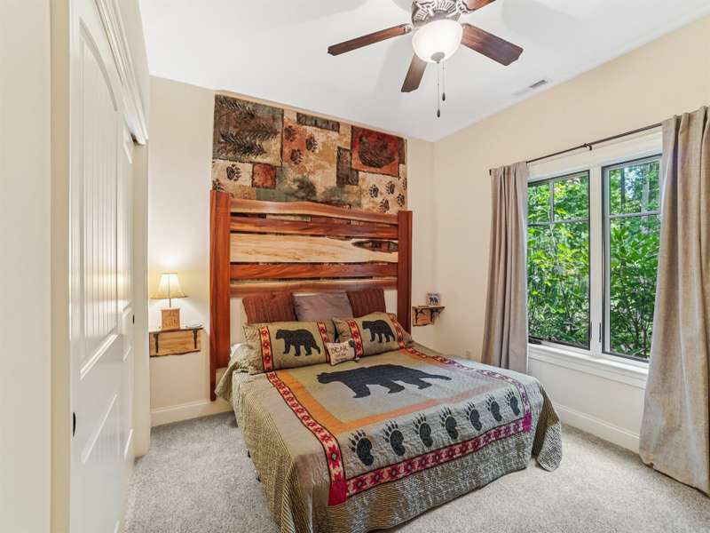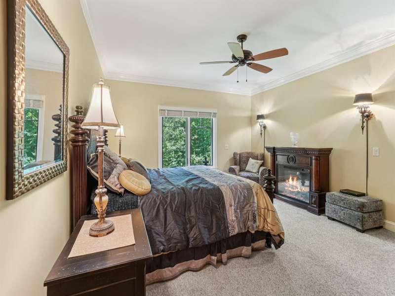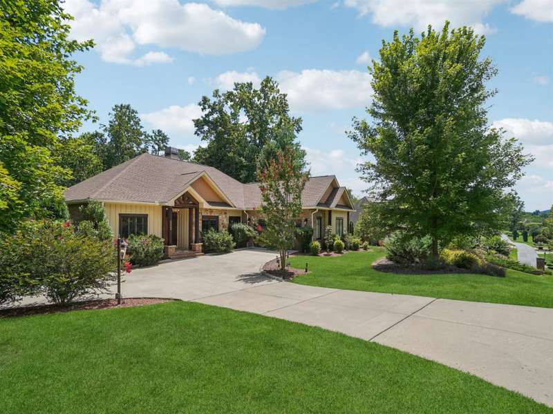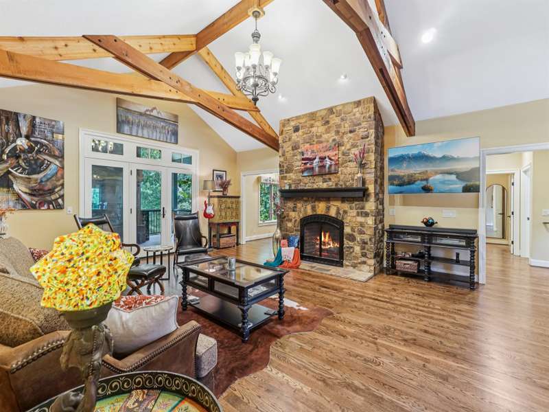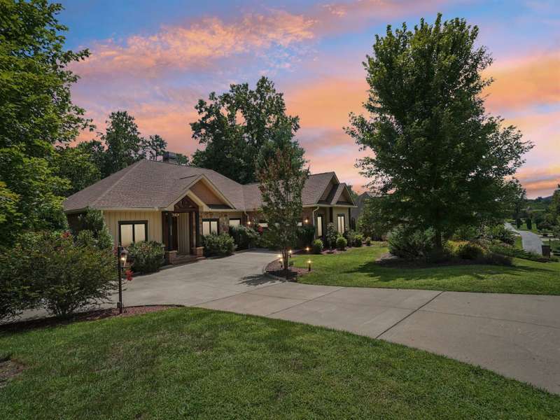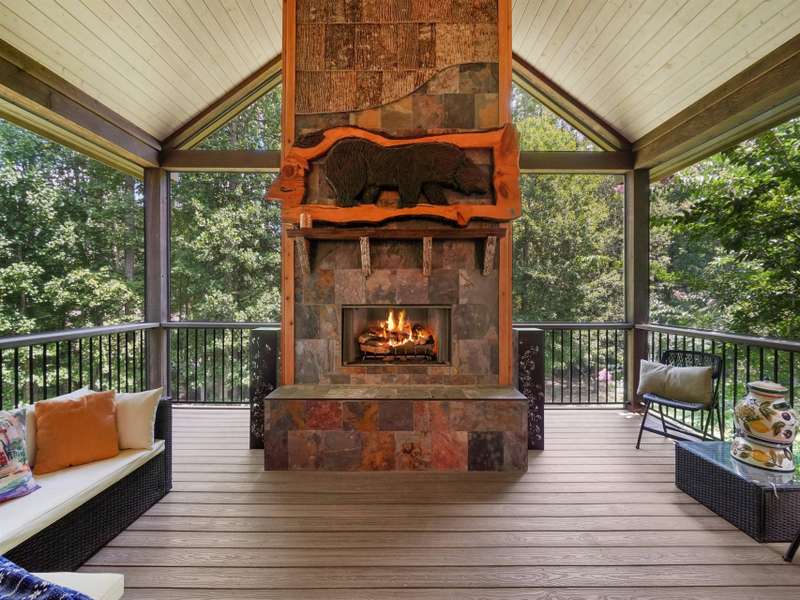 Welcome to luxury mountain living in this custom-built home on a spacious cul-de-sac. Nestled in the gated neighborhood of Ridgeview, enjoy the tranquility and privacy of a community with minimal traffic, breathtaking mountain views, and gorgeous sunsets. Beamed vaulted ceiling in the living and dining rooms with a gas fireplace. Outdoor living is a delight on the screened vaulted porch with a fireplace, wooded view, and a gas fireplace. The kitchen has abundant quartz counters, SS Bosch appliances, and a breakfast bar. The main level hosts the primary bedroom with a walk-in closet and an ensuite bath, and a split bedroom plan for privacy. The lower level is an entertainer's dream, featuring a gameroom that leads out to a covered patio and a home theatre with surround sound. Bedroom 4 is a guest retreat. A big cedar closet and two unfinished areas can accommodate a workshop, home gym, and more. Enjoy the neighborhood park with river with access. Fiber Optic Internet is available.