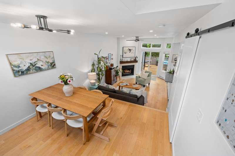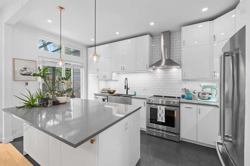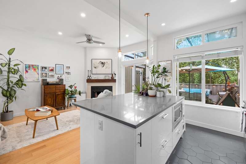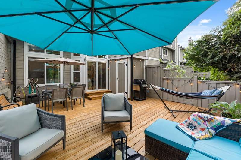 Welcome to Moorpark – a family-friendly community steps to Everett Crowley Park & River District. This bright 1322 sqft 2-level townhome offers 3 beds & 2 full baths, a rare find here. Extensively updated with a modern open kitchen, spa-style bathrooms, new windows/roof, and engineered hardwood throughout. The south-facing 448 sqft deck and yard are perfect for entertaining or gardening. Includes 2-car carport plus storage sheds. Loved for its neighbourly spirit with kids, pets & community events — Moorpark is a true hidden gem. City of Vancouver prepaid lease to 2079. This one is special! Call to book your private appointment.