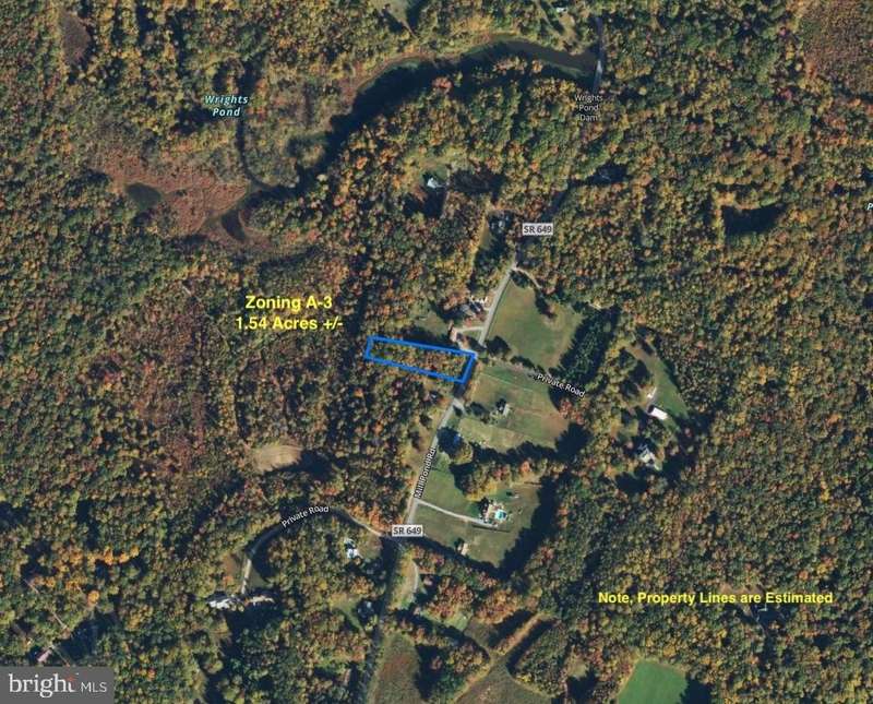 1.53 Acre +/- Residential Building Lot in Spotsylvania (Spotsylvania County) *A3 Zoning (Agricultural) *Paved State Maintained Roads *Electric Available *Approximately 138 feet of Road Frontage *No Percolation Tests or Septic Reports Available *Lot Dimensions are estimated via GIS *House setback requirements - 30 ft from front property line, 10 feet from both side lines, and 35 feet from rear property line *Many uses allowed by right with this zoning such as recreation, residential and many more (Documents and Online Resources Available) *4 Minutes (3 miles) to Oakley Forest Wildlife Management Area (Wildlife Refuge) containing 4,459 Acres for hiking, camping, wildlife viewing and hunting *20 Minutes to Route 3 (Plank Road Shopping *25 minutes to Central Park Shopping Center *30 Minute Drive to Downtown Fredericksburg *Information is considered reliable but not guaranteed, all information to be verified by prospective purchasers. *Bring Your Builder or Ask for Recommendations. *Ready for your vision and enjoyment.