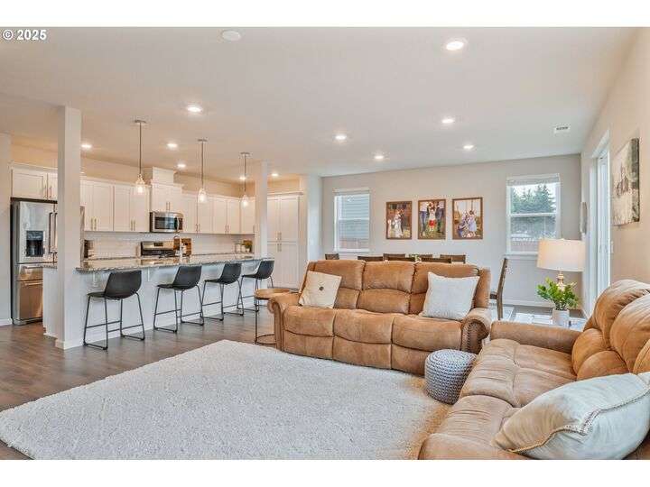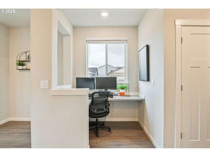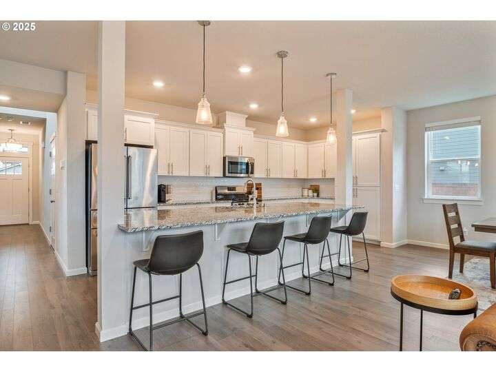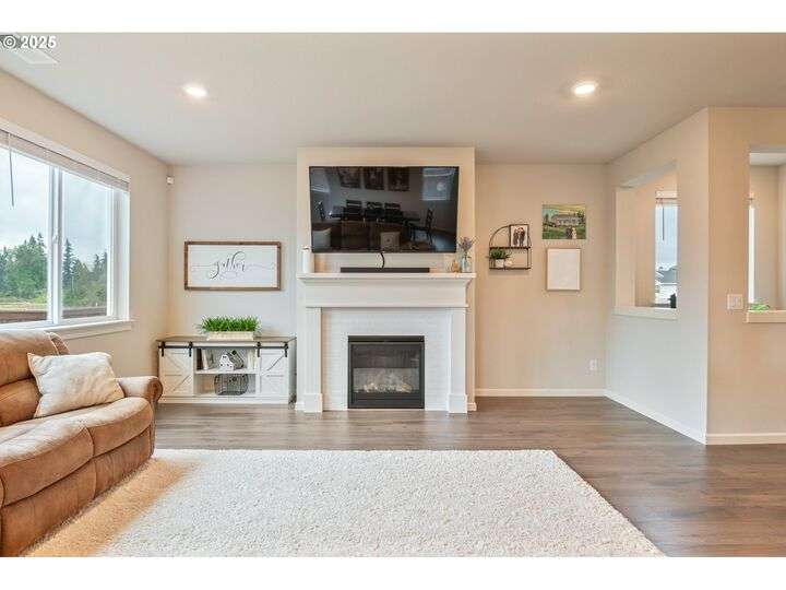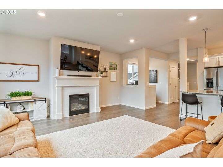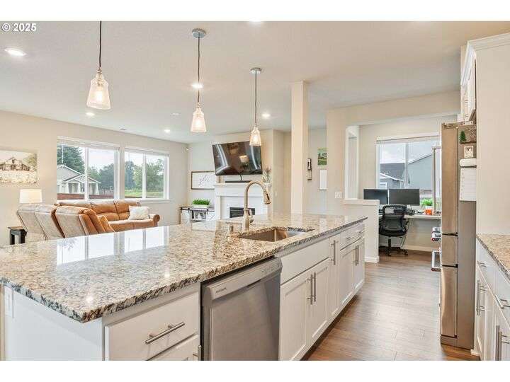 Newer construction home with quality finishes, offering over 2300 square feet of light-filled space. This thoughtfully designed floor plan includes four spacious bedrooms, two and a half baths, and a cozy office nook at the heart of the home. The open-concept main floor features large windows that invite in natural light. The great room's cozy fireplace is perfect for chilly evenings while the stunning kitchen designed for both entertaining and everyday living. Enjoywith plentiful cabinets, generous quarts counter space, stainless steel appliances and a large island for additional seating. Luxury vinyl plank flooring with a warm natural palette that complements any style. Completed in 2023 and barely lived in,, the home offers the advantages of new construction without the wait or work. Custom wall details in the bedrooms adds personality and the finishes remain in pristine condition, so you can move in with confidence. A spacious three car garage, fully fenced corner lot and prime location adds to the appeal. Easy access to commuter routes, local parks, grocery stores, restaurants, and everyday conveniences are just minutes away. Schedule your tour today!