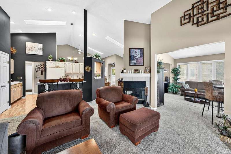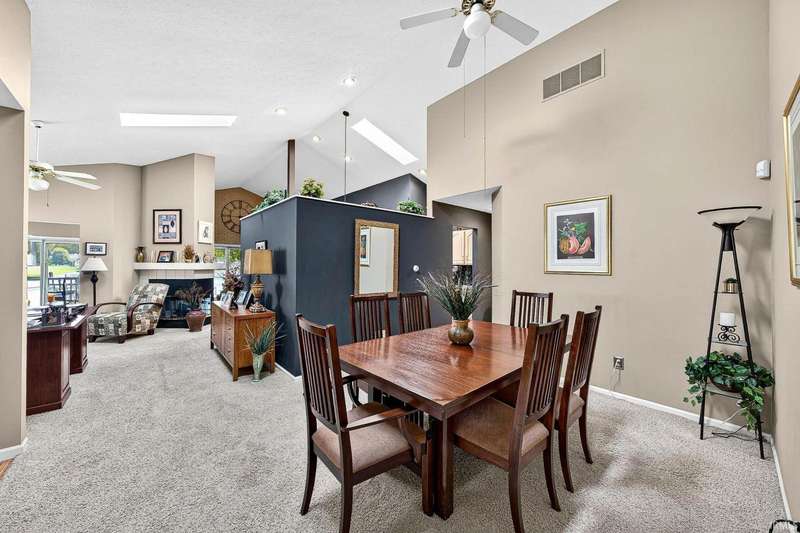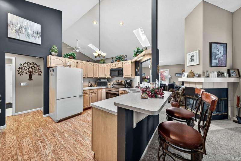 Welcome to this beautifully maintained 2-bedroom, 2-bath home offering the perfect blend of comfort, style, and low-maintenance living. With 75 feet of sandy beach frontage on the serene waters of Tawny Lake, this lakefront retreat is a polished, hidden gem set in the city limits close to all amenties one would ever need. Step inside to find vaulted ceilings, skylights, and a sliding glass door leading to a spacious deck?perfect for taking in peaceful lake views. The open layout is bright and airy, ideal for relaxing or entertaining. This home has been thoughtfully updated with a new HVAC system (2024), new stained exterior (2023), and a new roof (2016), offering peace of mind for years to come. The attached 2-car garage provides convenience and storage, while the in-ground sprinkler system keeps your lawn lush with minimal effort. Enjoy swimming, fishing and wonderful lakeviews with a paddle boat included! The HOA takes care of yard maintenance and snow removal, so you can spend more time soaking up the sun or paddling on the water. This gem on Tawny Lake is move-in ready and waiting for you.