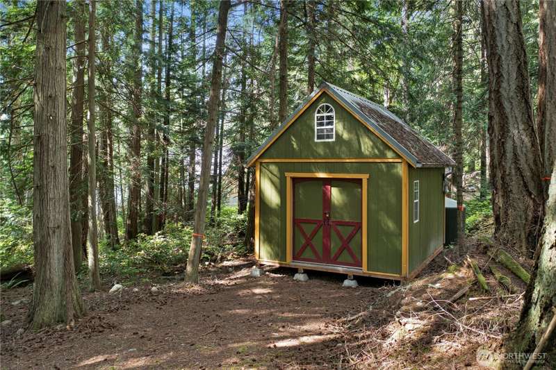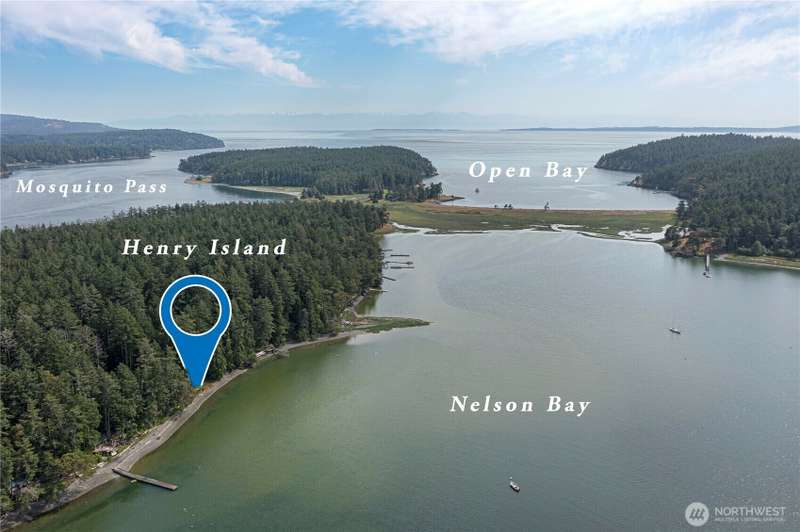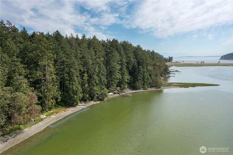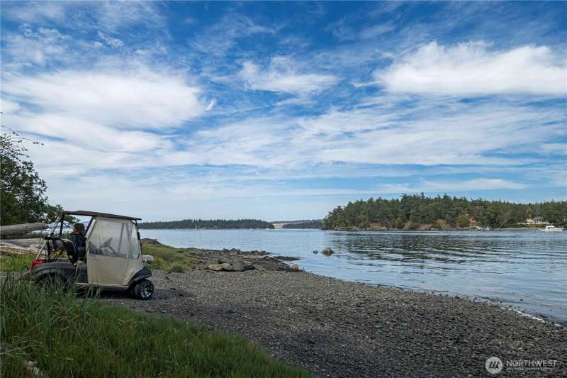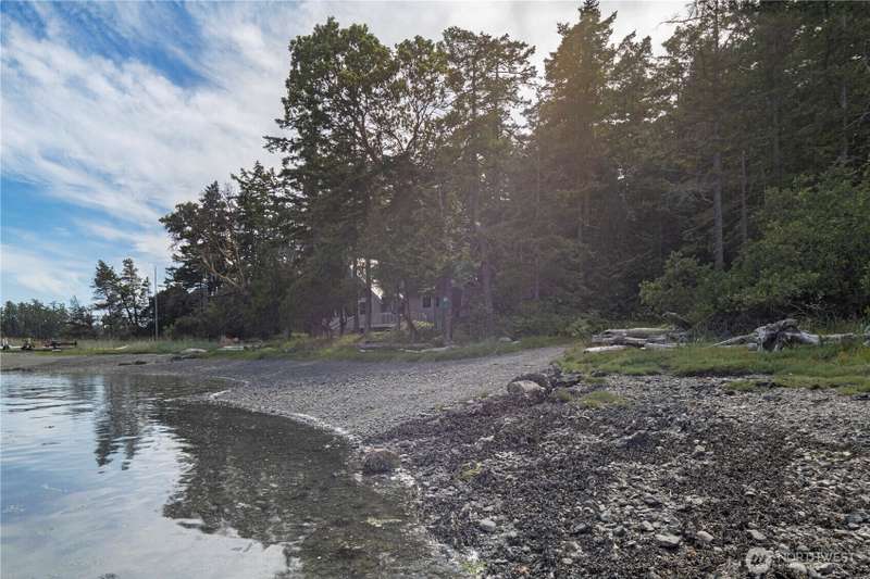 One magical waterfront acre ready for your island dreams. 100 feet of west facing private beach on Nelson Bay with a lot that extends 400 feet back to a road connecting around to a landing ramp. Structures include a lofted 12X16 storage shed with equipment for a rainwater catchment system and a 200 square feet trex deck overlooking the sunsets. Power is ready at the back edge of the lot. There are numerous hiking trails around the island and the property comes with 2 double kayaks ready to explore the waters. Crab, shrimp and salmon and more abound nearby. Parking and boat launch are available from Roche Harbor Village.