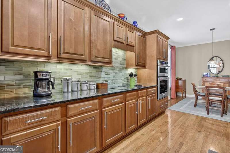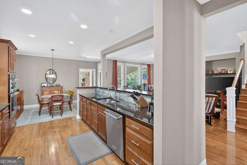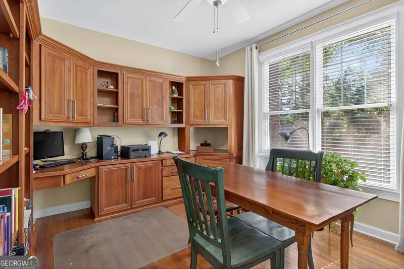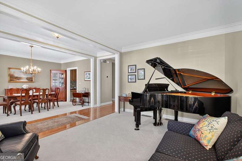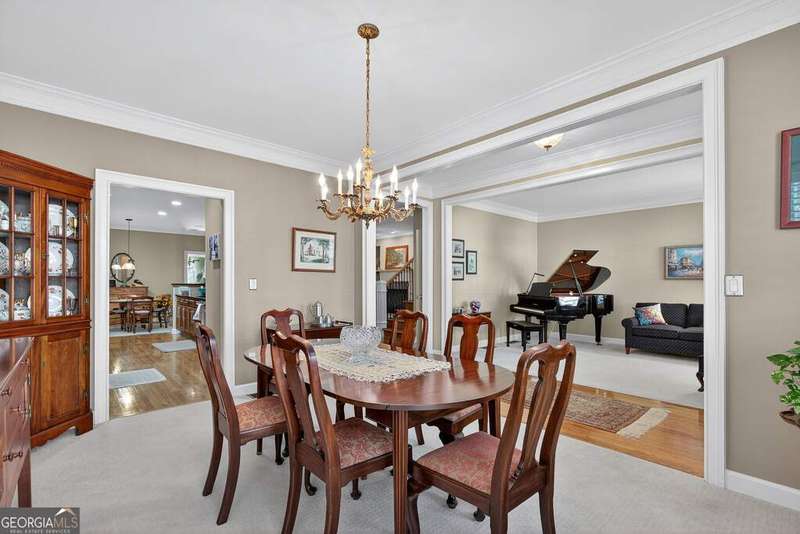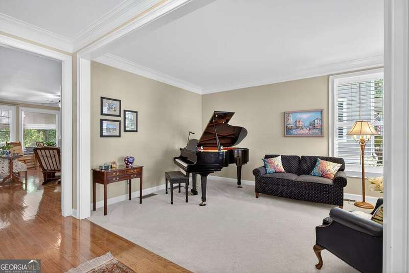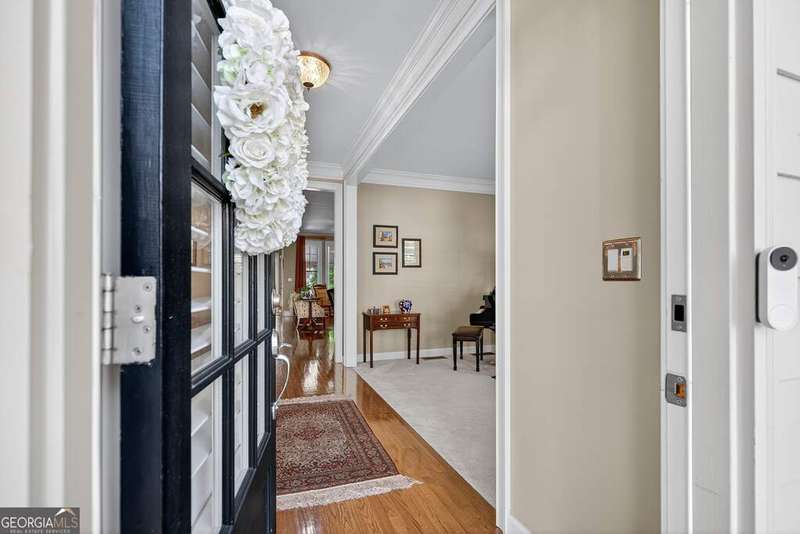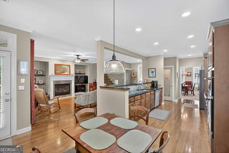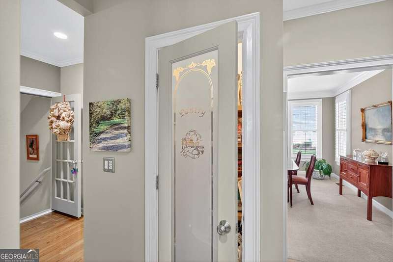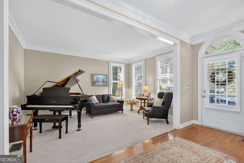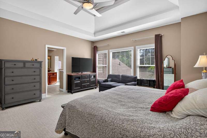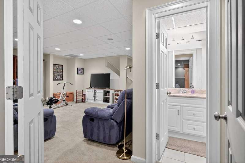 Welcome to this beautiful 4 bedroom, 4 bath home in the coveted Governor's Row neighborhood of Peachtree City. Situated directly on the city's golf cart paths, this home combines timeless elegance, modern convenience, and a prime location close to all the best amenities the area has to offer. A gracious foyer opens to a formal dining room and a formal living room, creating the perfect setting for entertaining or quiet evenings. The open-concept kitchen offers a walk-in pantry, breakfast nook, and seamless flow into the spacious living room. Hardwood floors run throughout the main living areas-including the kitchen, living room, and back bedroom. The living room is both inviting and functional with its gas fireplace and expansive windows that fill the space with natural light. The main level also includes a private guest bedroom with a full bath and a convenient laundry room. Upstairs, the primary suite is a luxurious retreat with a trey ceiling, a stunning leather accent wall, a large walk-in closet, and a spa-inspired bath featuring dual vanities, a soaking tub, and a separate shower. Two additional bedrooms share a full bath, offering comfort and flexibility. The fully finished terrace level extends the living space with a large recreation room, full bath, abundant storage, and a versatile flex room that could easily serve as an additional bedroom, office, or gym. Outside, you'll find a large 3-car garage located behind the home with room for 2 cars and 2 golf carts-a perfect fit for Peachtree City living. As part of Governor's Row, you'll enjoy close proximity to Lakeside shopping and dining, award-winning schools, Braelinn Golf Club, Flat Creek Country Club, and over 100 miles of scenic golf cart paths that connect the community. With its desirable location, spacious design, and thoughtful details, this home is a true Peachtree City gem.