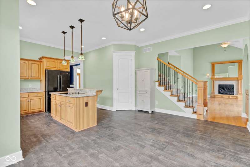 This charming, custom-built home in the heart of the Avon School system with instant equity is now available. This Craftsman-style home, featuring brick and Hardie-plank siding, offers far more than meets the eye. You'll love relaxing on the front porch. Inside, the home boasts perfect granite counters, complementing hardwood floors, and a formal dining space ideal for entertaining. The finished basement provides additional space for watching the big games or hosting gatherings. The primary bedroom, located on the main level, includes a luxurious ensuite bathroom and a walk-in closet, offering a perfect retreat after entertaining. Guests can choose from two bedrooms upstairs, complete with the privacy of a loft, or the fourth bedroom in the basement, which also has access to abundant storage. Recent upgrades include new carpet and fresh paint in the basement, a repaired concrete driveway, a new cooktop, and a new garbage disposal. As a resident of The Villages of Turner Trace, you'll also enjoy access to wonderful amenities such as a pool, fitness circuit, basketball hoops, and beautiful ponds perfect for leisurely strolls. This is a fantastic deal you won't want to miss!