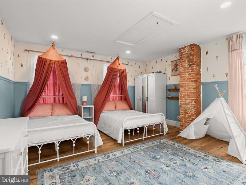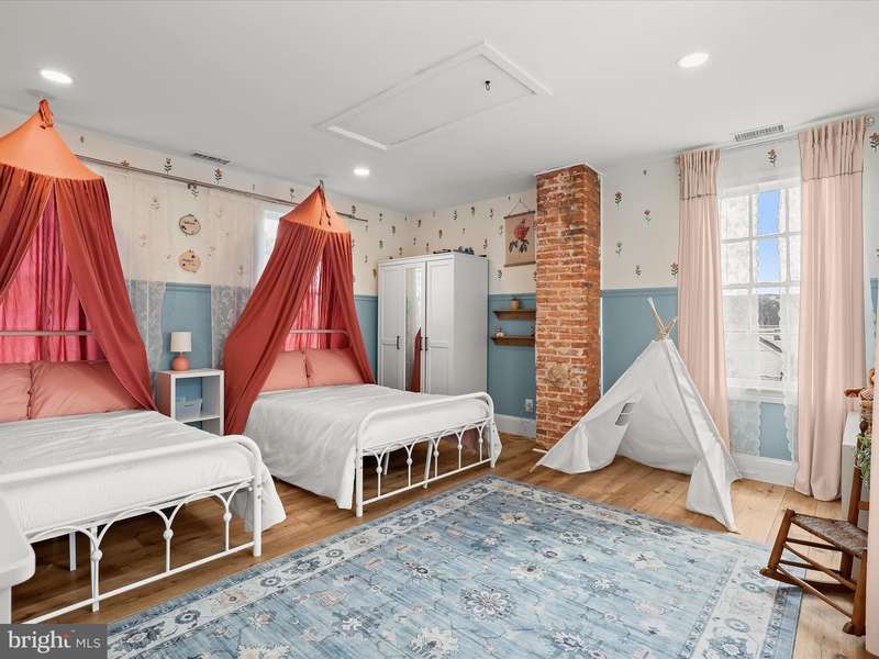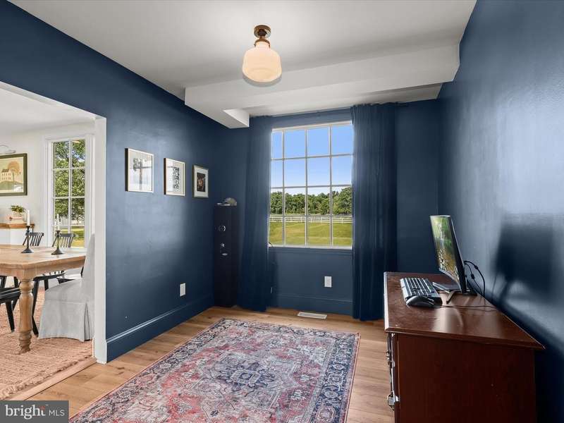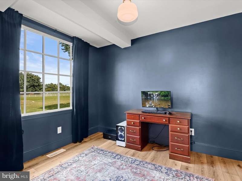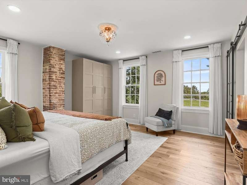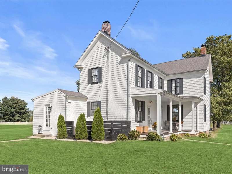 Discover timeless charm and modern sophistication in this beautifully renovated farmhouse, where historic character combines effortlessly with contemporary design. Welcoming entry options include a gracious front porch, a side porch for daily convenience, and a rear entrance perfectly suited for carrying groceries or simply enjoying the tranquil views. The foyer sets the tone with modern board-and-batten wainscoting, chair rail accents, and warm luxury vinyl plank flooring that flows throughout the main level. A formal dining room, also ideal as a stylish lounge or media space, featuring high ceilings, architectural details, and smart built-ins. The adjacent living room, or possible play area, continues the home's elegance with a decorative mantel, chair rail, and abundant natural light. At the heart of the home, the gourmet kitchen impresses with a farmhouse sink set in a center island with breakfast bar, stainless steel appliances, 42""Â? display cabinetry with soft-close drawers, designer lighting, and a charming breakfast nook with a sitting area. An office space provides versatility for work or study. Upstairs, the primary suite offers a serene retreat with a sliding glass barn door leading to a spa-inspired en-suite bath. Here you'll find a dual vanity, an expansive walk-in shower with double showerheads, and modern tile finishes. Two additional bedrooms, each enhanced with elegant trim details, and a full hall bath complete the upper level. The exterior is just as captivating, with a pavilion area ideal for lounging or a future hot tub, two spacious barns, a pen for animals of your choosing, and beautifully landscaped grounds. The home enjoys close proximity to a community dog park, garden, and fields with a pavilion, picnic tables, and sports areas. With convenient access to MD-32, MD-100, and I-95, this remarkable property offers the perfect blend of pastoral beauty, modern comfort, and luxury farmhouse living. Minutes to Fort Meade!