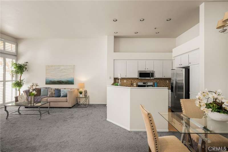 Step inside to soaring ceilings and walls of windows that flood the open floorplan with warm natural light, creating a sense of airiness and ease throughout. With brand-new carpeting underfoot, each detail has been meticulously updated to enhance both comfort and style. From recessed lighting and dual-pane windows to a full suite of modern stainless-steel appliances, your living space is move-in ready and beautifully appointed.